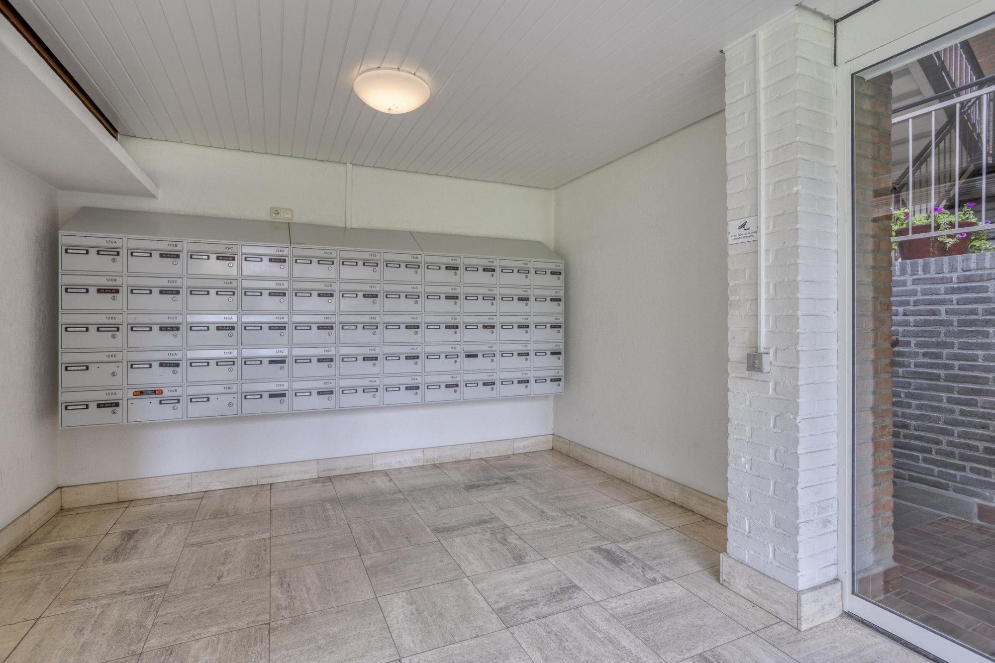 Middels lift en trappenhuis bereikbare open galerij met meterkast en toegang tot het appartement.