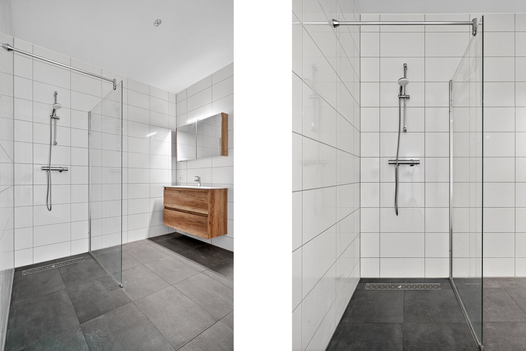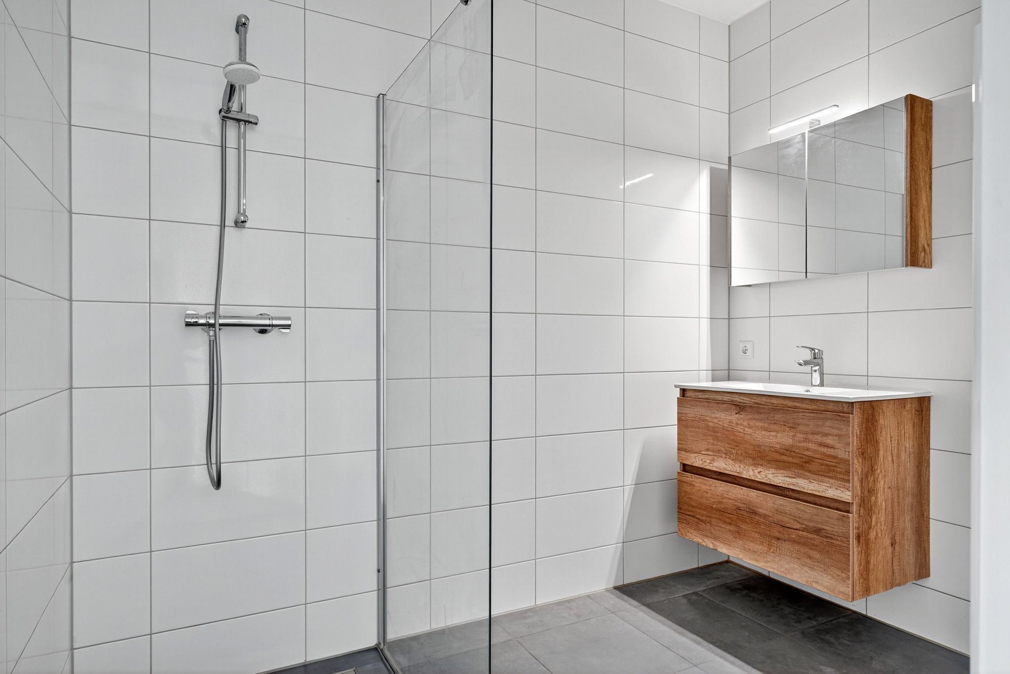 De twee slaapkamers vormen samen met de woonkamer een logische en praktische indeling. De moderne badkamer is royaal en voorzien van een inloopdouche, wastafel en een extra elektrische radiator. In de interne berging bevinden zich de technische installaties en is ruimte voor wasmachine, droger en/of vriezer.