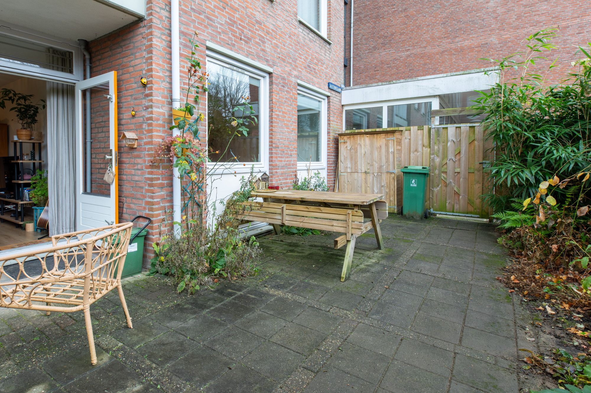 De tuin van circa 30 m² ligt aan de voorzijde en is gericht op het noorden. De tuin is onderhoudsvriendelijk aangelegd en er is namiddag/avondzon aanwezig. De tuin heeft een brede doorgang om binnen te komen.