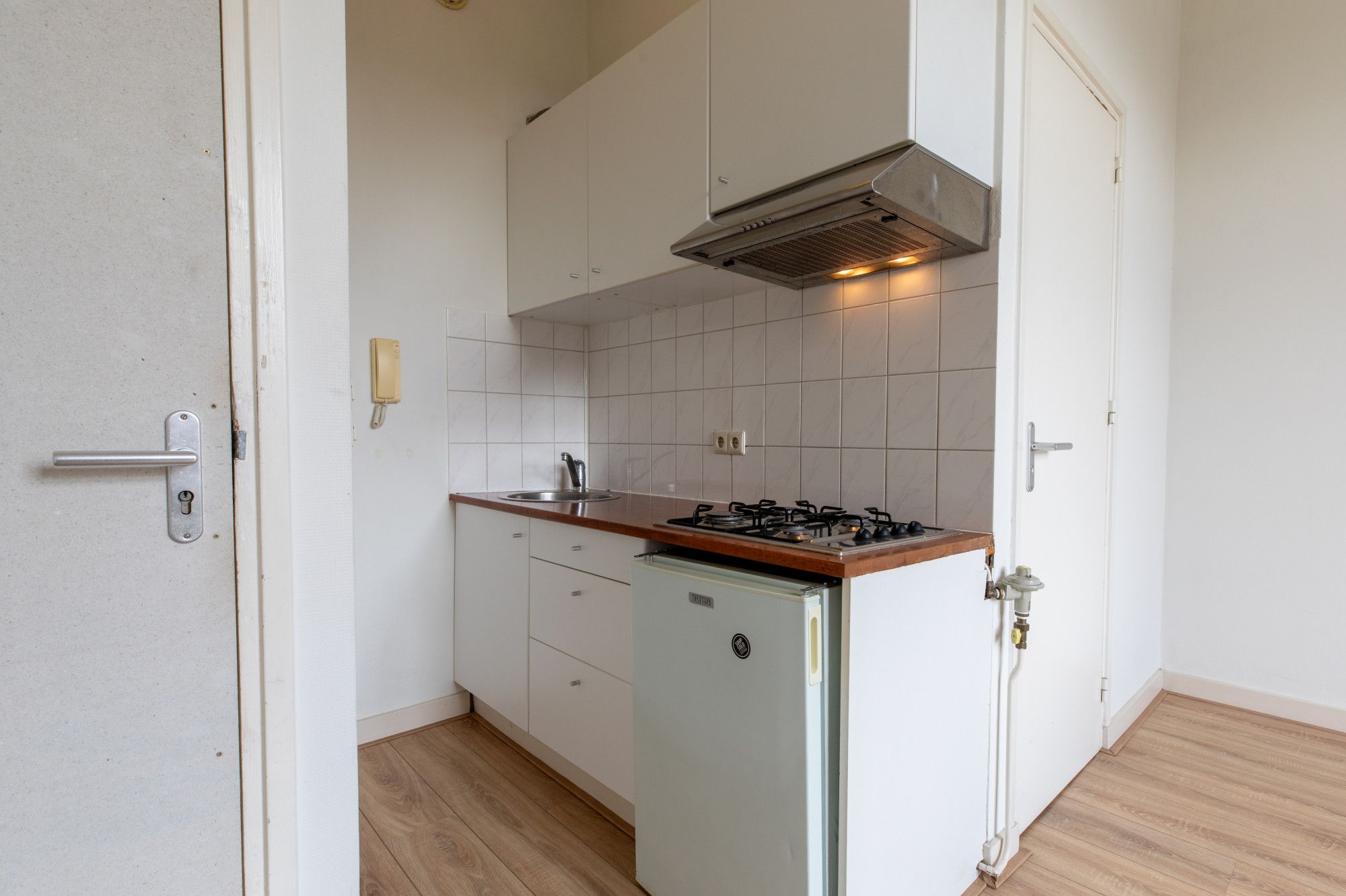 - Woon-/slaapkamer van ca. 14 m² met een verzorgde keukenopstelling voorzien van 4-pits gasfornuis, afzuigkap en koelkast. Door de ligging op het zuiden geniet je van optimale lichtinval.