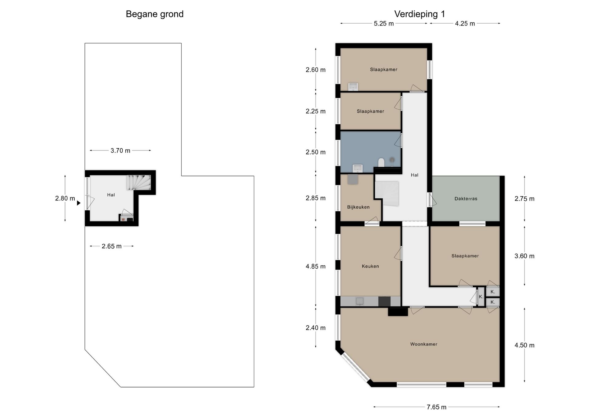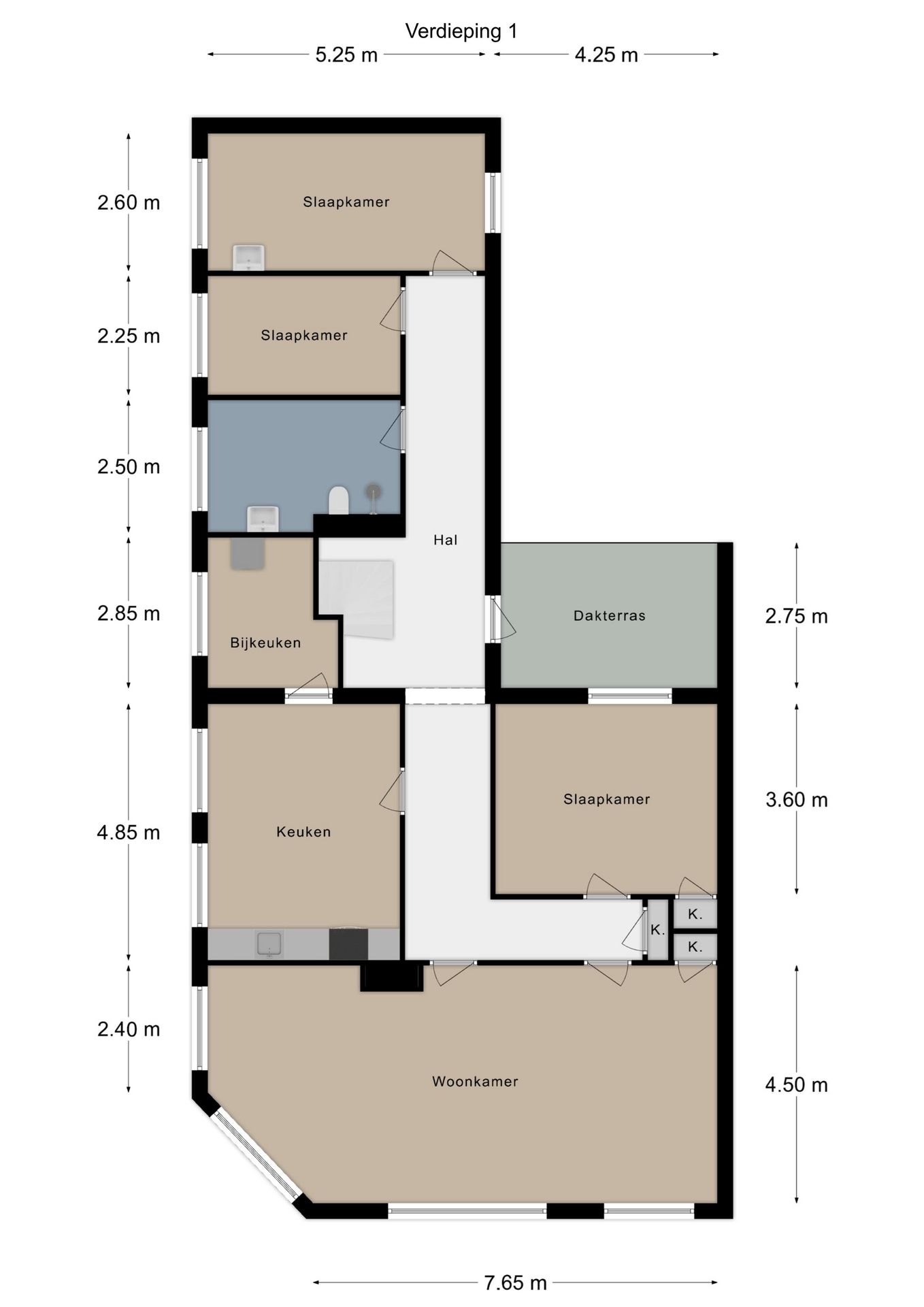Zonnig dakterras (ca. 11 m²) – welke bereikbaar is vanuit de hal.