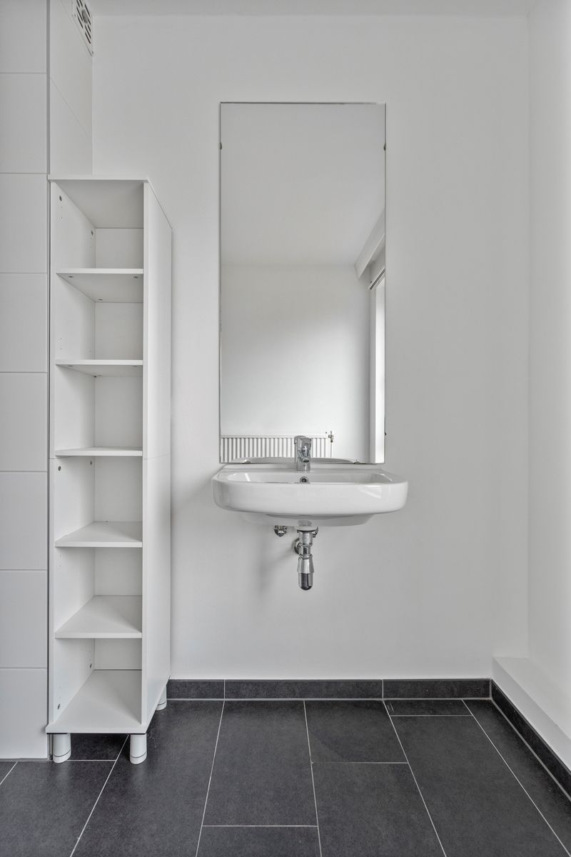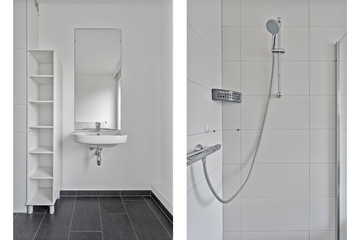 Badkamer (ca. 10 m²) – modern, met inloopdouche, wastafel, spiegel en designradiator.