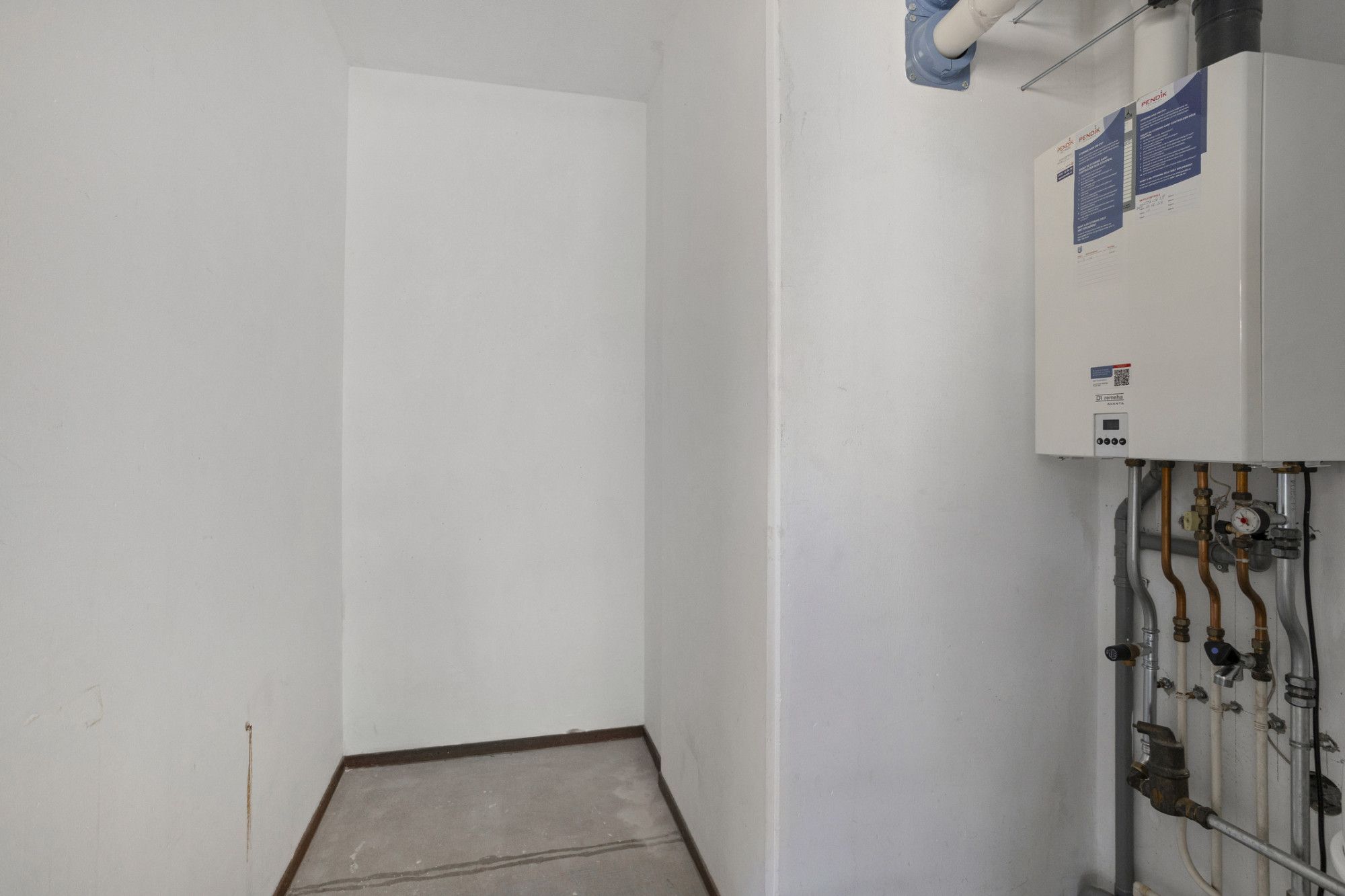 • Badkamer: De badkamer is uitgerust met een inloopdouche, wastafel en aansluitingen voor een wasmachine en droger. Het separate toilet is te bereiken vanuit de hal.