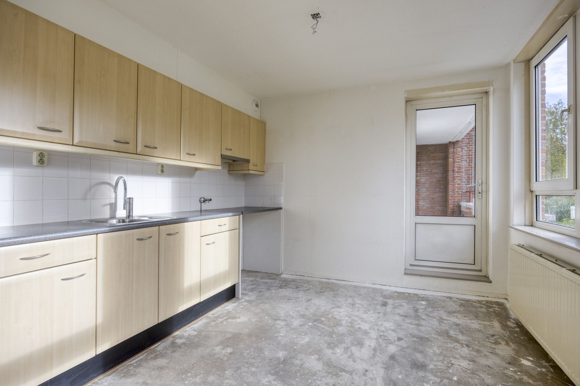 De lichte woonkamer met een oppervlakte van ca. 48 m² is voorzien van veel daglichttoetreding door de grote raampartijen. De woonkamer gaat over in de keuken van ca. 4 m² welke op haar beurt toegang biedt tot het balkon.