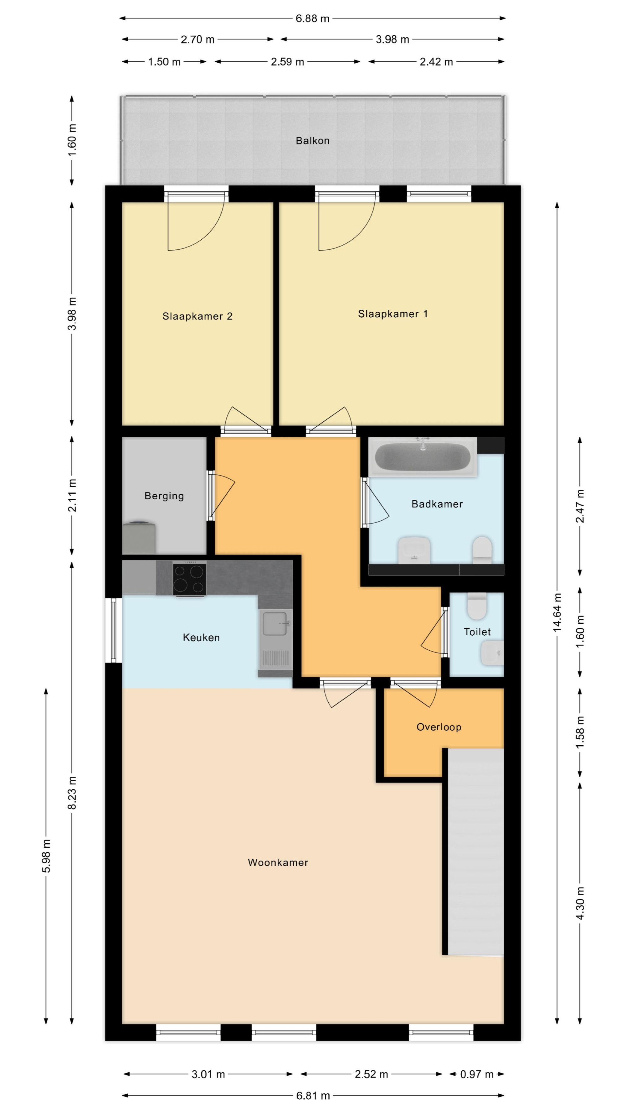 2 Schlafzimmer, beide mit Zugang zum Balkon und freiem Blick