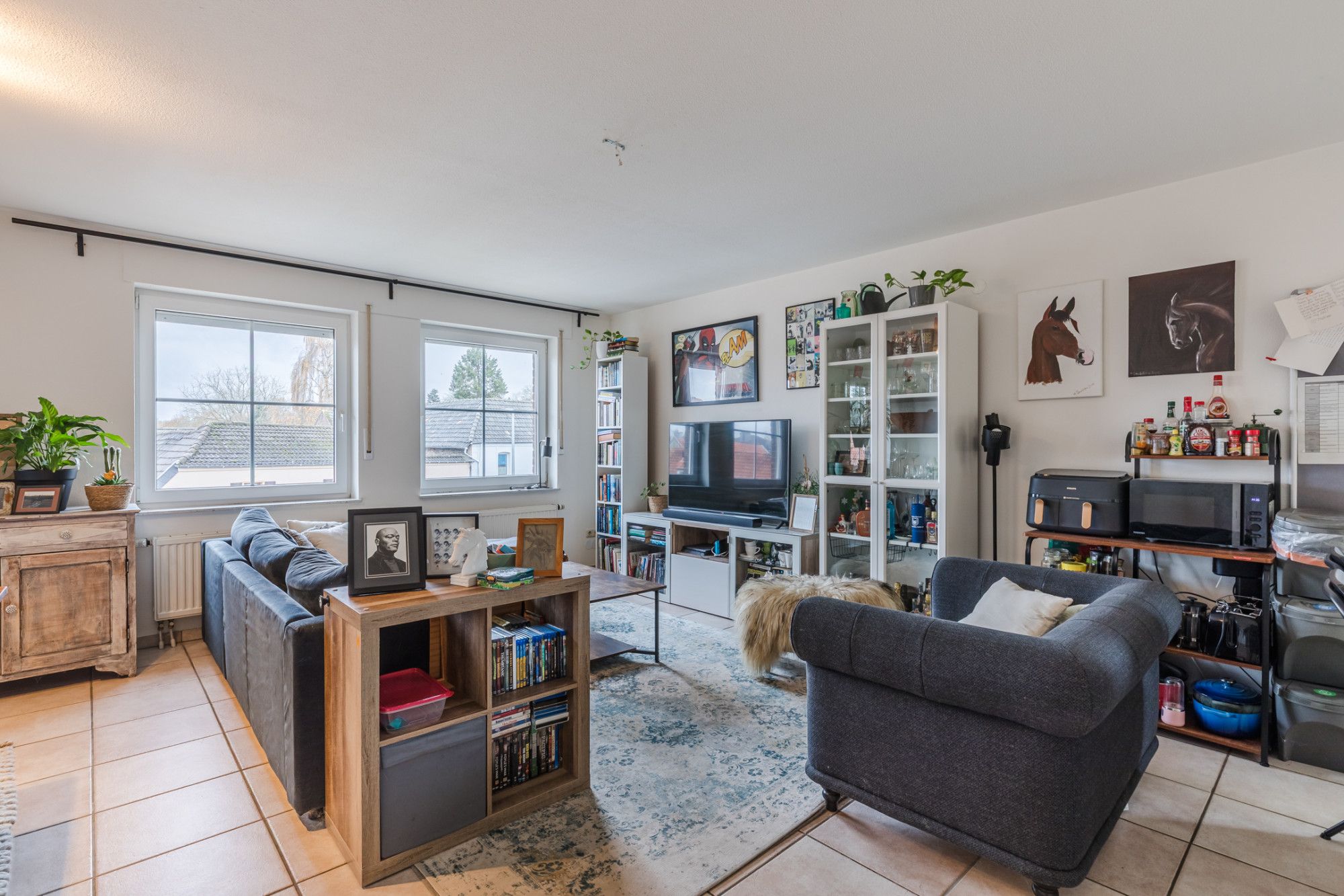 Wohnzimmer mit Fußbodenheizung und Heizkörpern