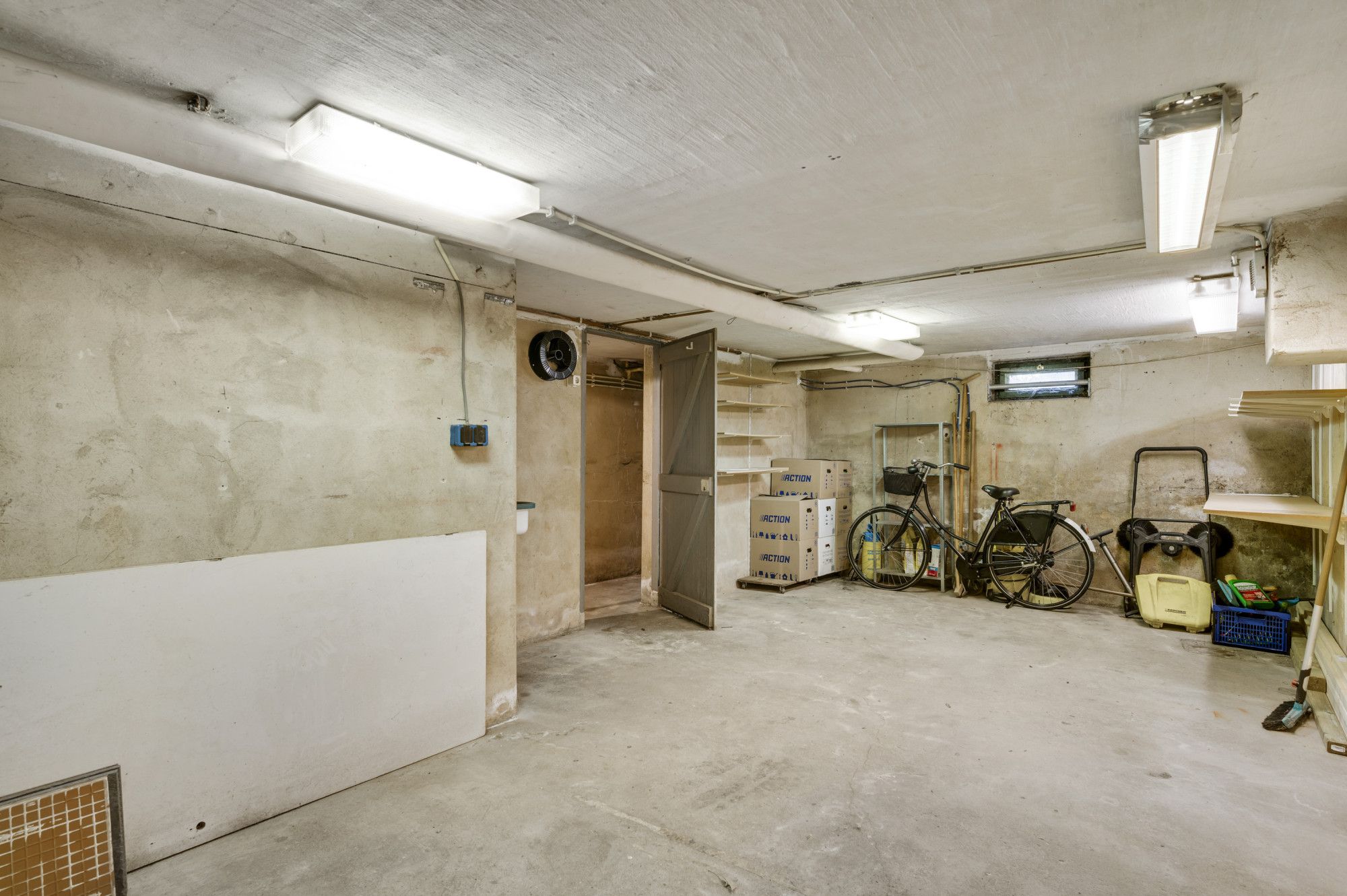 Hier tref je twee praktische kelderruimtes die inpandig vanuit het appartement zelf te bereiken zijn onder de trap. De eerste kelder biedt toegang tot de 2e grote kelder/hobbyruimte; ideaal voor het opslaan van spullen of het stallen van fietsen, maar ook als hobbyruimte of sportruimte te gebruiken bijvoorbeeld. Vanuit de kelder heb je tevens direct toegang tot de achterzijde van het complex en ligt hier schuin tegenover je eigen tuintje. Nu in gebruik als tuin met berging (berging is eenvoudig en wordt nog verwijderd in overleg).