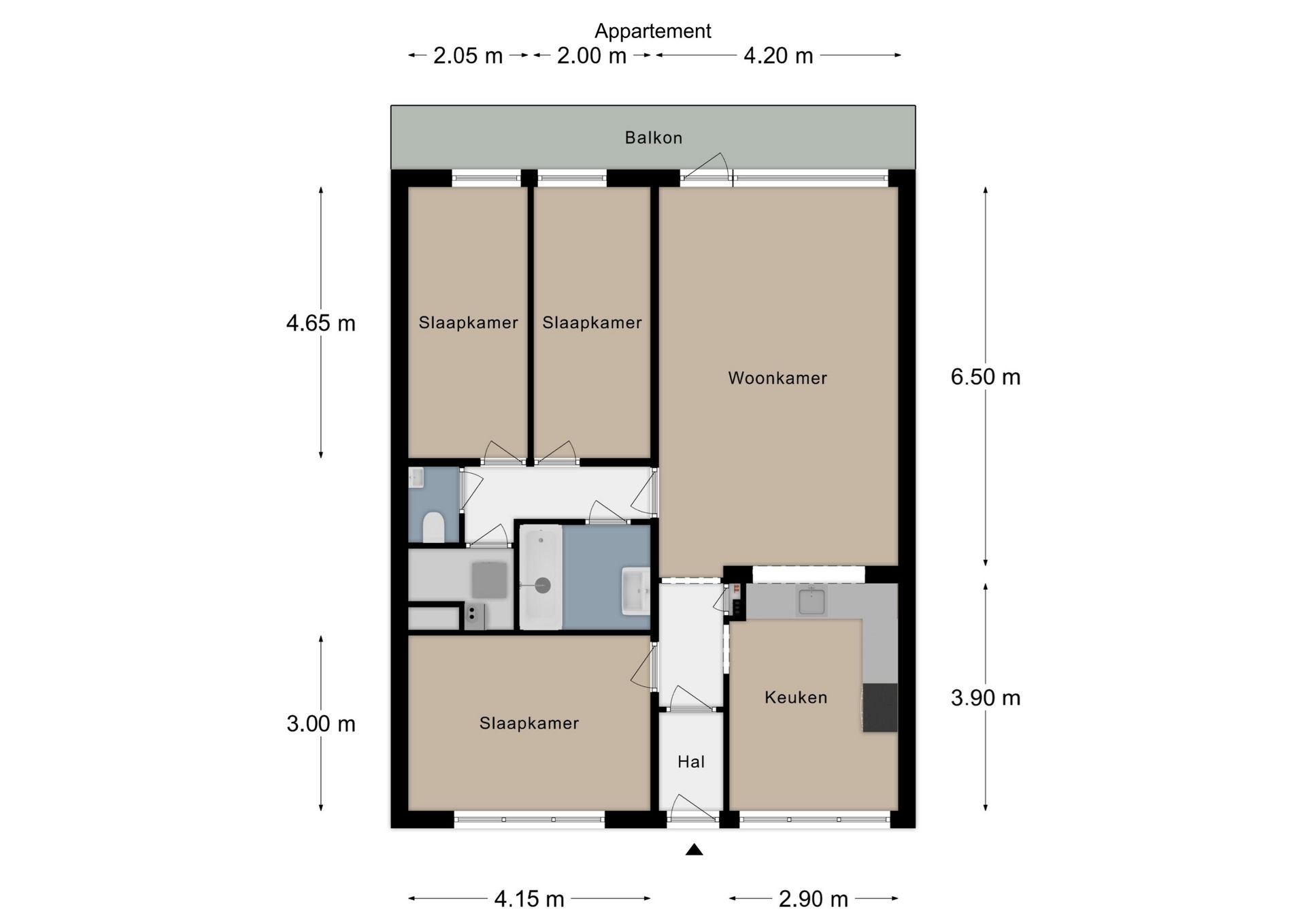 Living room (6.50 x 4.20 m), with access to the balcony. Closed kitchen (3.90 x 2.90 m) with a neat layout.