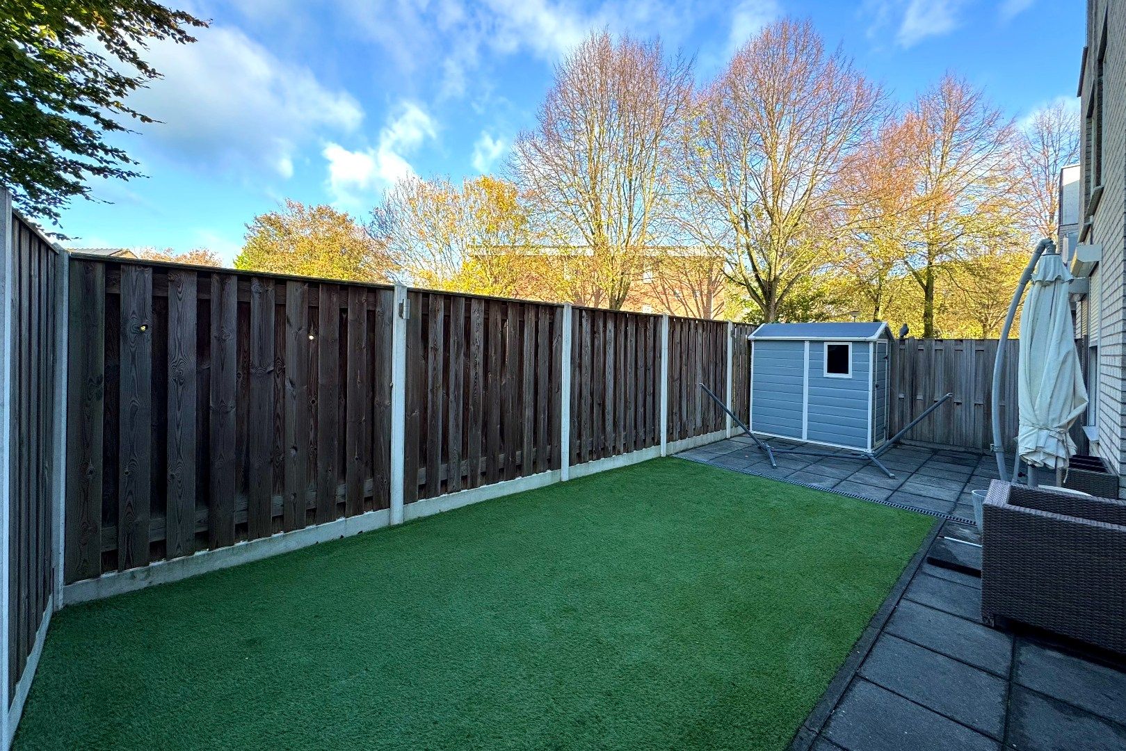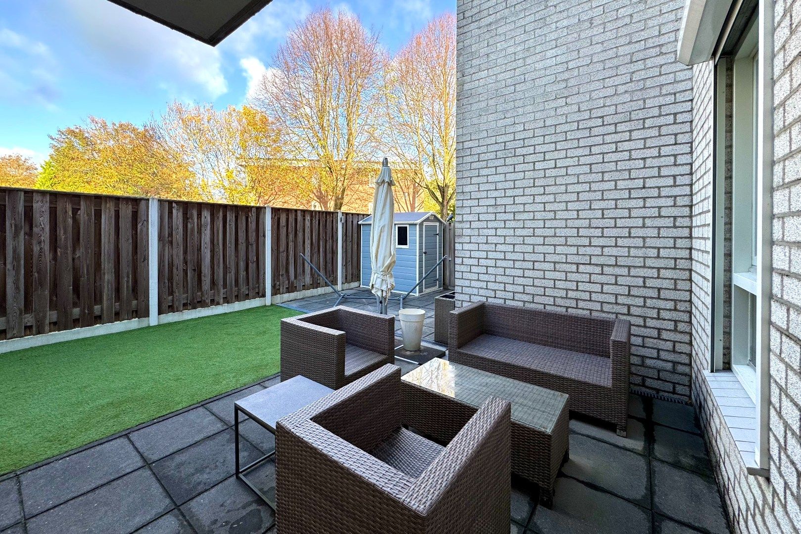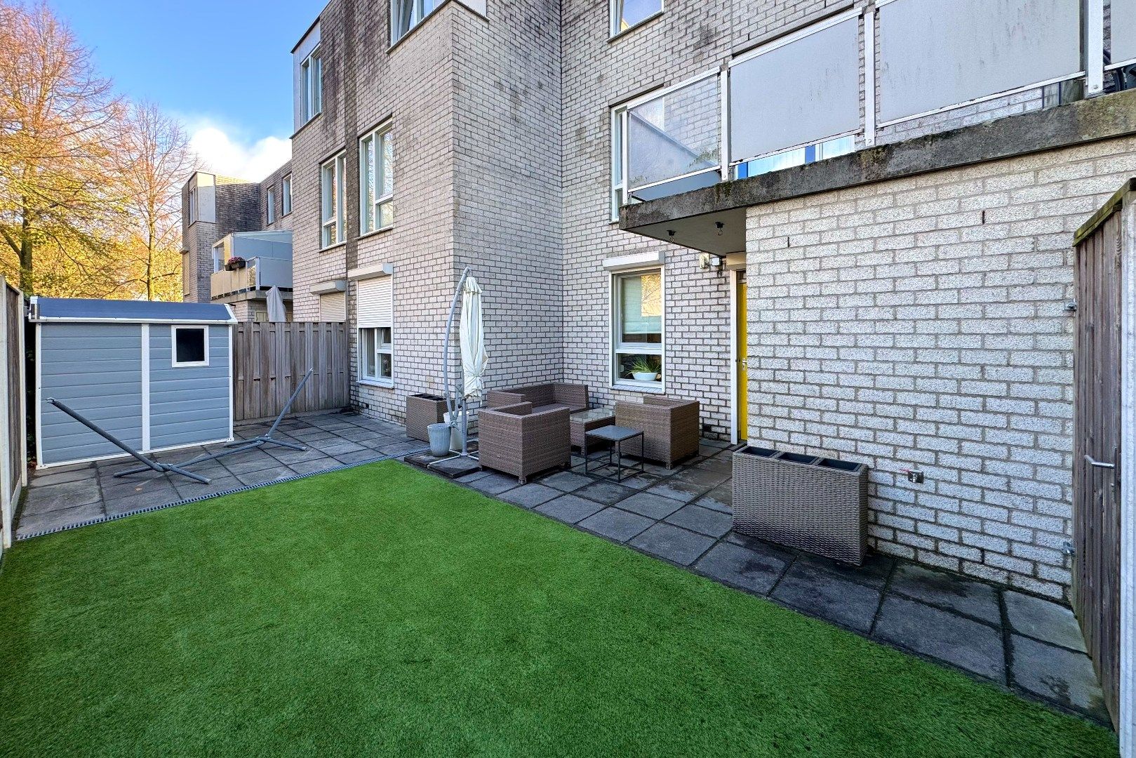 Het bijzondere aan dit appartement is dat dit appartement een eigen achtergelegen tuin heeft. Deze tuin is op het westen gesitueerd en beschikt over een fijn terras, kunstgras gazon en een achterom. Tevens is er zowel een stenen buitenberging (2.22m x 1.65m) als een tuinhuis aanwezig.