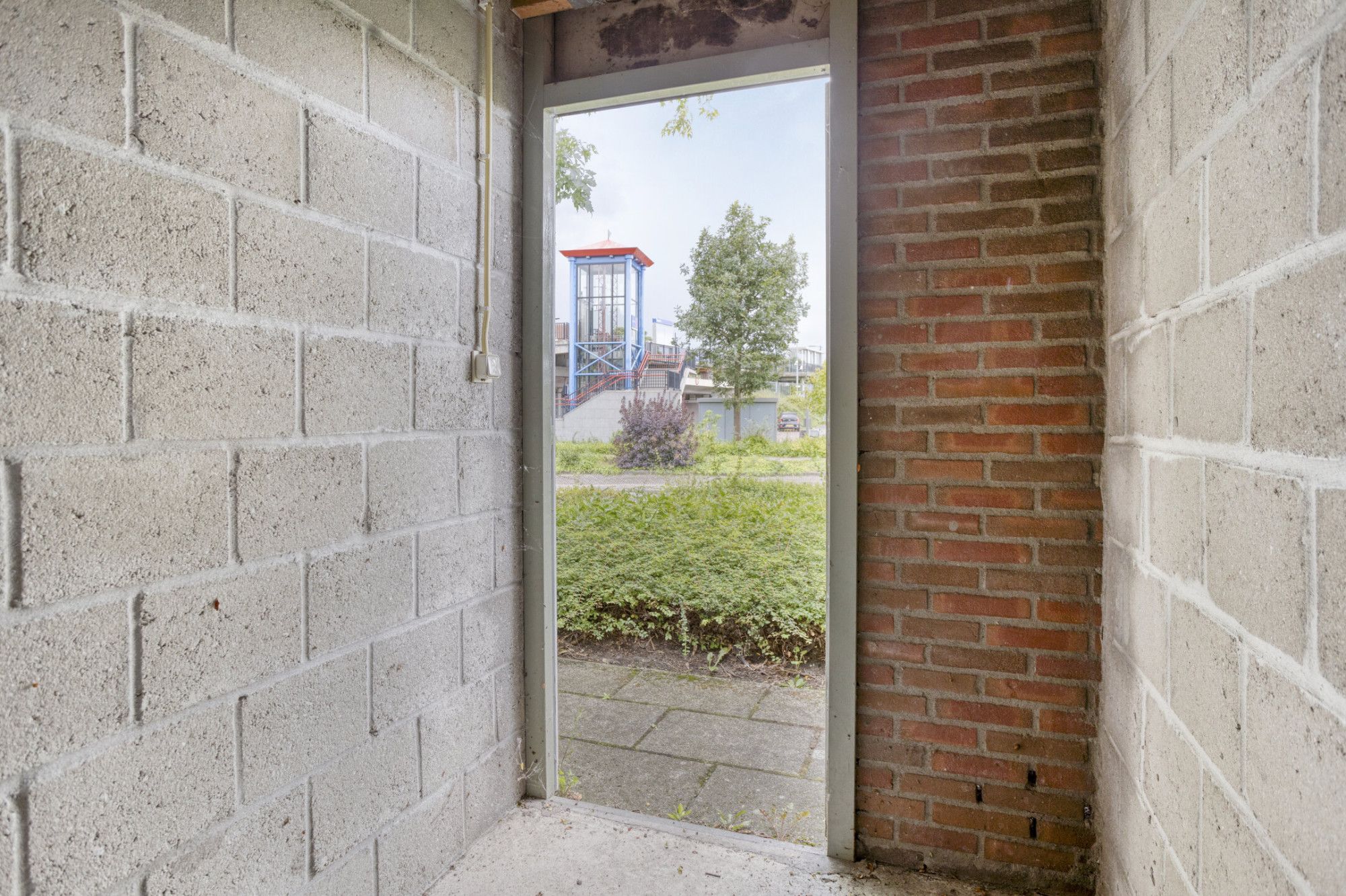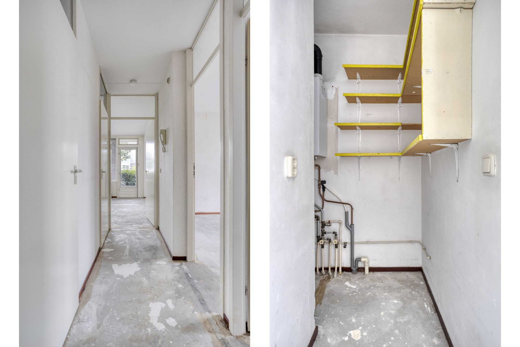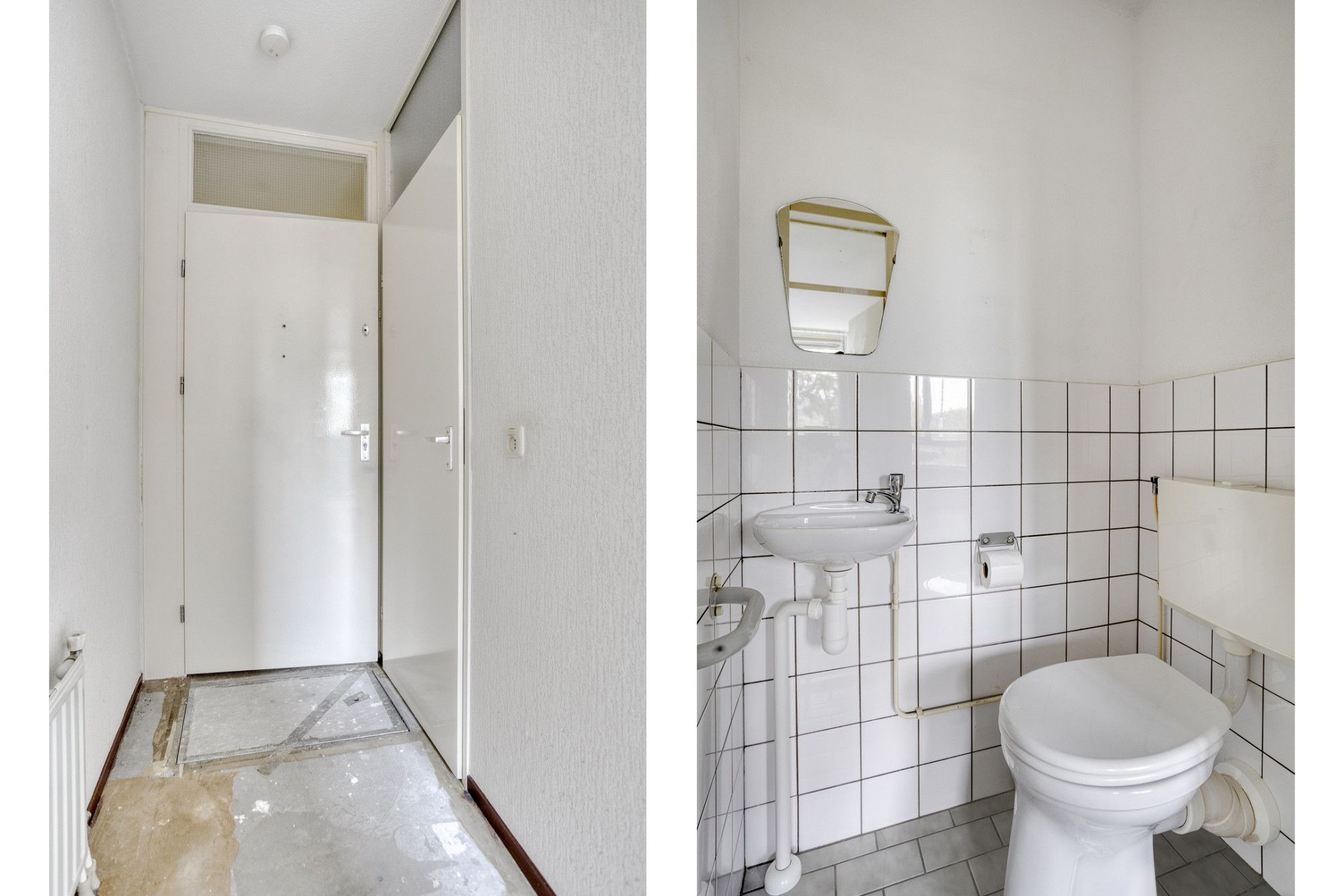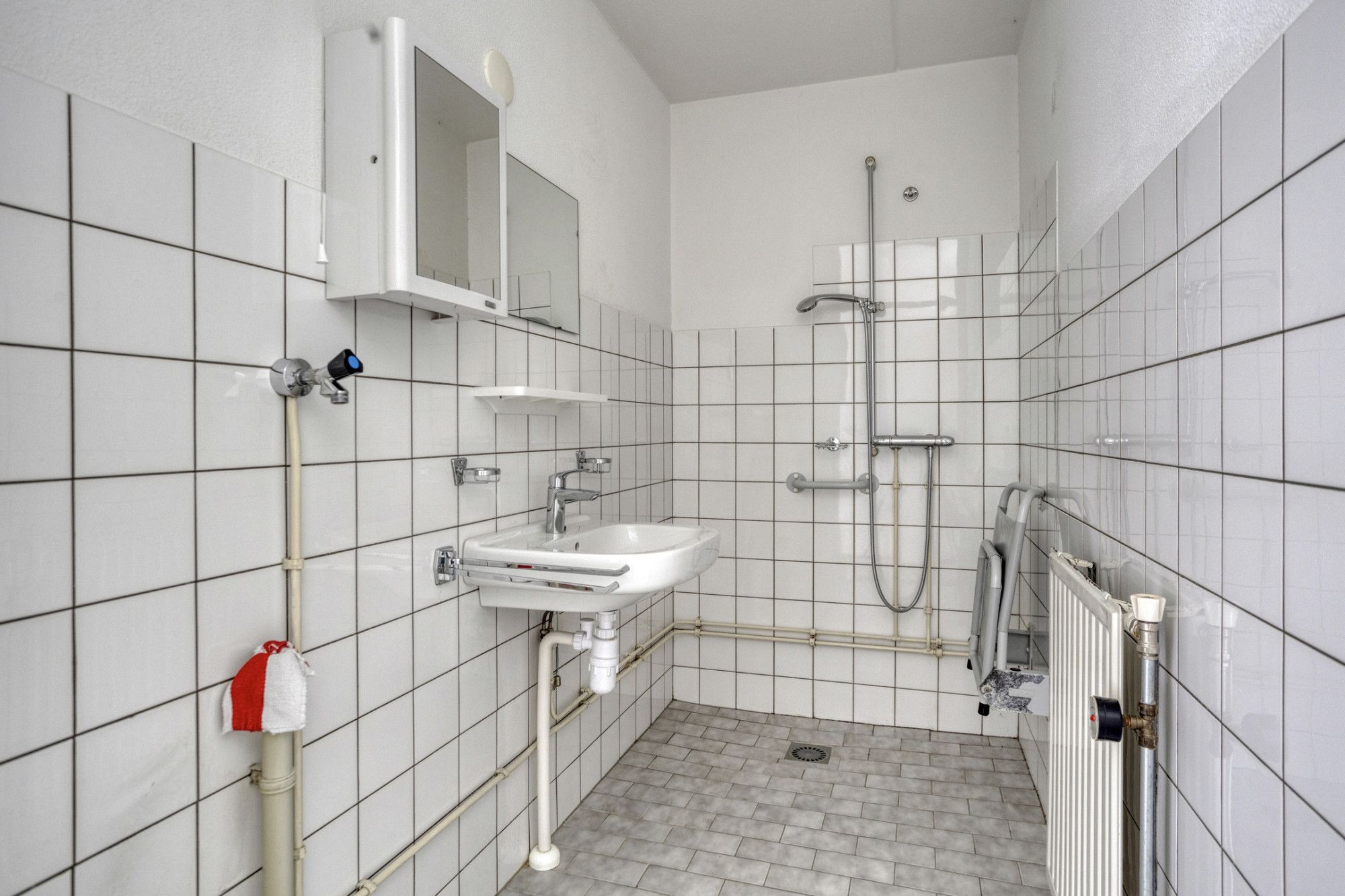 De entree met meterkast biedt toegang tot de ruime en lichte woon/eetkamer en de open keuken. Vanuit de keuken zijn via de gang de overige vertrekken bereikbaar. De badkamer en het toilet zijn halfhoog betegeld. In de badkamer bevindt zich een vaste wastafel en douche. Naast de badkamer bevindt zich het toilet.