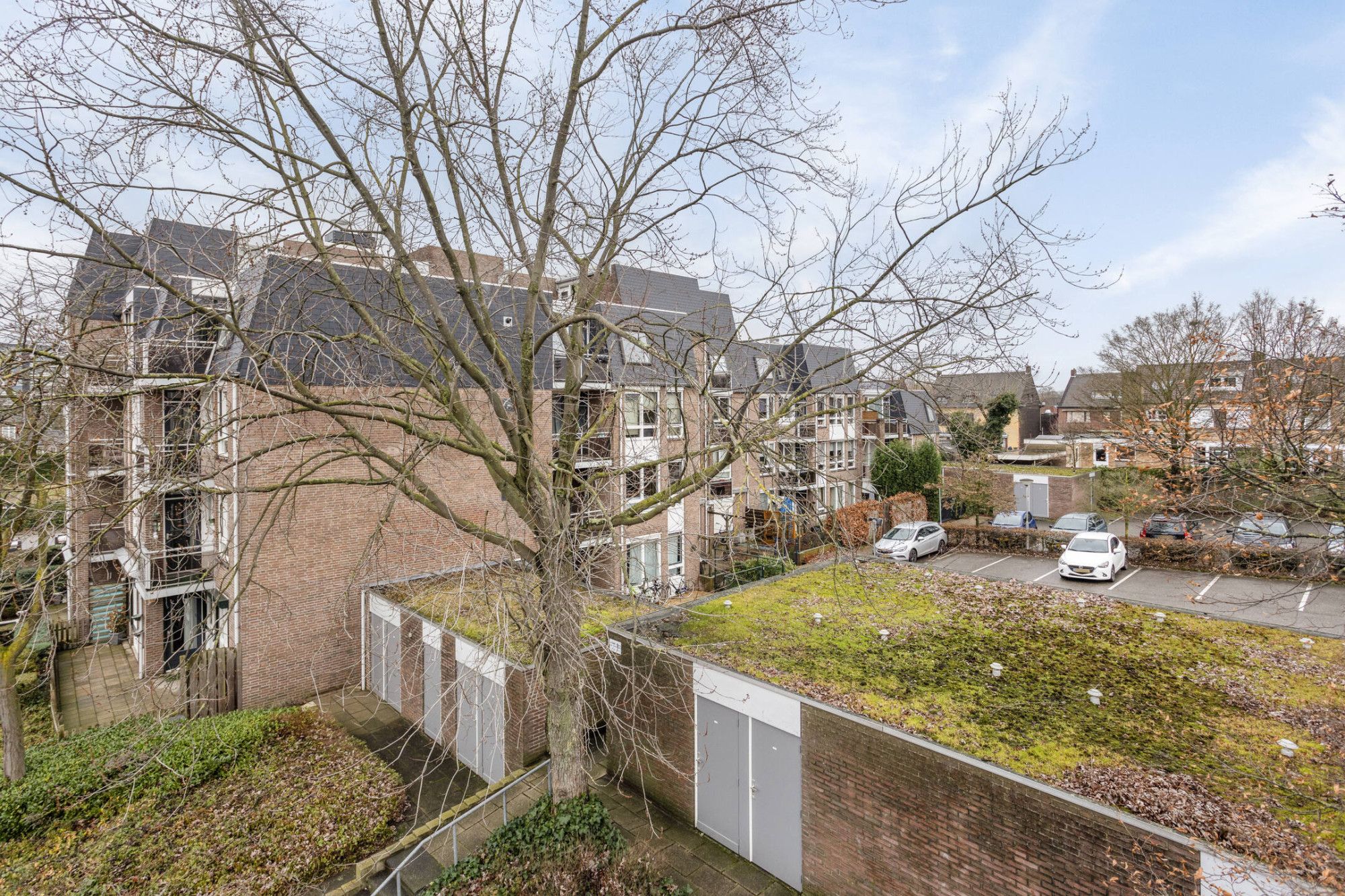 Ruime parkeerplaats aan de achterzijde van het complex.