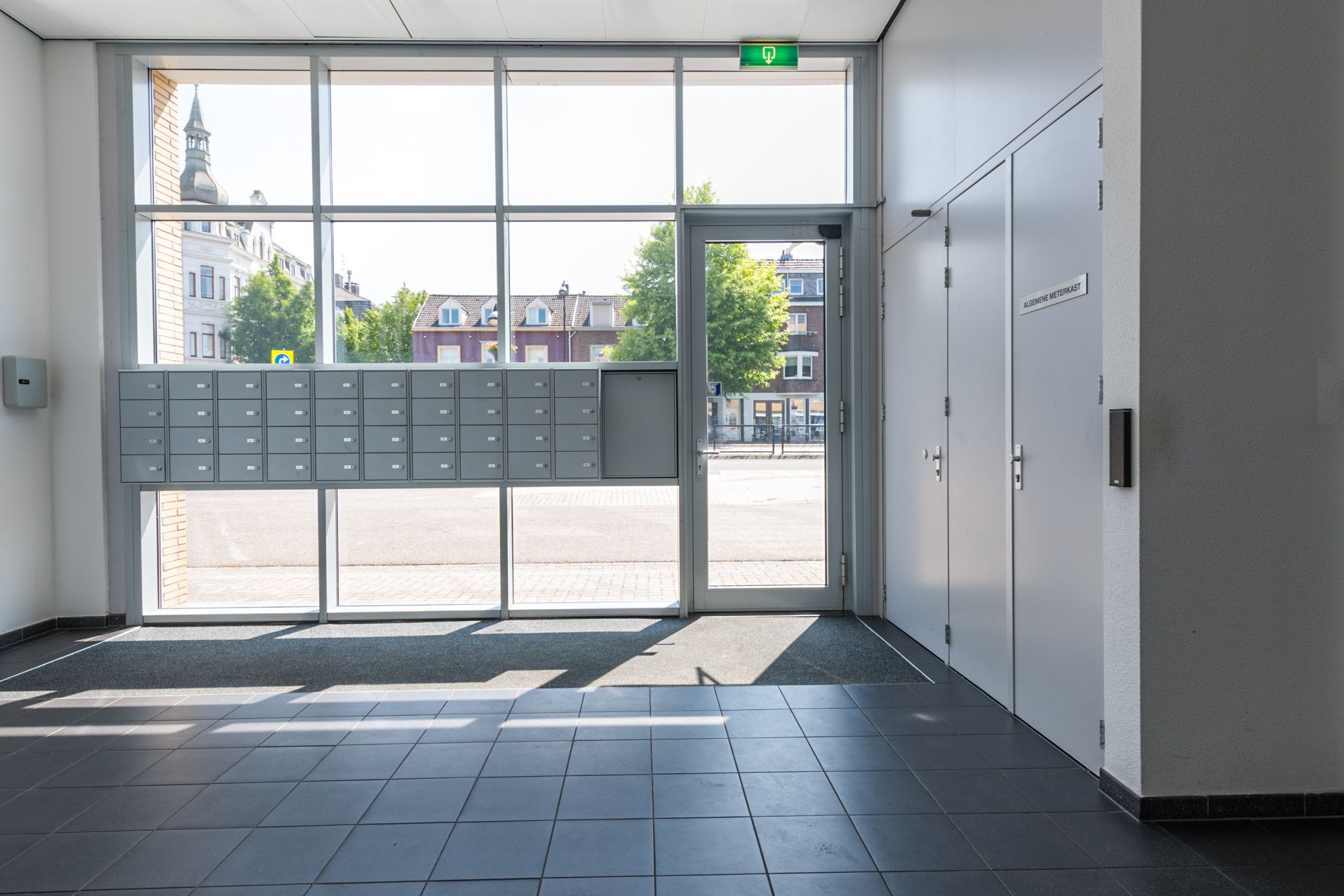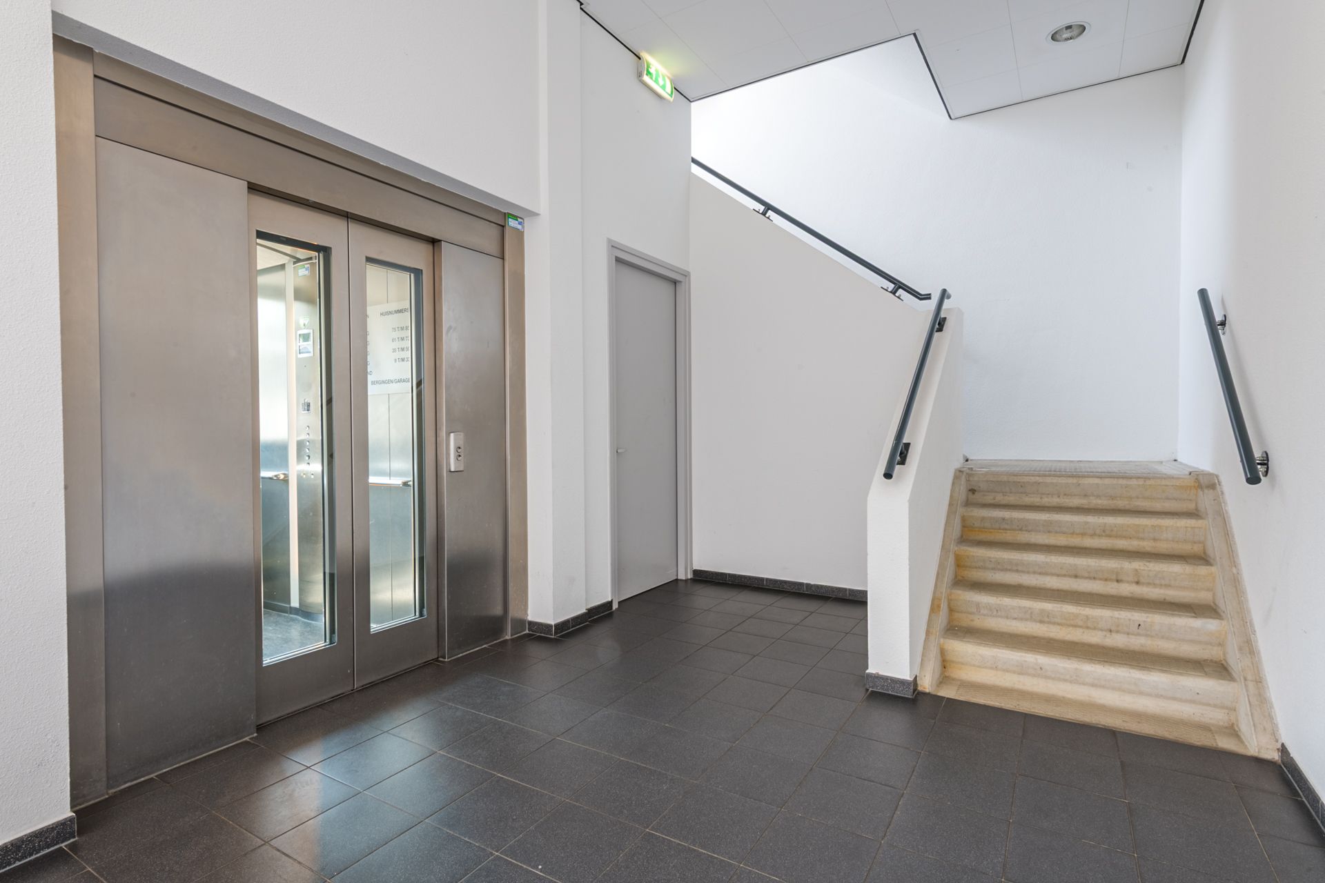 Afgesloten entree met bellentableau/intercom en briefkasten. Ruime hal met trappenhuis en lift.