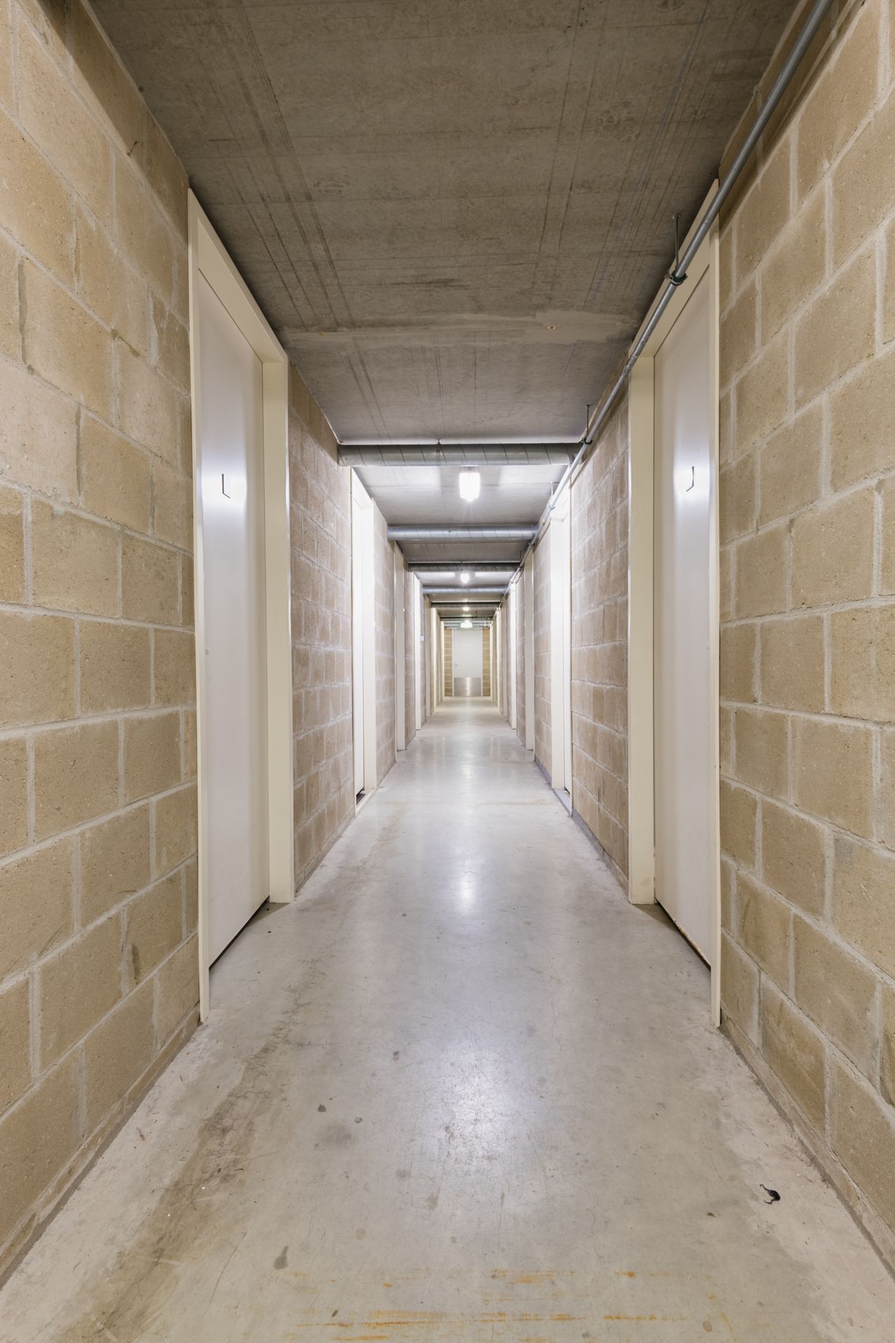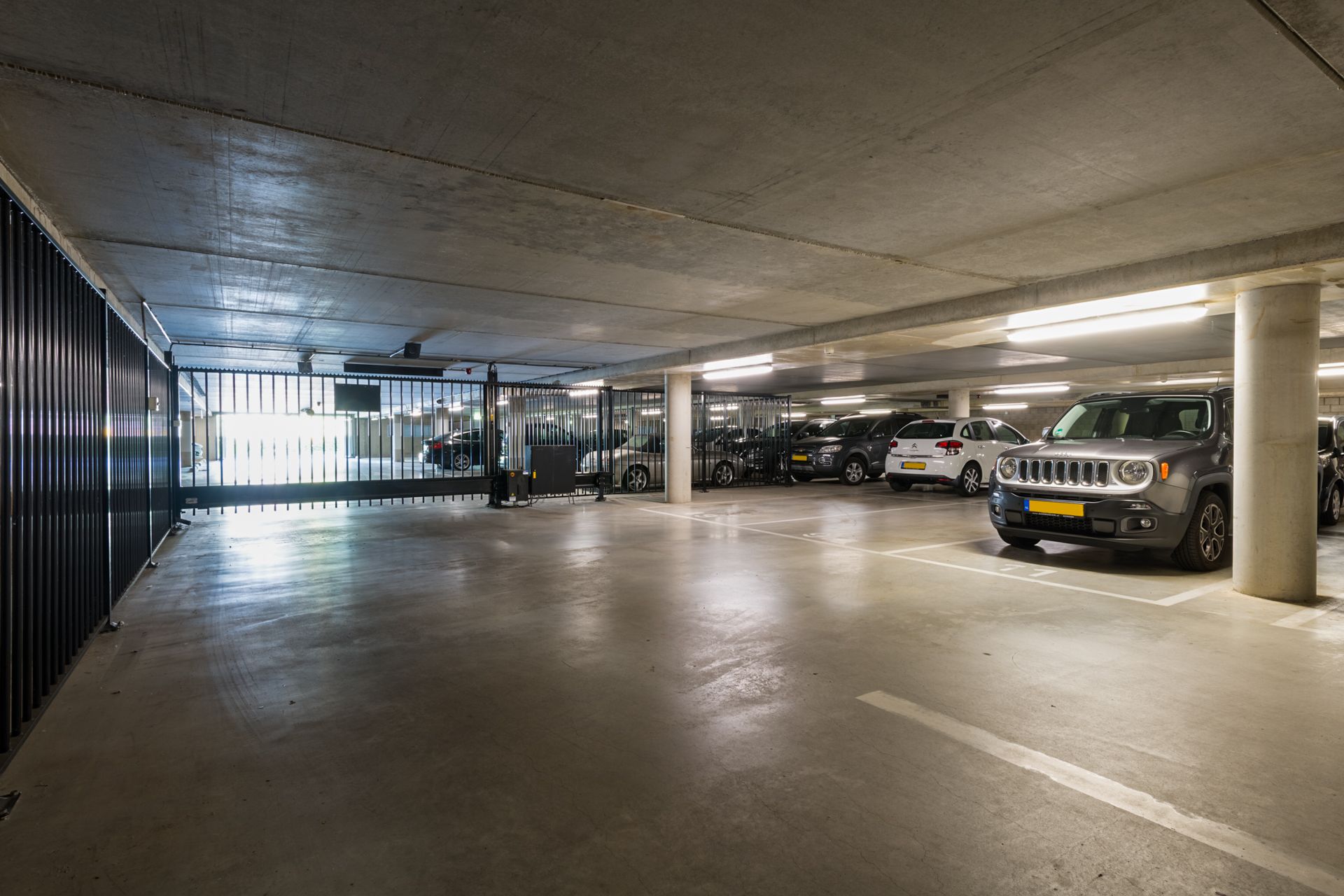 Ruime eigen berging (circa 6m²) en een eigen parkeerplaats in een afgesloten gedeelte van de parkeergarage.