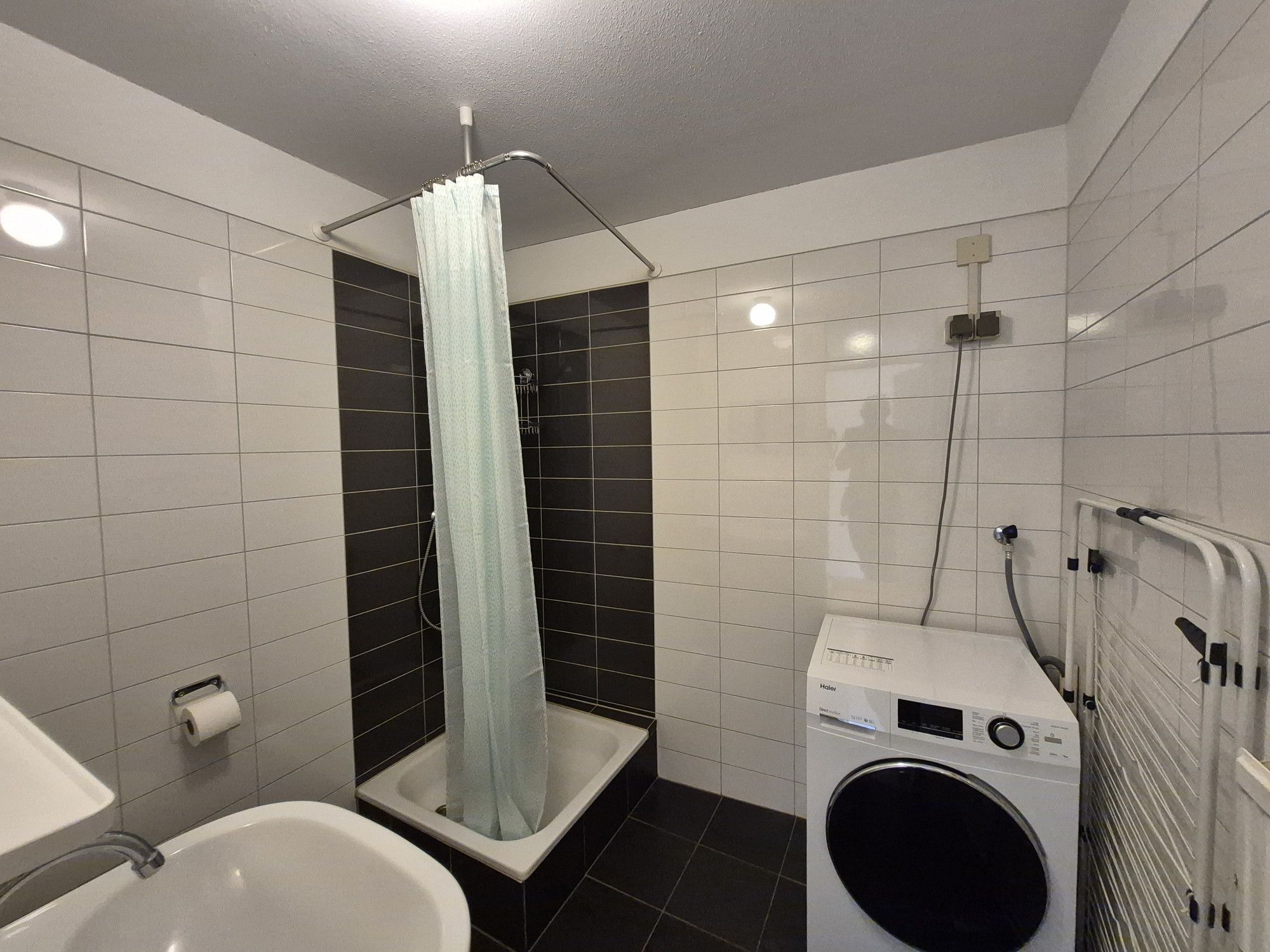 - badkamer voorzien van douche, wastafel, toilet en met aansluiting voor wasmachine.