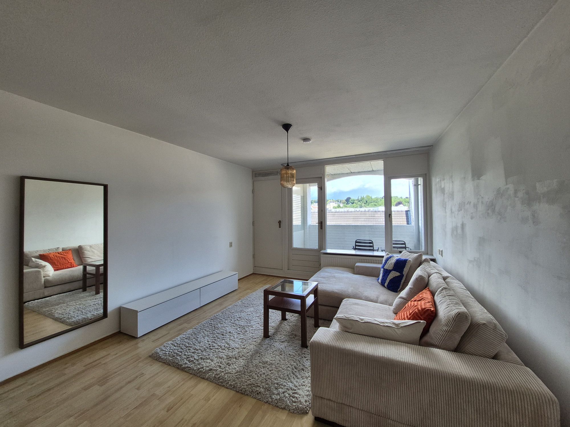 Het appartement biedt een lichte woonkamer, een prima open keuken, een comfortabele slaapkamer en een goede badkamer/toilet. De achterzijde (slaapkamerkant) van het pand kijkt uit op de verlichte ruïne van Valkenburg. Aan de voorzijde is een inpandig terras/loggia dat uitkijkt op het sfeervolle en rustige winkelplein. De loggia heeft geen inkijk.