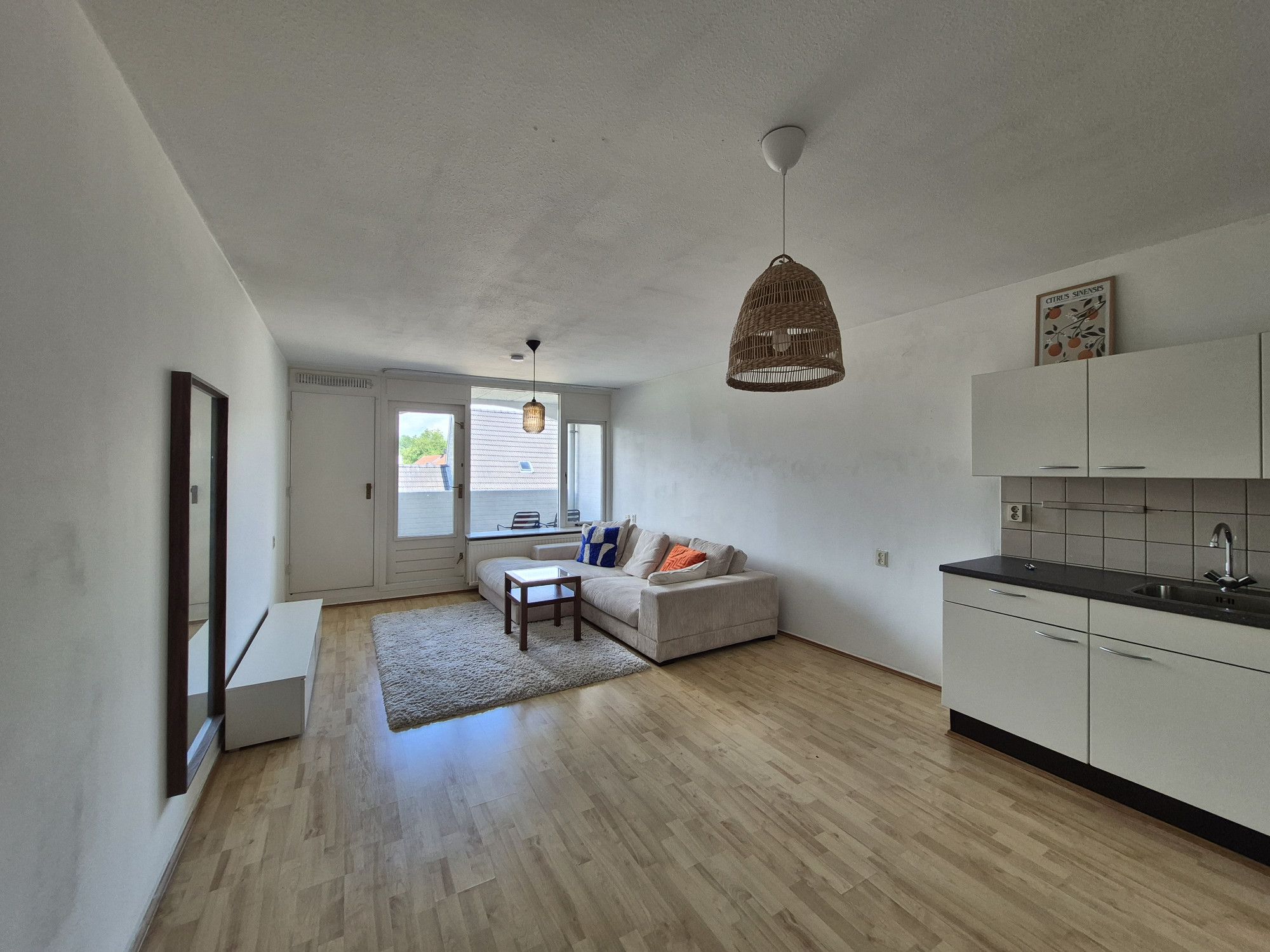 - woonkamer met L-vormige keukenopstelling