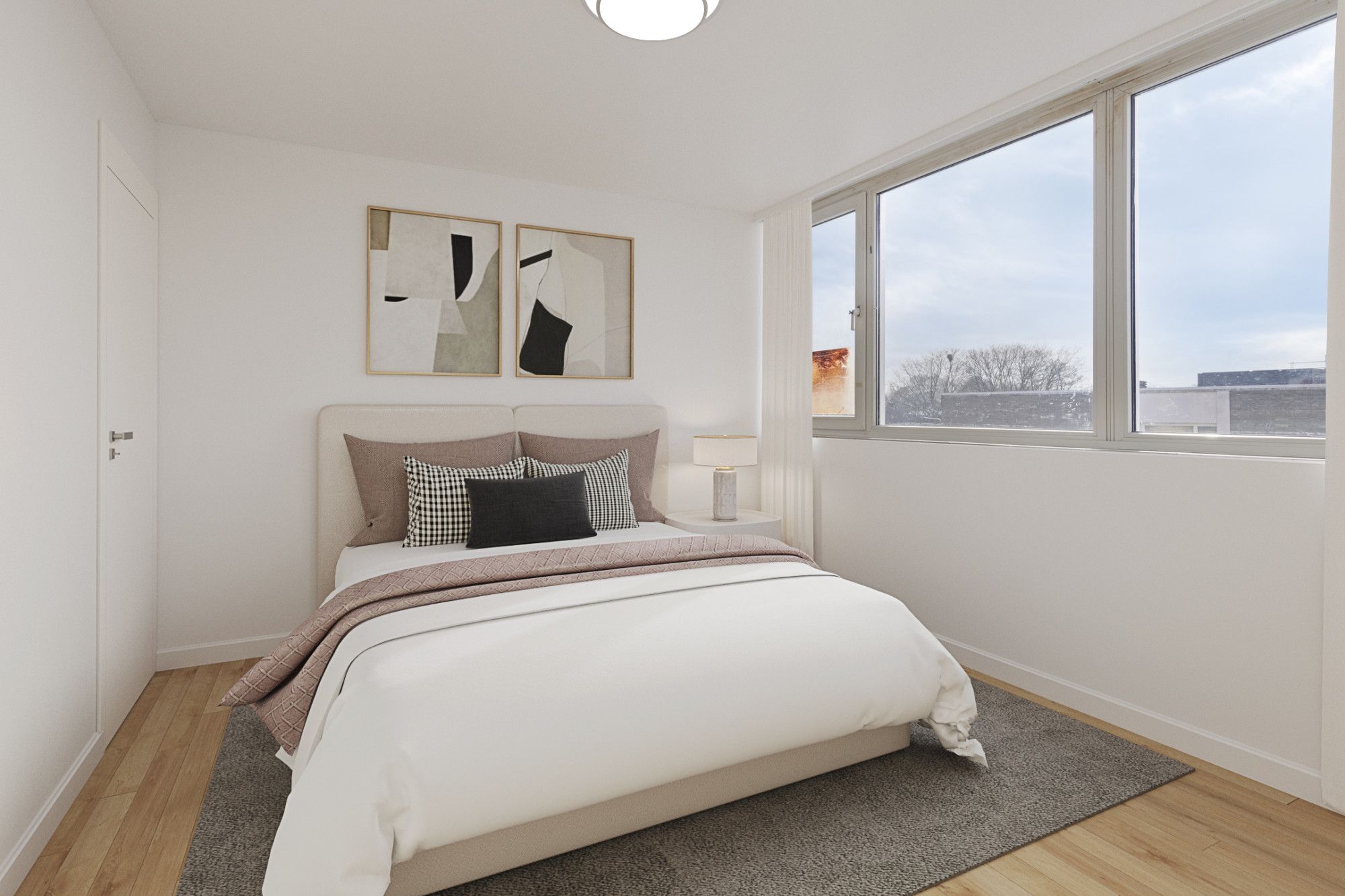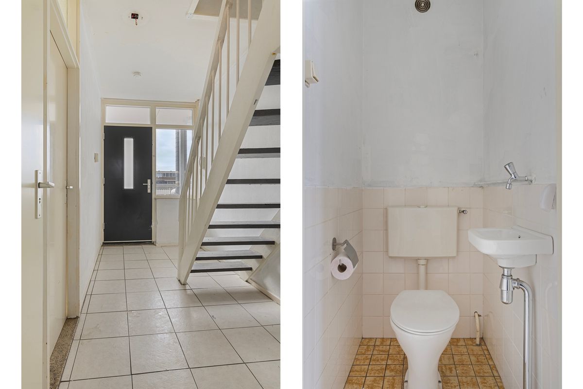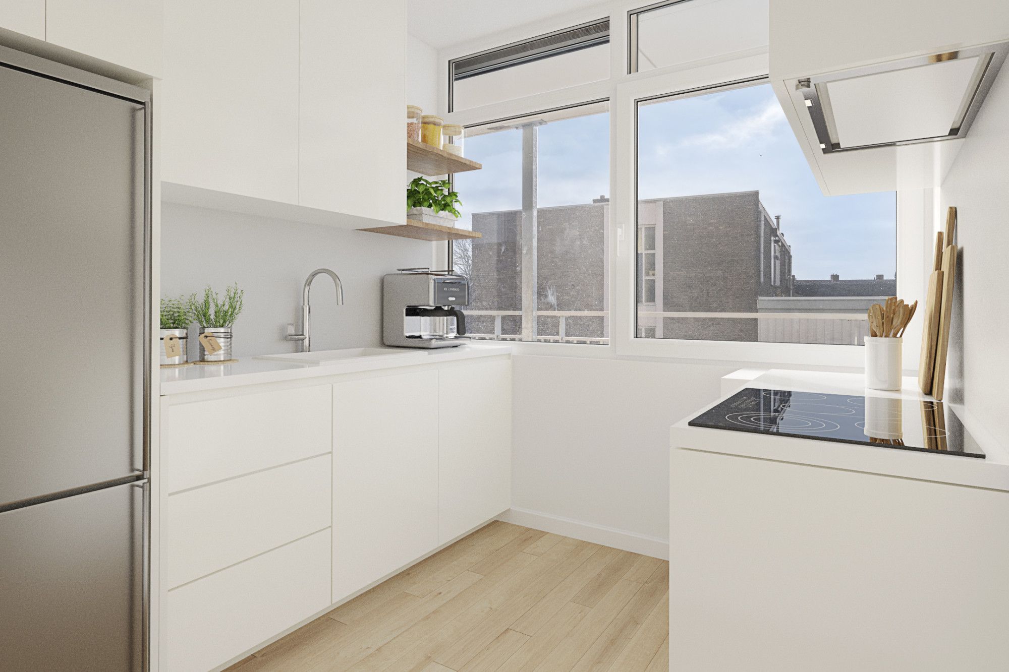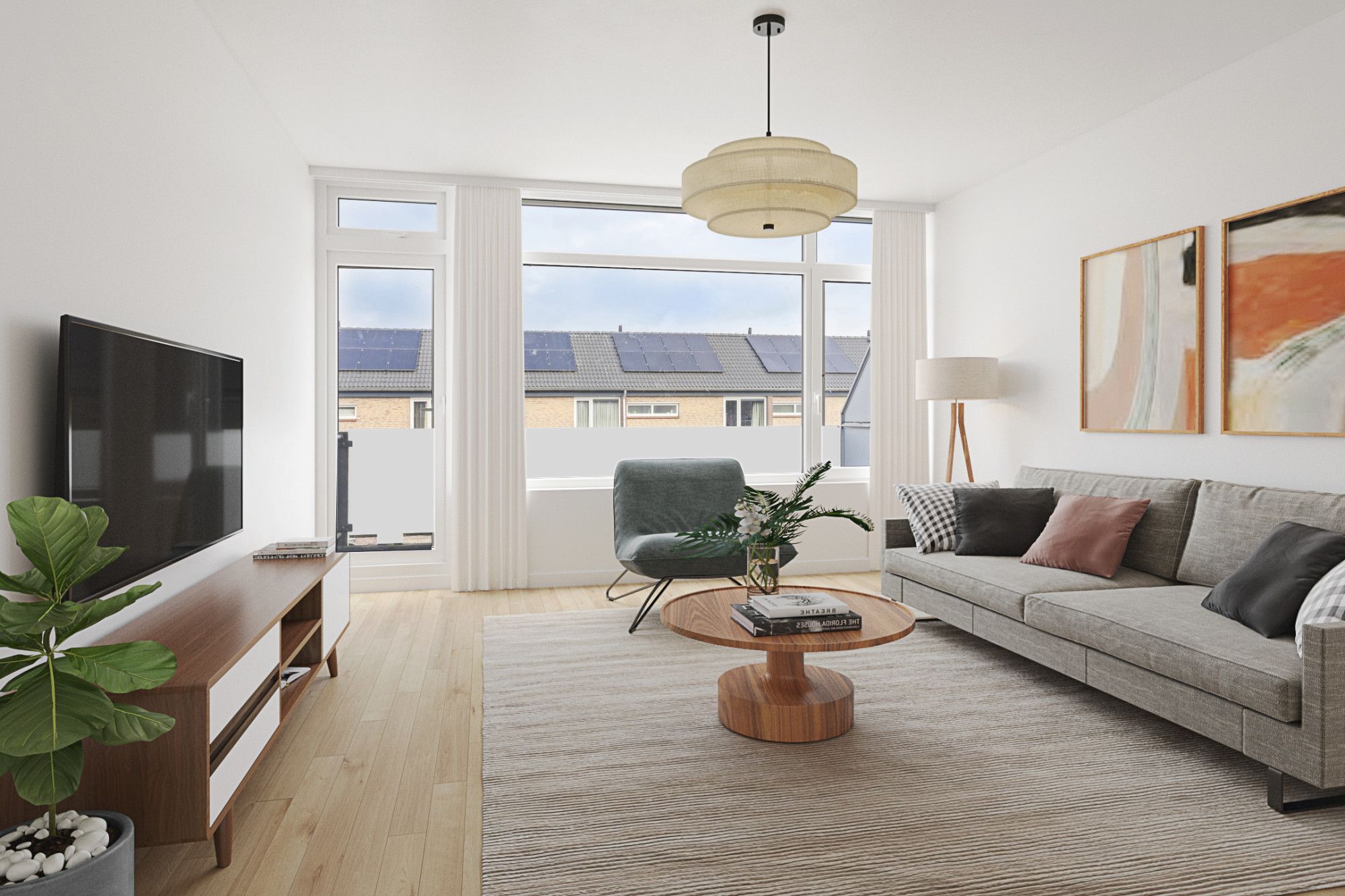 Bij binnenkomst tref je de hal, die toegang biedt tot de keuken, het separate toilet en de ruime woonkamer. De grote raampartijen zorgen voor veel natuurlijk licht, wat de ruimte een open en aangename sfeer geeft. Vanuit de woonkamer stap je het balkon op, waar je heerlijk buiten kunt zitten.