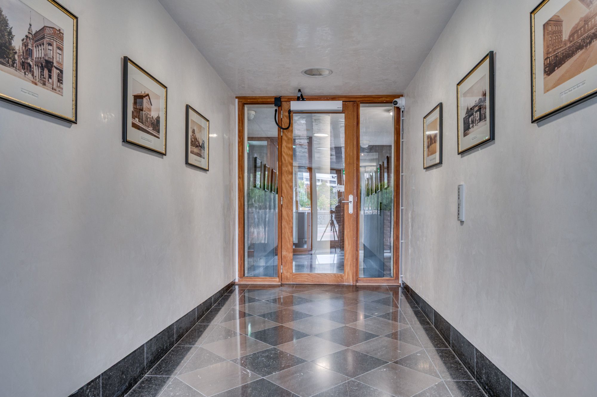 Centrale entree met beltableau met videofooninstallatie en brievenbussen. De hal geeft toegang tot het trappenhuis en de liftinstallatie.