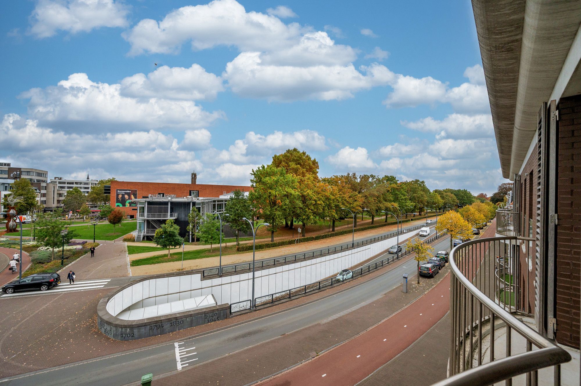 De slaapkamer welke middels de centrale hal te betreden is is ca. 14m² groot en voorzien van een inbouwkast. De geheel betegelde toiletruimte is voorzien van een zwevend toilet, fonteintje en mechanische ventilatie. Middels een loopdeur is er toegang tot de ruime keuken. Verder is de keuken tevens te bereiken via de woonkamer en het balkon. De keuken is voorzien van een inductiekookplaat, afzuigkap, vaatwasmachine, koelkast, diepvries, combioven/ magnetron en een granieten aanrechtblad. De zeer ruime doorzonwoonkamer biedt een prachtig uitzicht over het museum, de fontein en het Julianapark. De woonkamer beschikt aan de voorzijde over een klein balkon en aan de achterzijde geeft het toegang middels 2 openslaande deuren tot het ruime balkon van ca. 13m² welke uitzicht geeft tot de gezamenlijke tuin. Via de 'Prive' hal is er toegang tot de badkamer. De badkamer is zeer ruim van opzet en beschikt over een inloopdouche, zwevend toilet, wastafel met meubel, en designradiator. Verder geeft de hal toegang tot de wasruimte en slaapkamer 2 en 3. De slaapkamers zijn aan de voorzijde van het appartement gelegen en ca. 9,5m² en 14m² groot. De wasruimte beschikt over de witgoedaansluitingen, cv-ketel (Remeha 2024) en de WTW installatie.