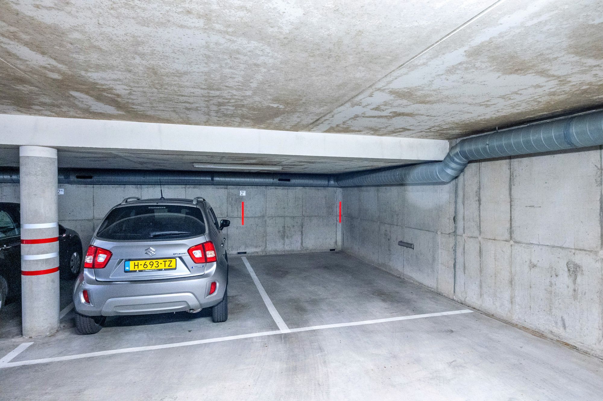 Het appartementencomplex beschik over een parkeerkelder, waar de berging en de 2 privé parkeerplaatsen naast elkaar zijn gelegen.