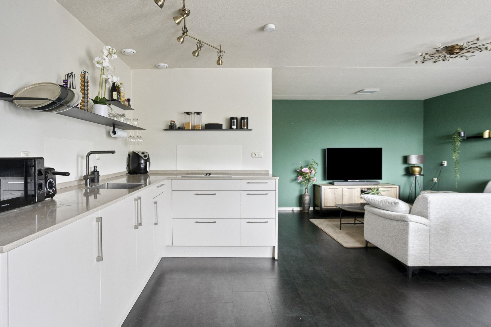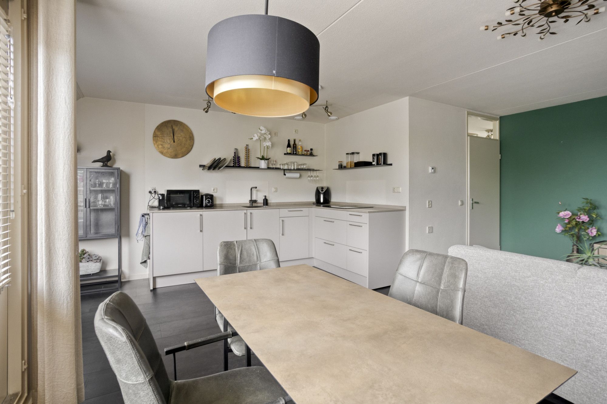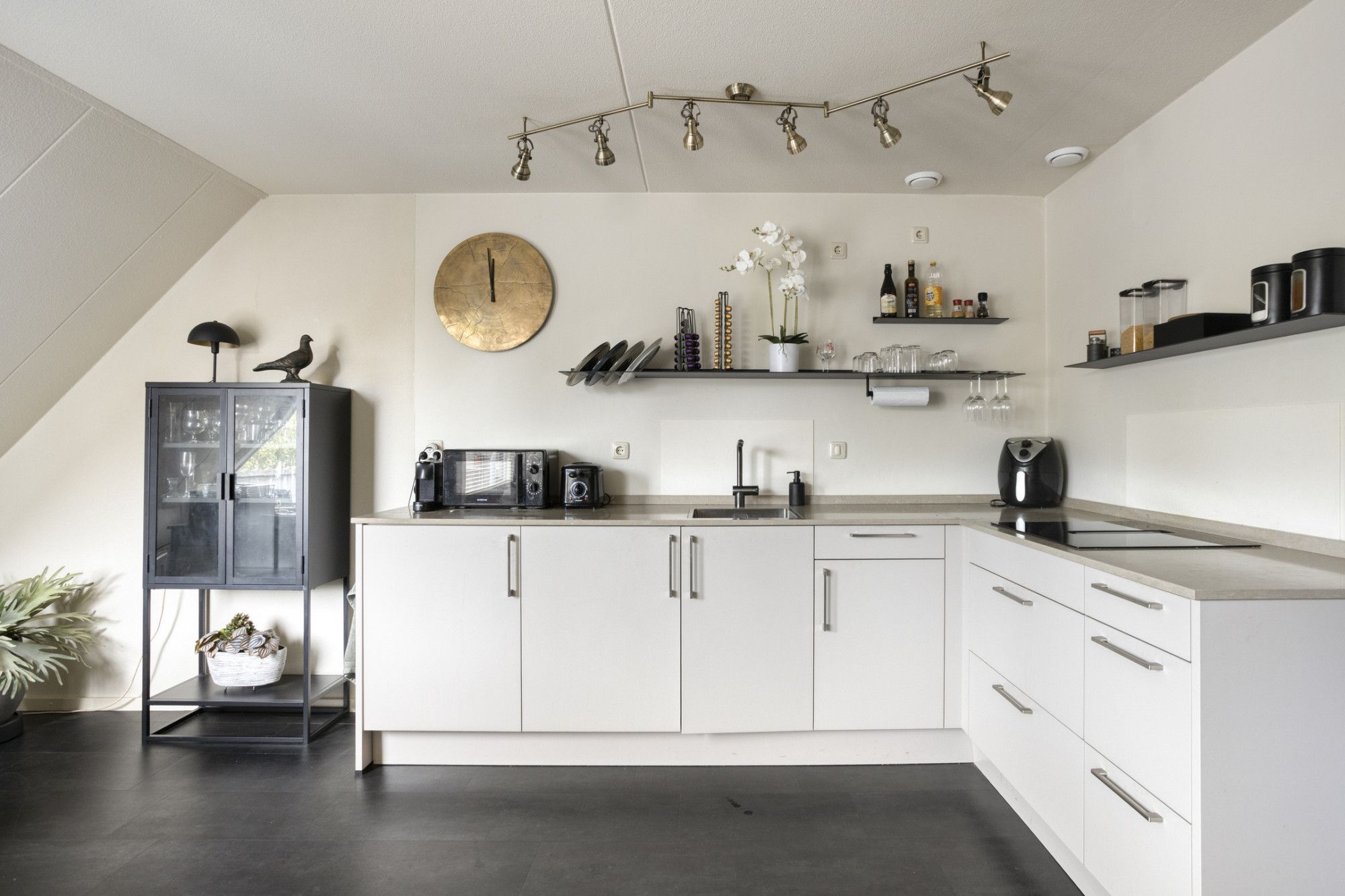 De keuken is recent gerenoveerd, modern uitgevoerd en voorzien van een inductiekookplaat en ruime opbergruimte. De keuken sluit mooi aan op de eethoek; een fijne plek om samen te eten of te borrelen.