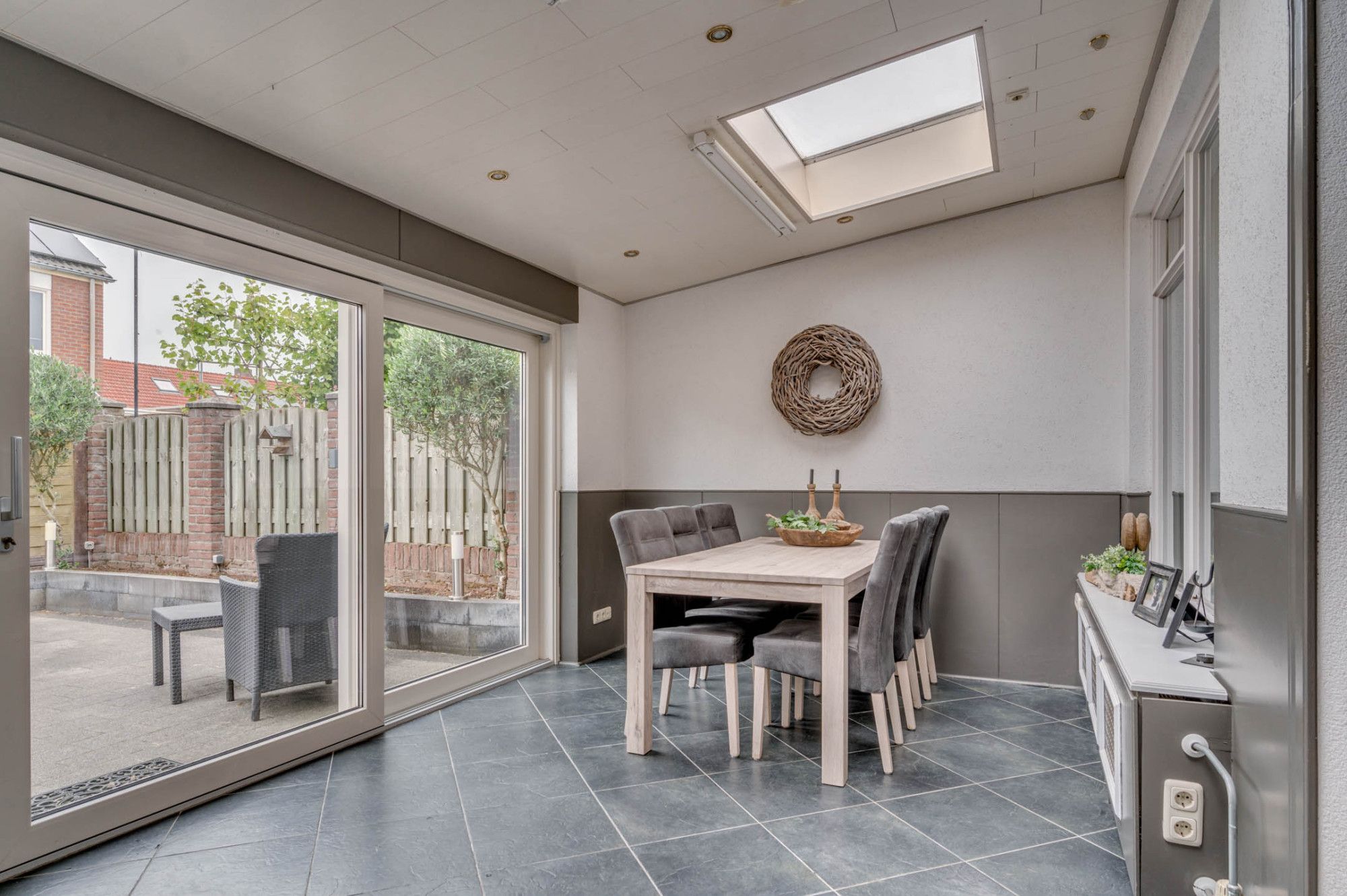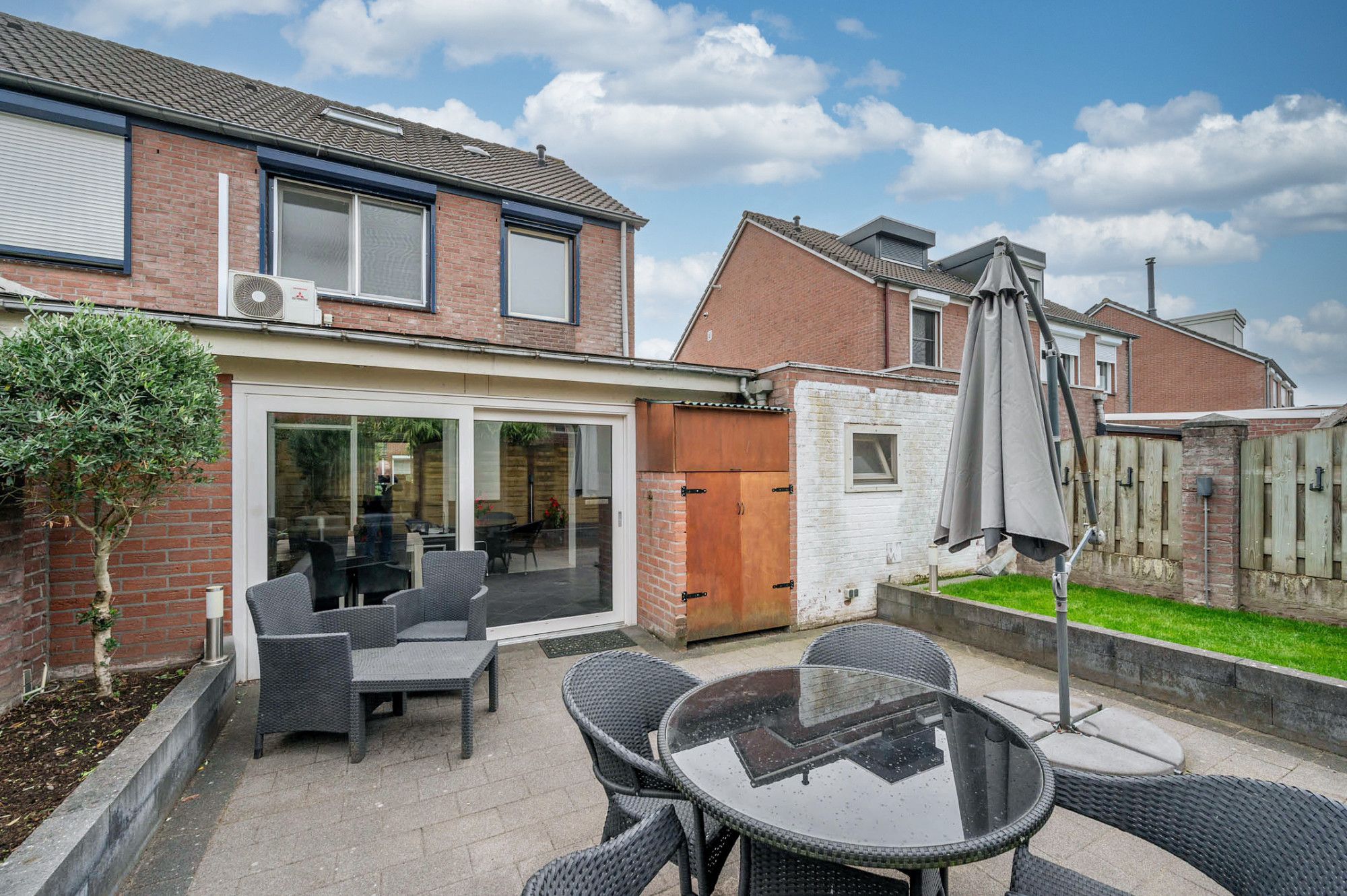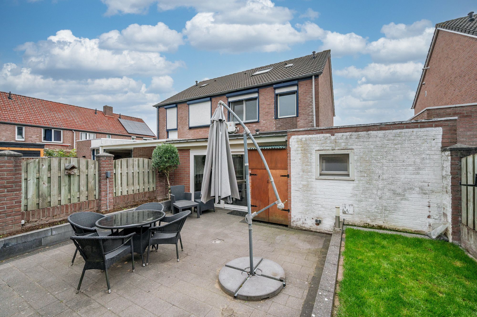 De achtertuin is deels beklinkerd, deels voorzien van gazon en borders met beplanting. De tuin is gelegen op het noordwesten en ruim van opzet.