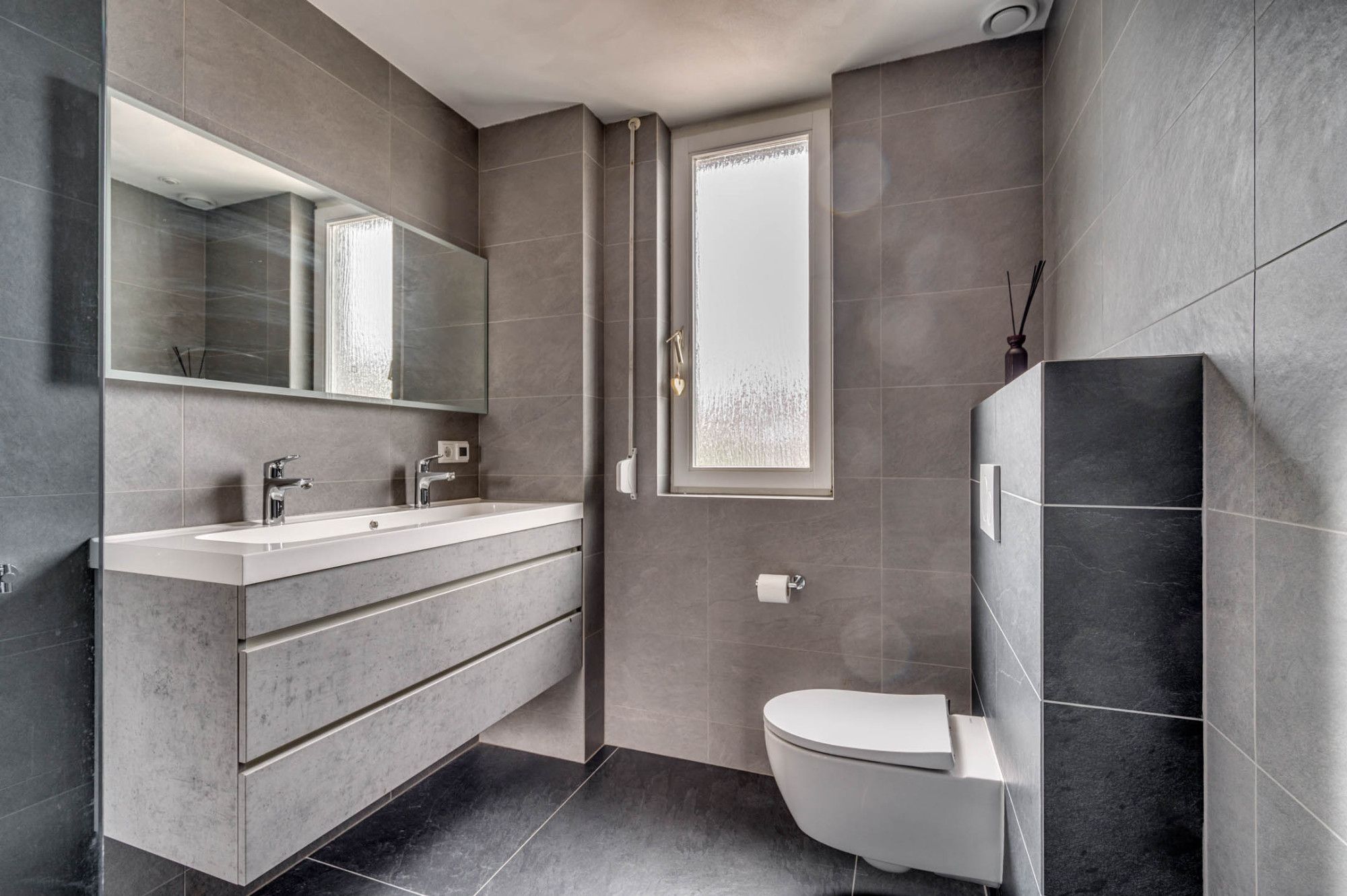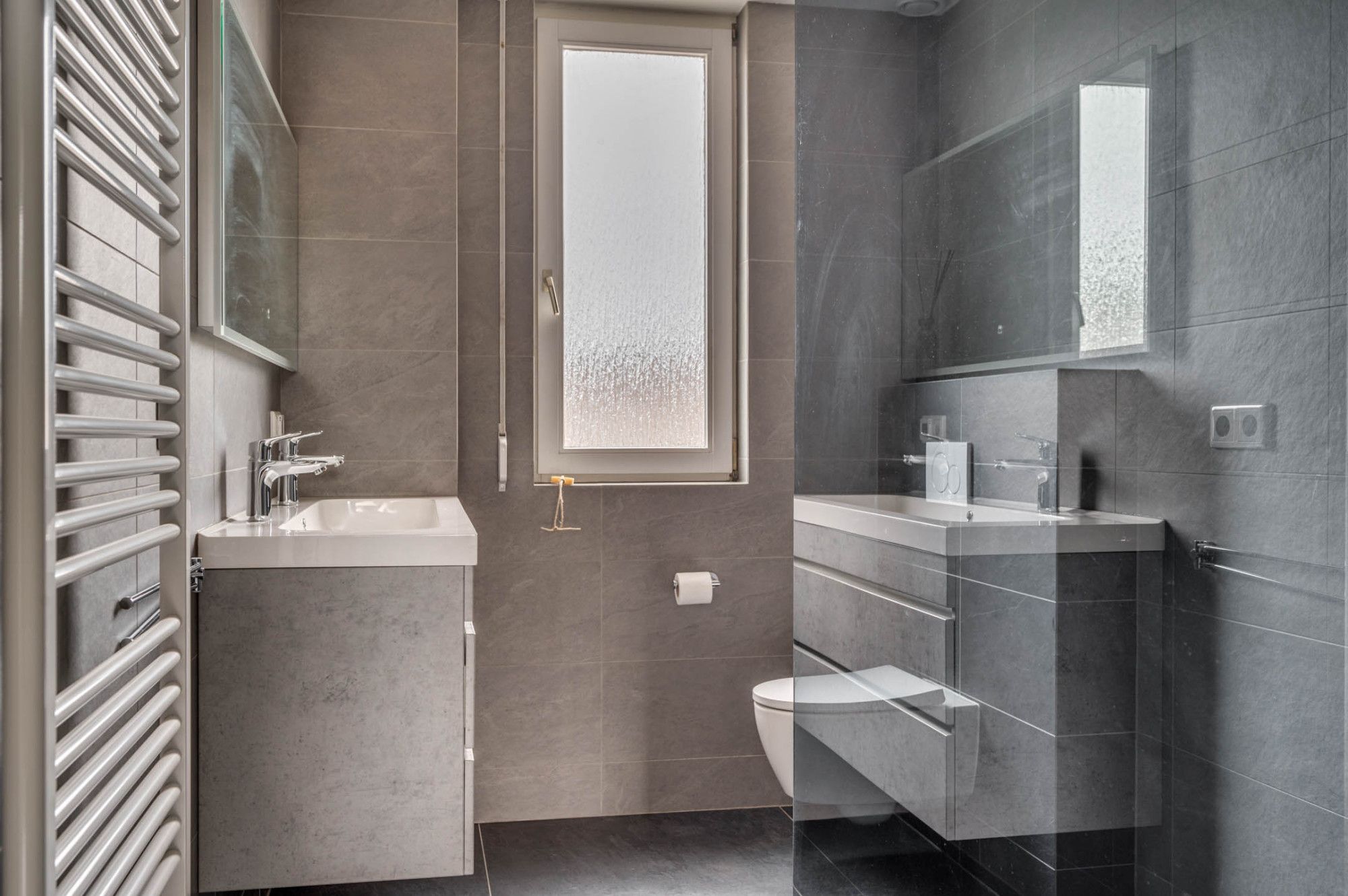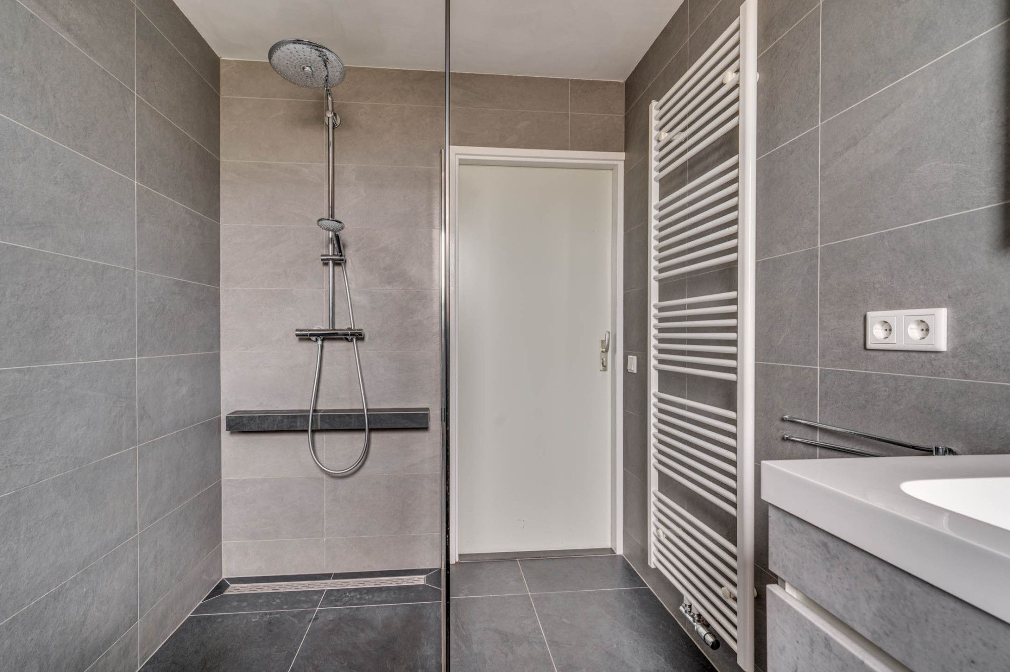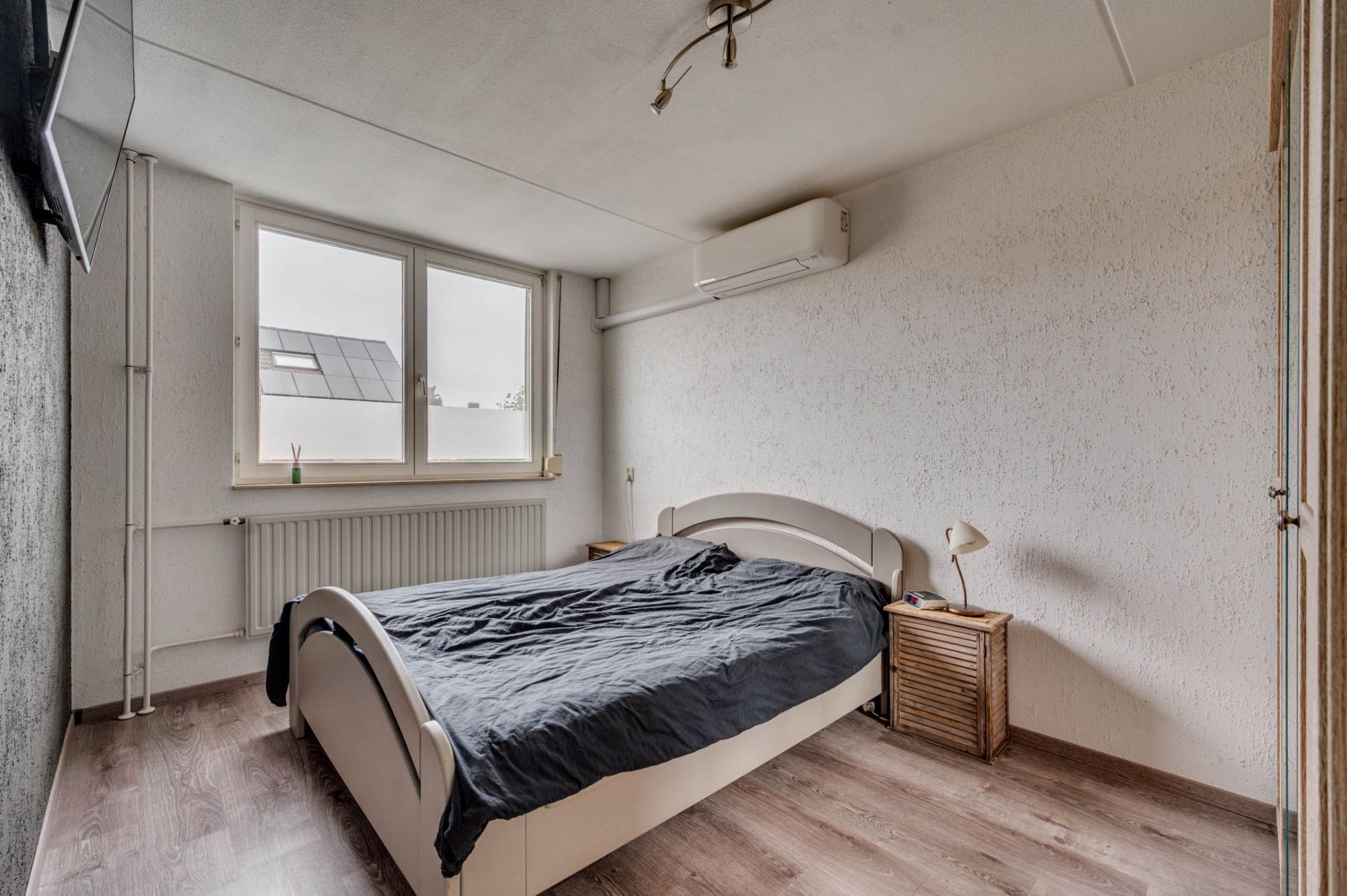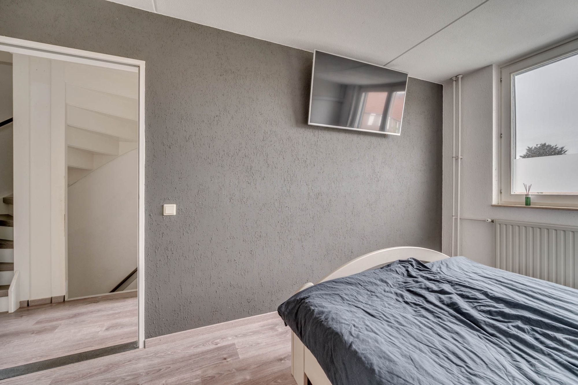 De overloop geeft toegang tot 3 slaapkamers, de badkamer en vaste trapopgang naar de 2e verdieping. De gehele verdieping is voorzien van een laminaatvloer. De gehele verdieping beschikt verder over rolluiken. De 3 slaapkamers zijn ca.12m², ca. 11m² en ca. 6m² groot. De slaapkamer van ca. 11m² groot heeft verder de beschikking over een airco. De badkamer welke geheel is betegeld is in 2020 vernieuwd. De badkamer beschikt over een inloopdouche, zwevend toilet, dubbele wastafel met meubel, designradiator, mechanische ventilatie en buitenraam.