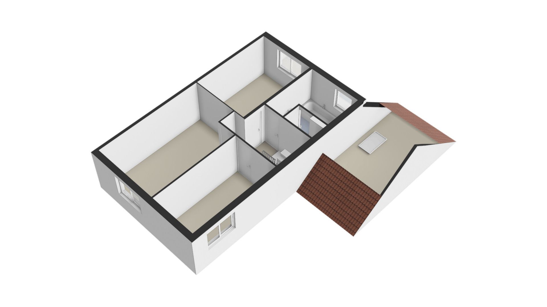 De overloop biedt toegang tot de slaapvertrekken en de badkamer.