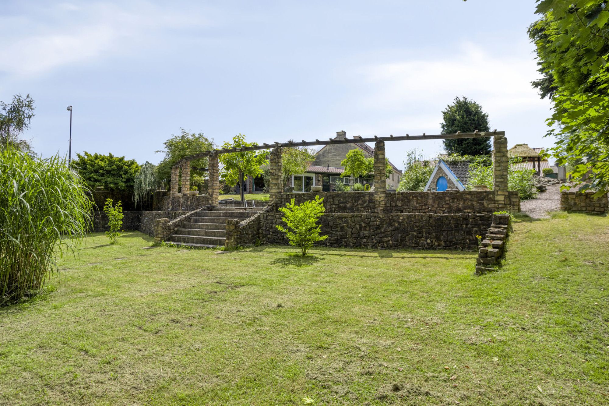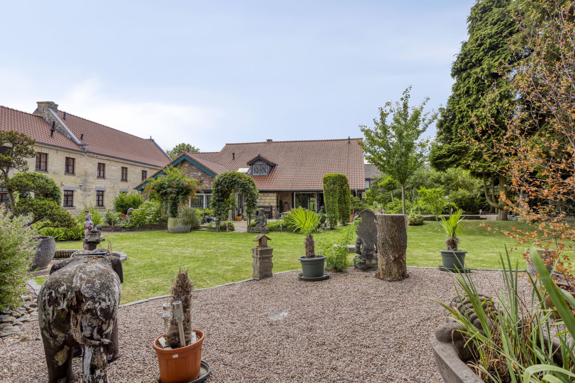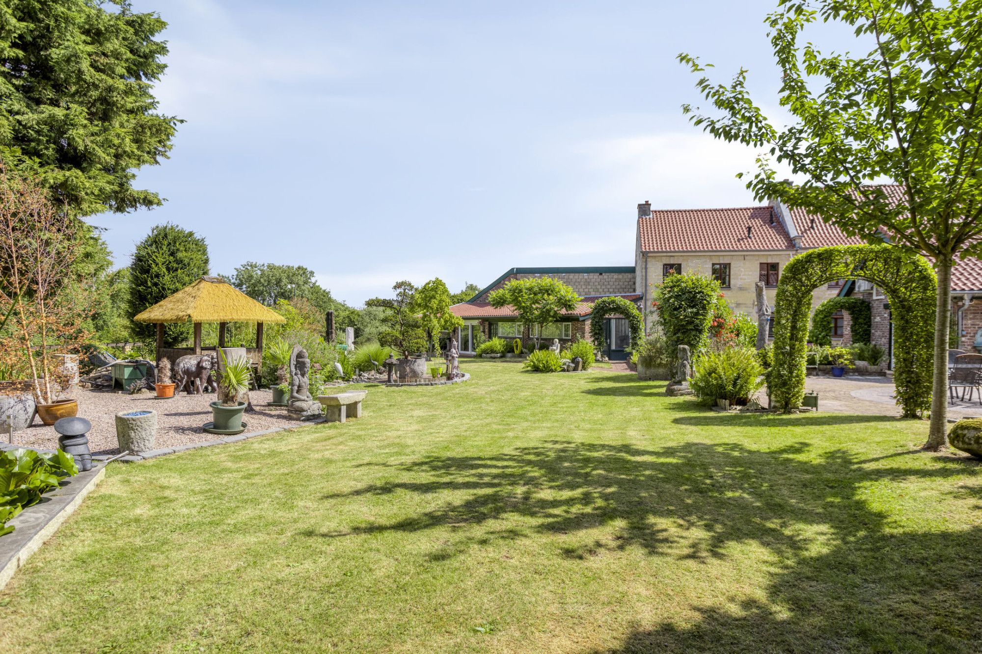 De zeer fraai aangelegde tuin biedt een oase van rust, veel afwisseling en verrassingen en een magistraal vrij uitzicht over het schitterende Heuvelland.