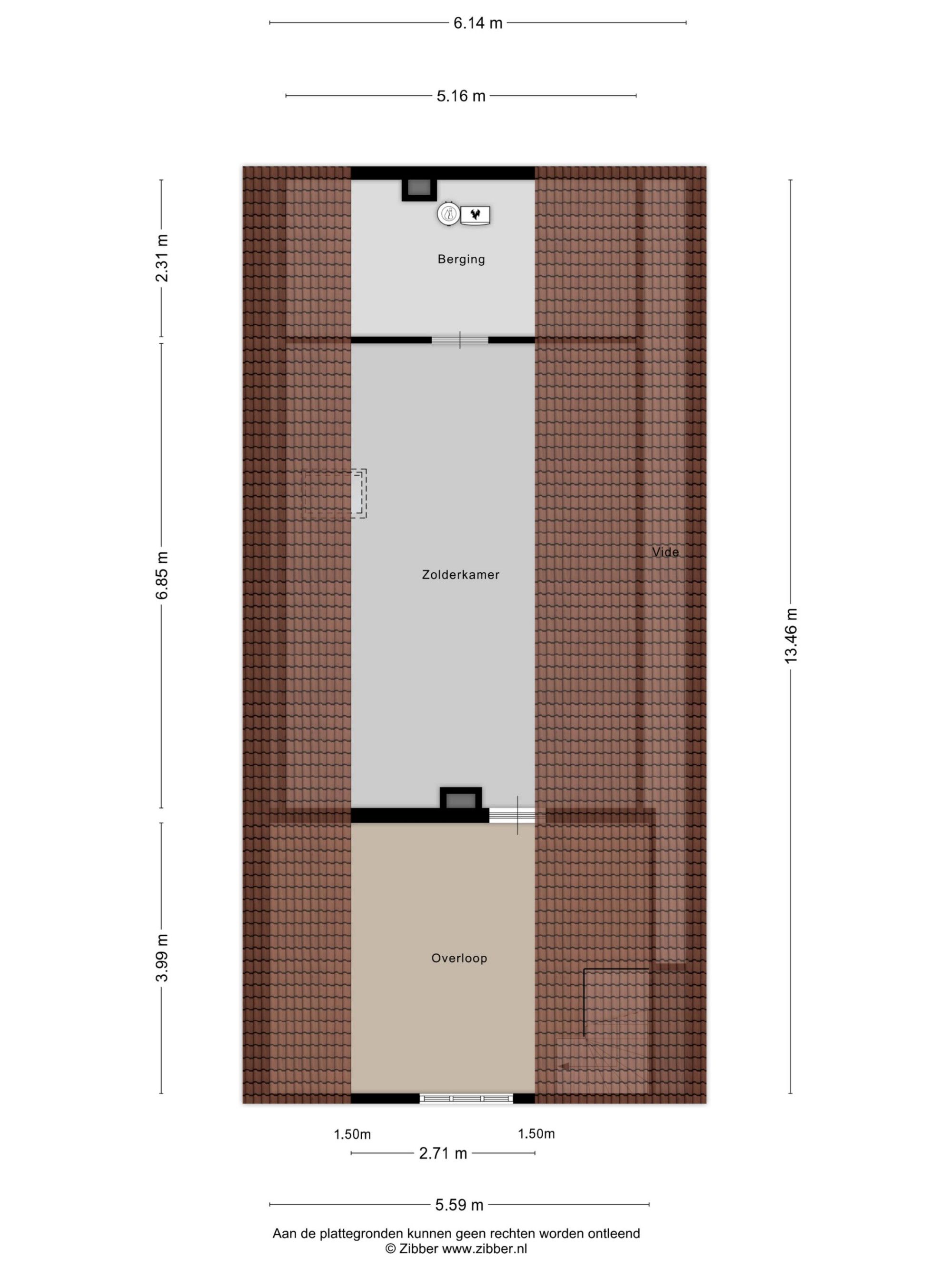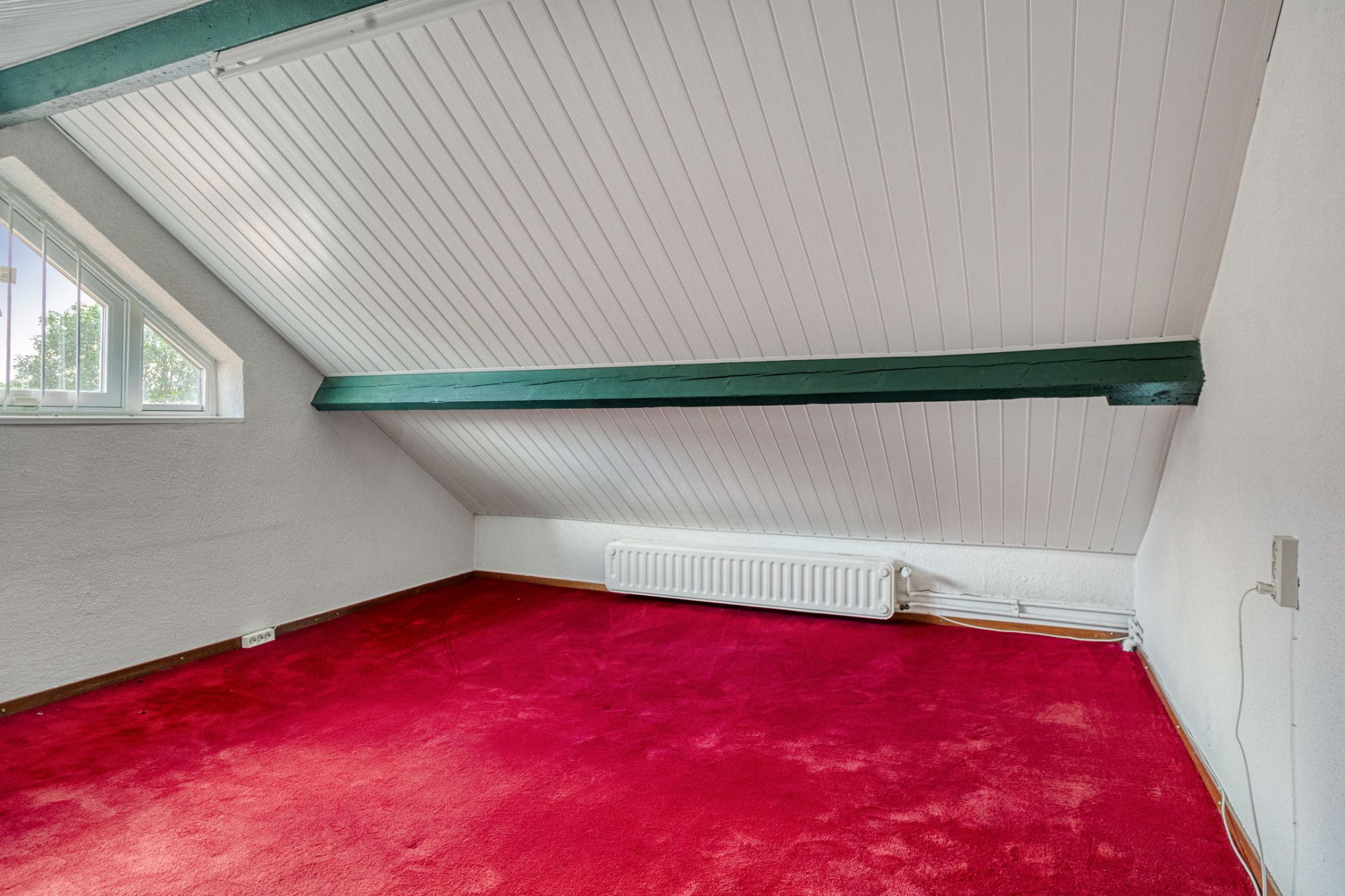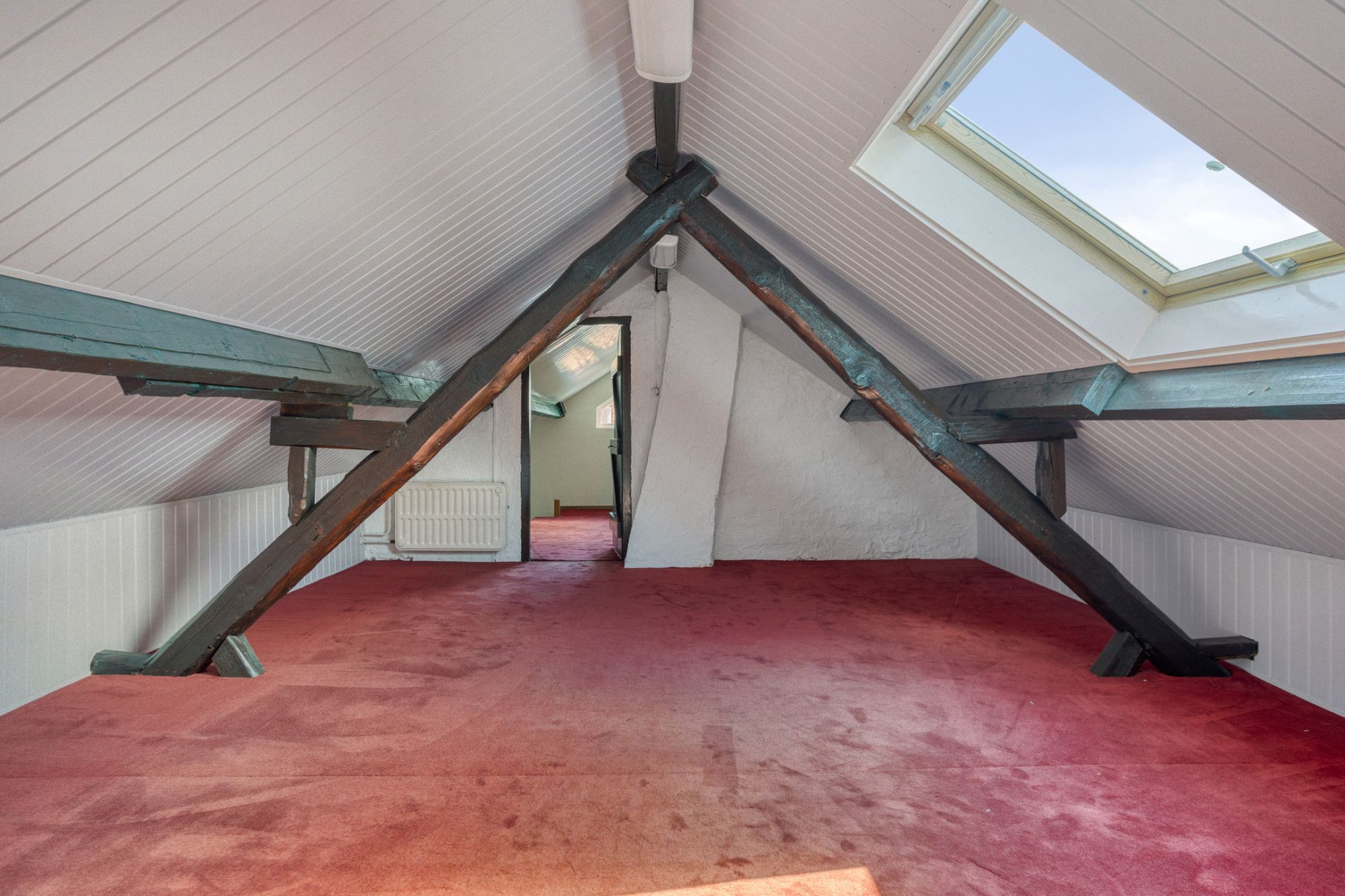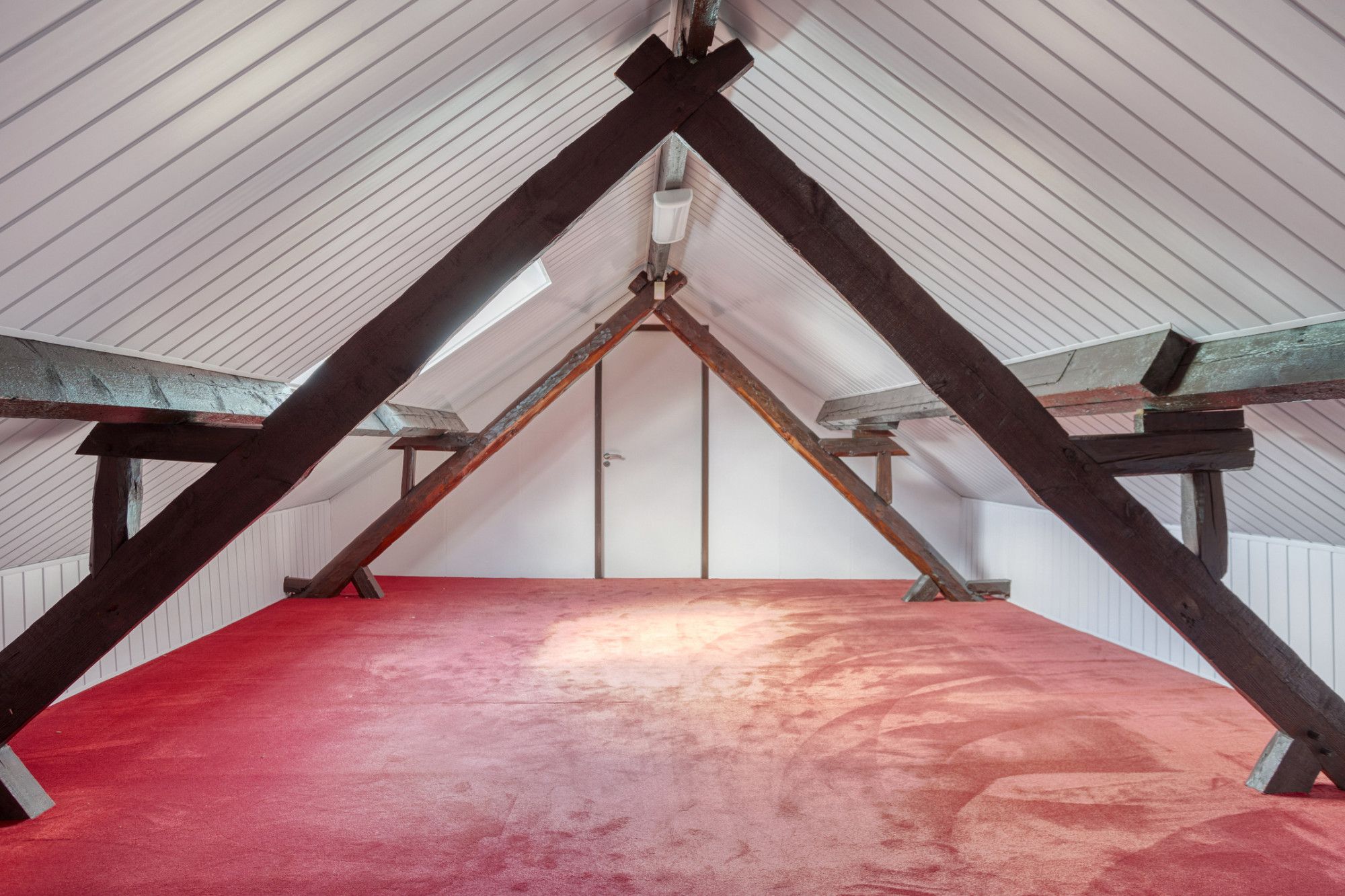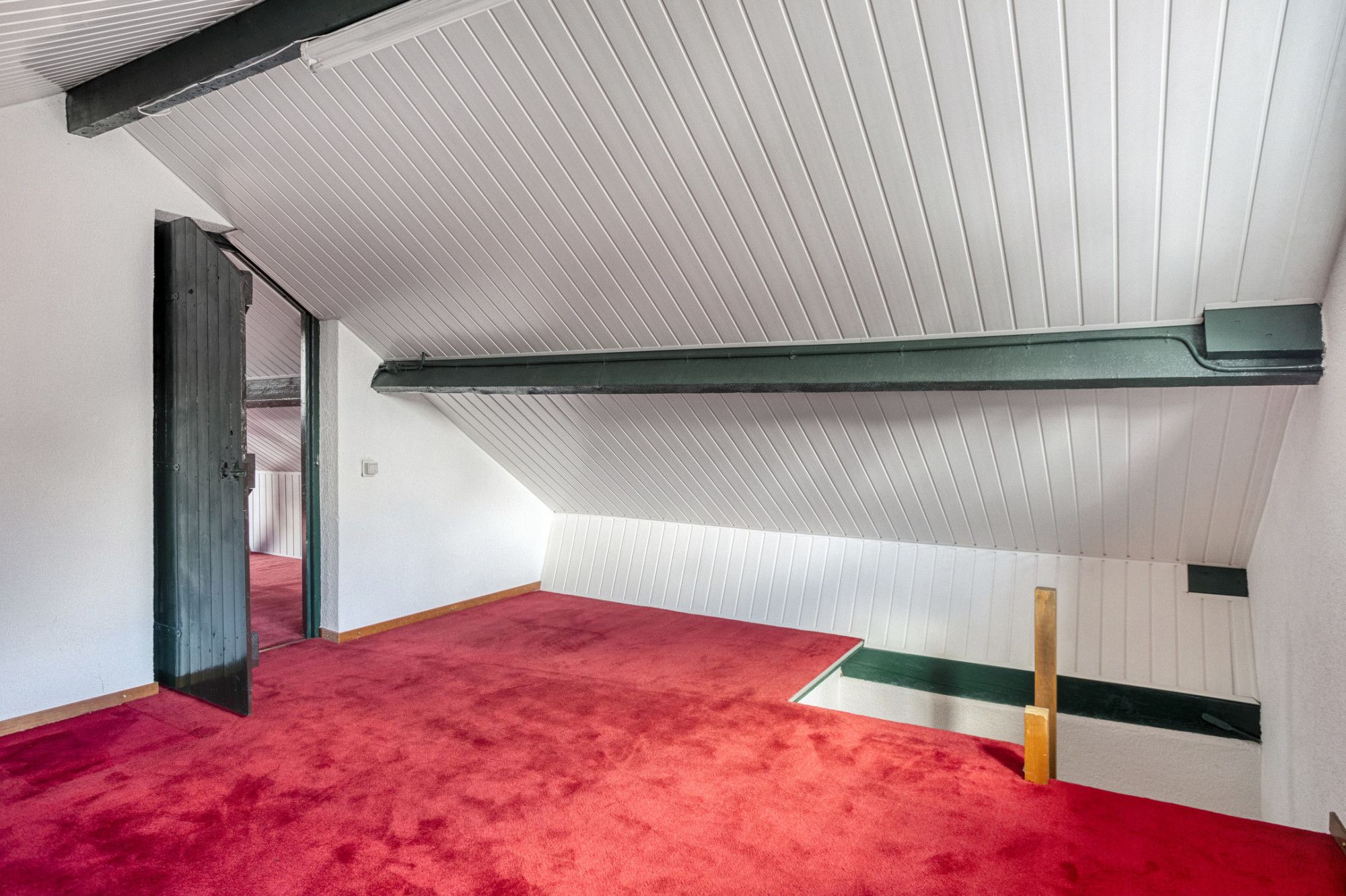 Zeer ruime overloop/voorzolder. Enorme kamer (ruim 18m² bij 1,5 meter hoogte, ruim 35m² vloeroppervlak) met dakraam aan de voorzijde.