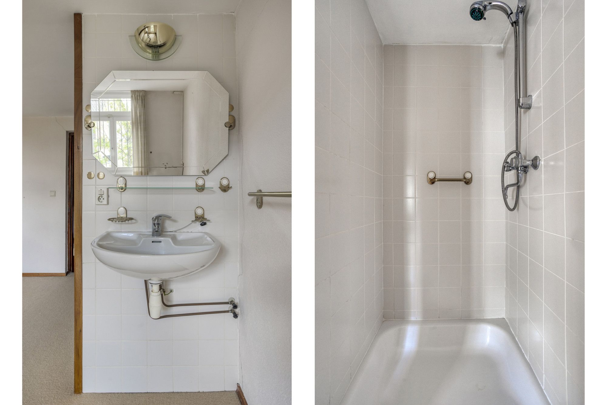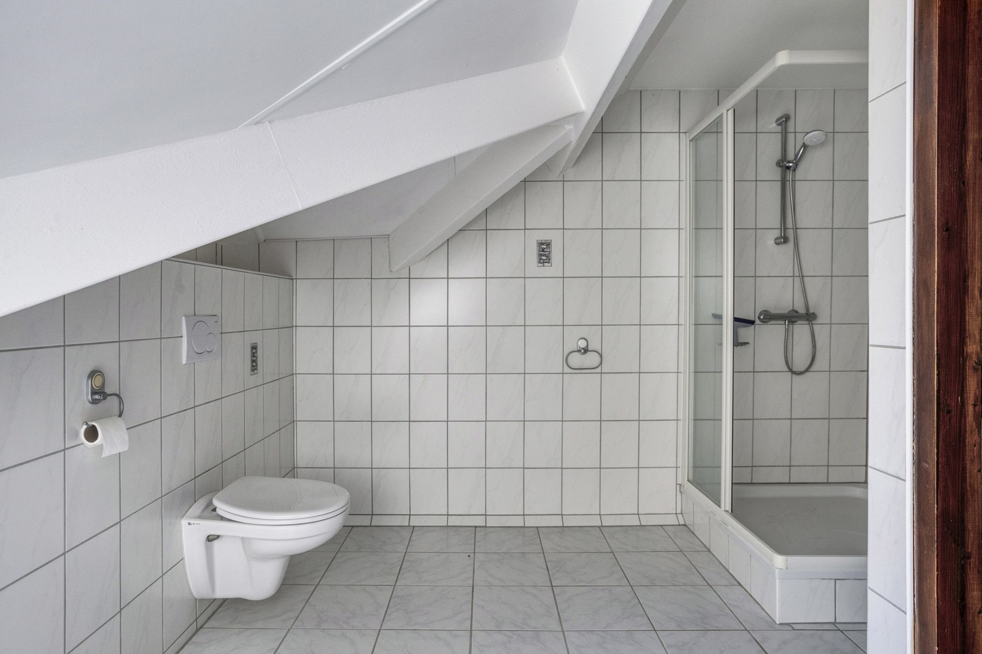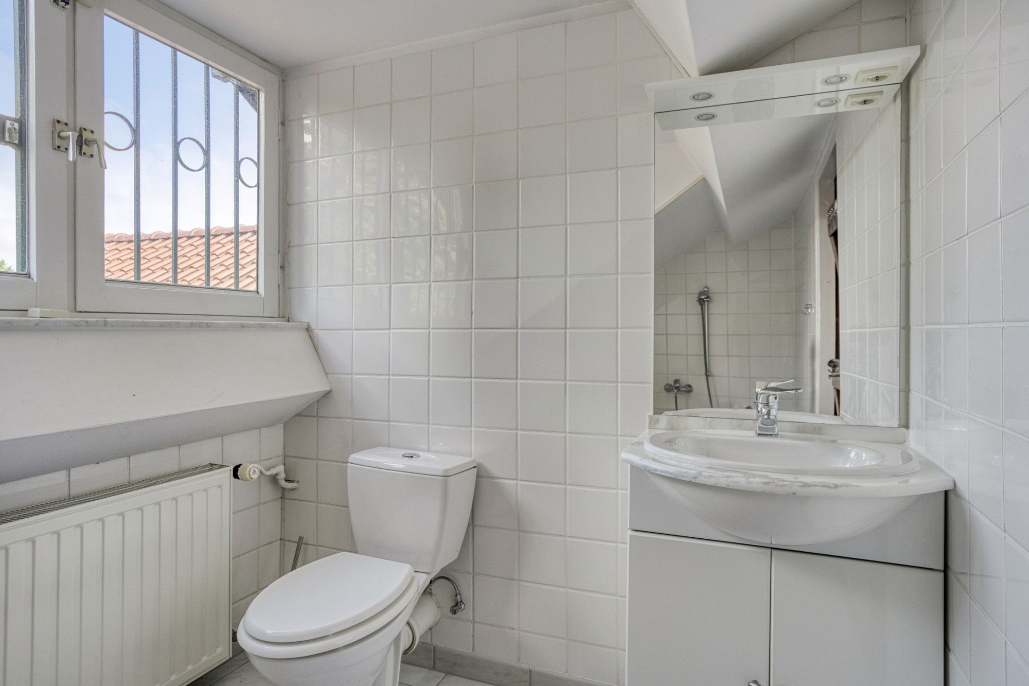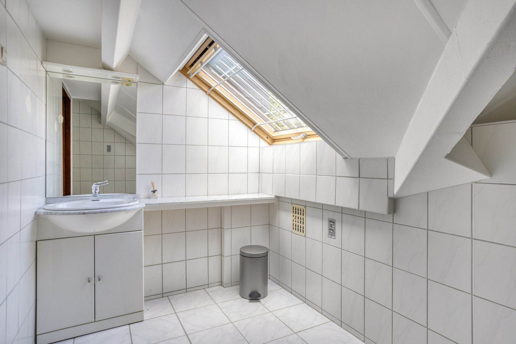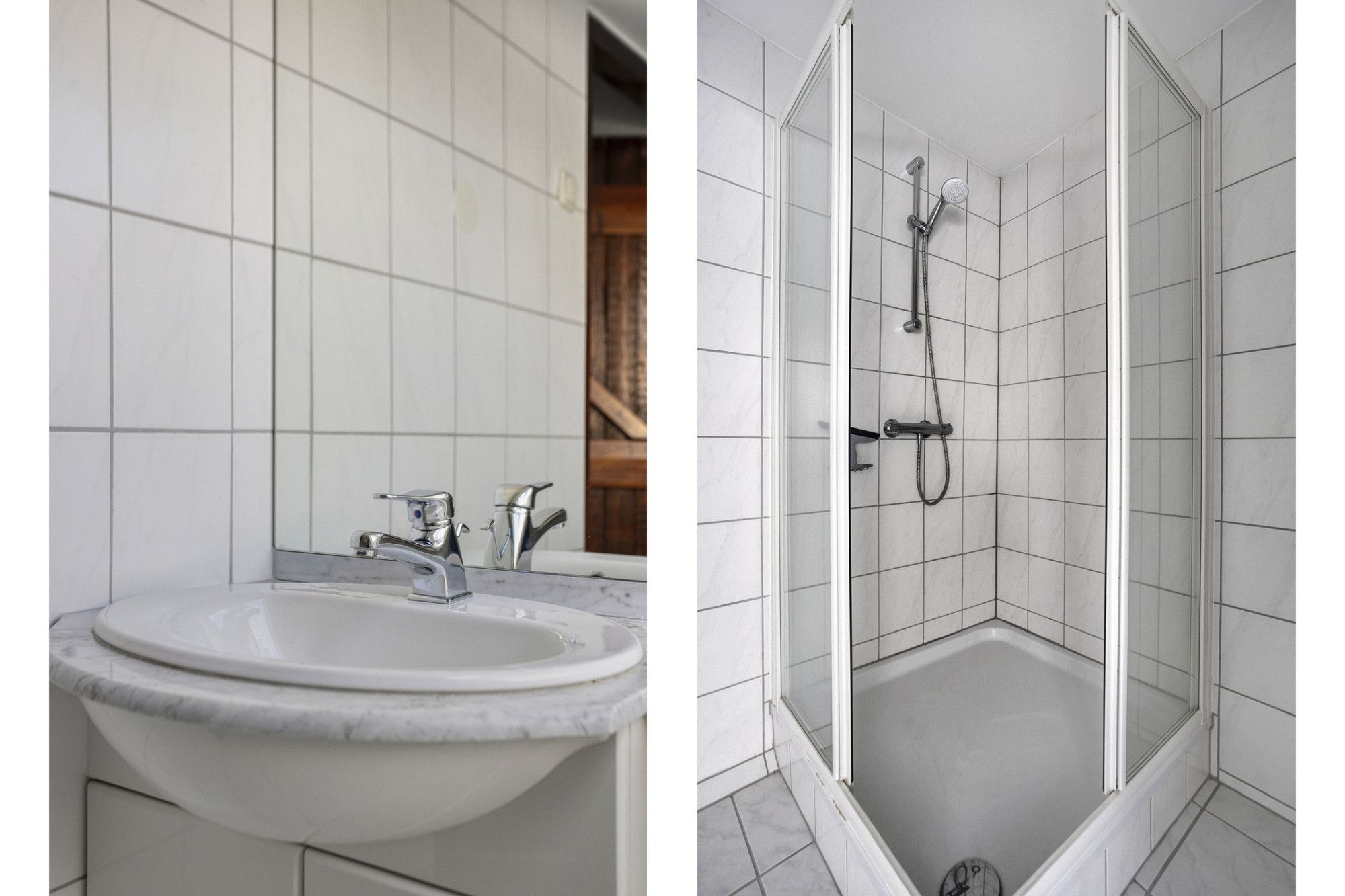 Badkamer 2 (met Velux dakraam) beschikt over douchecabine, toilet (wandcloset) en wastafelmeubel.