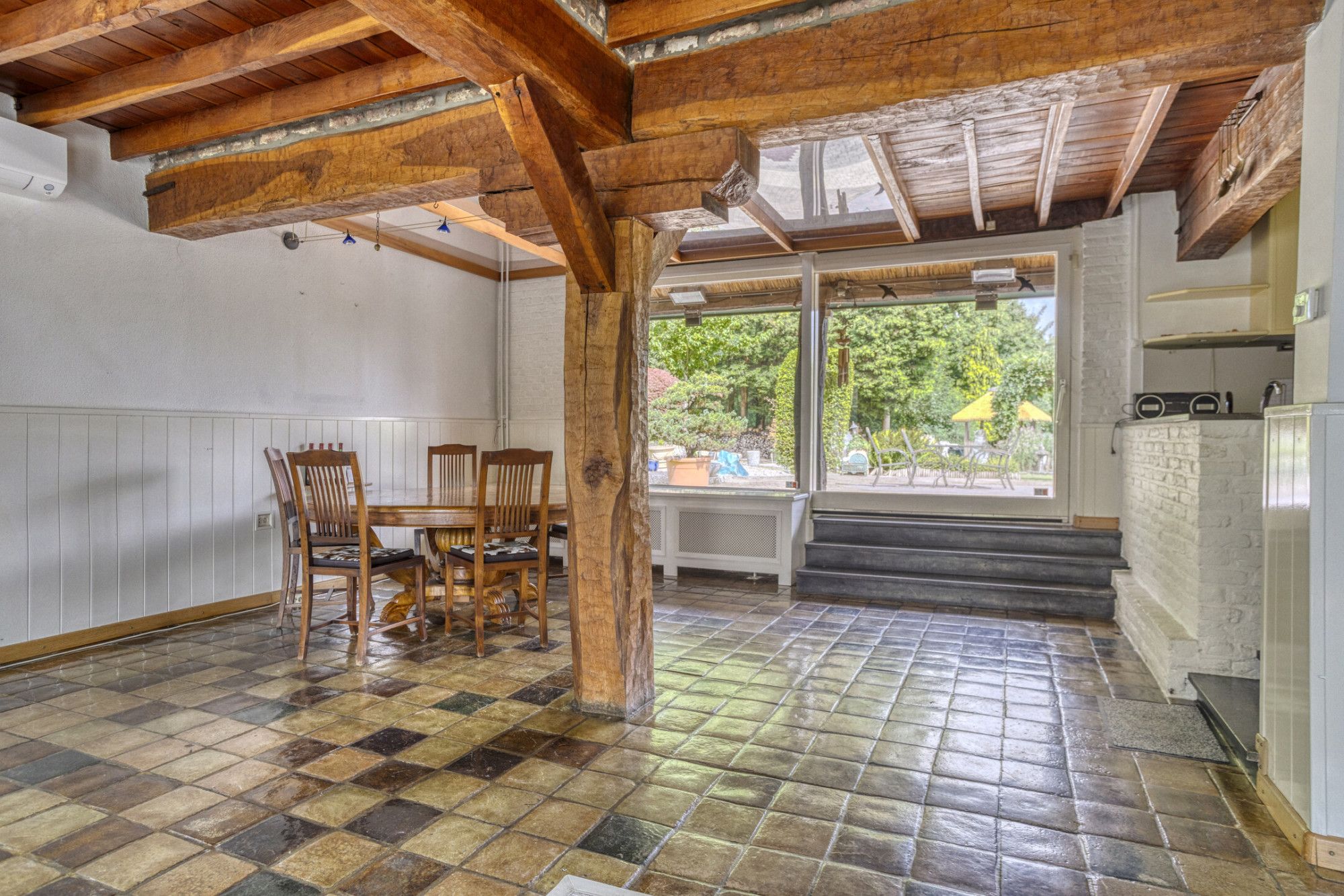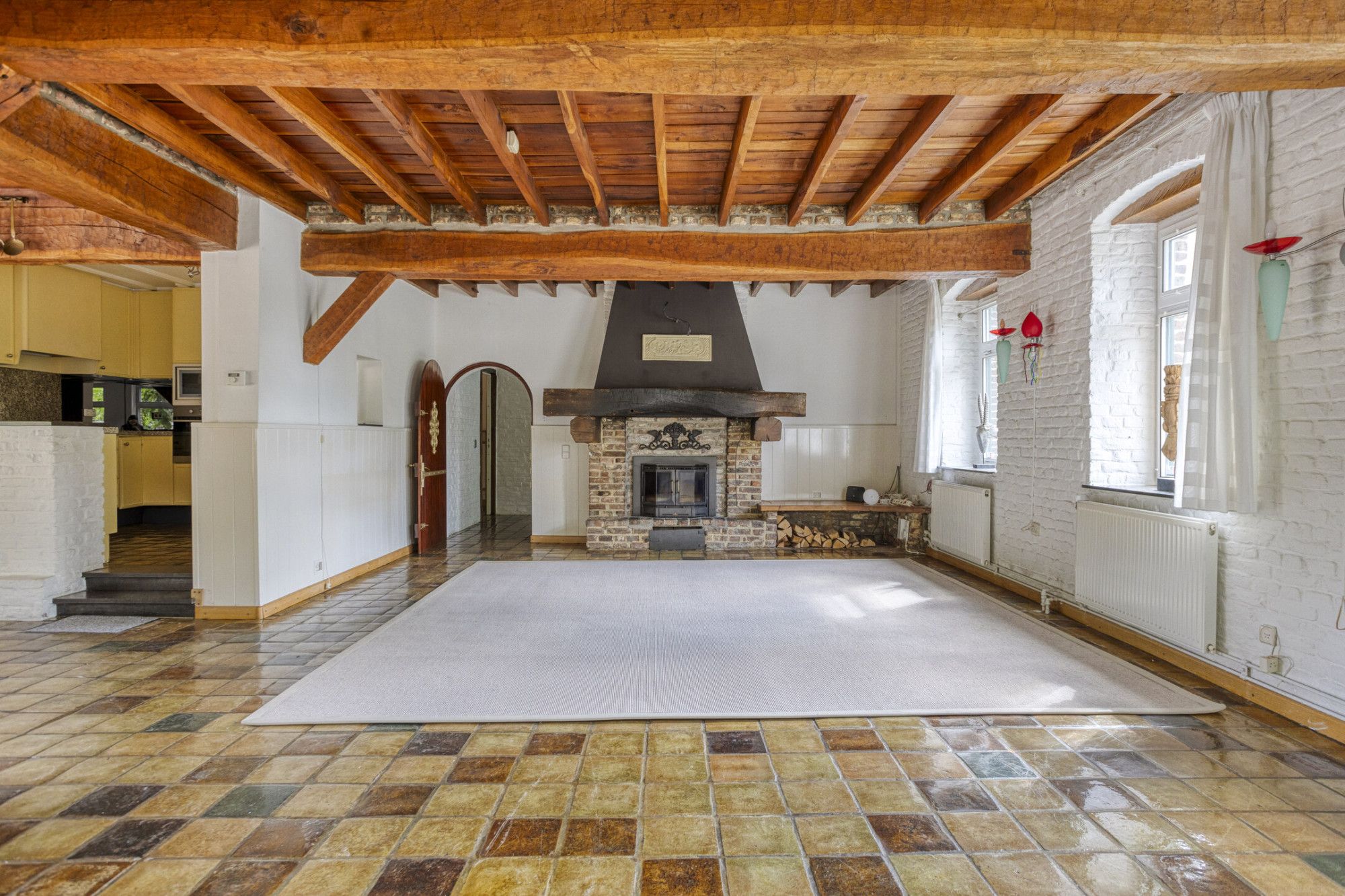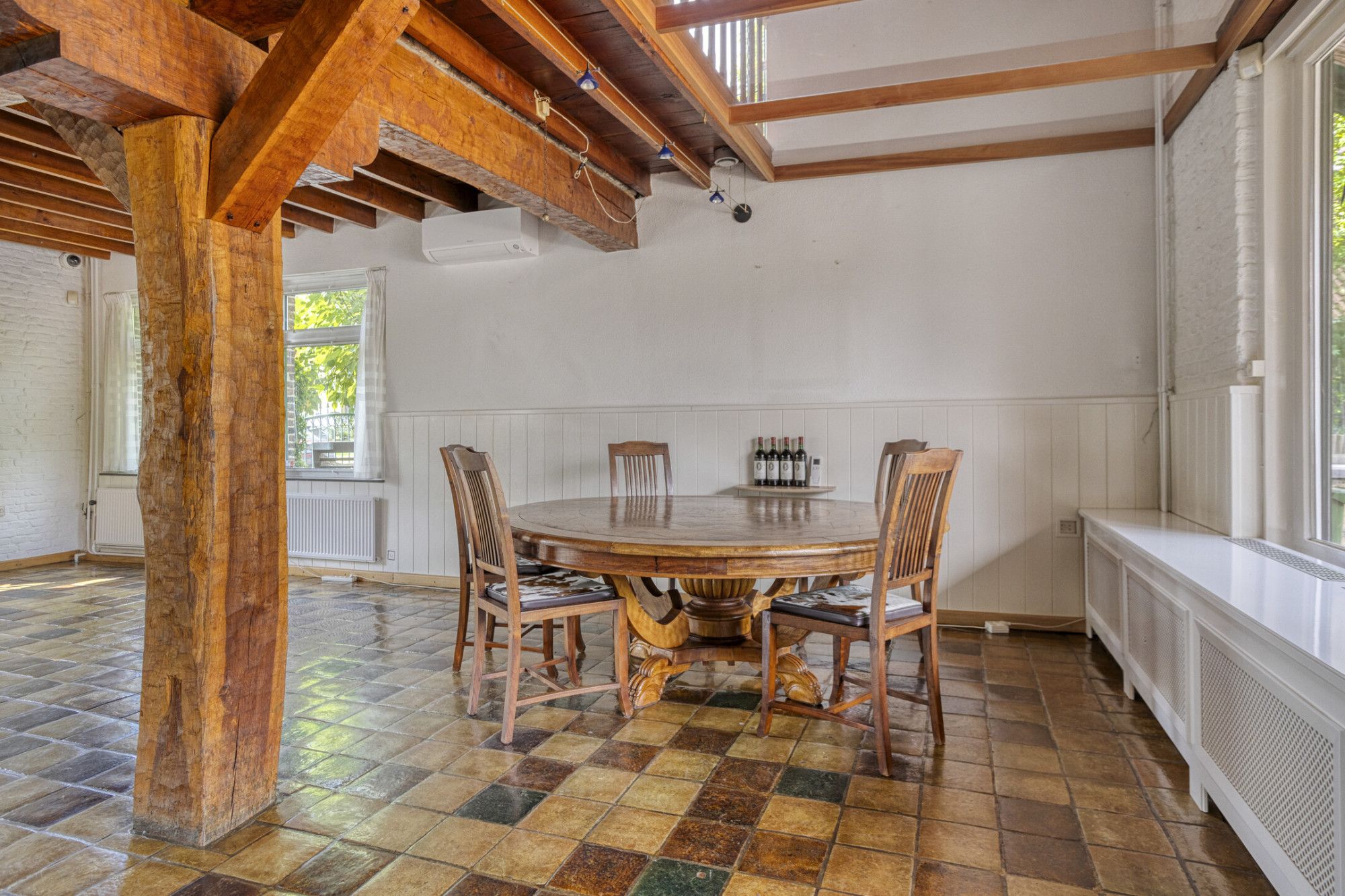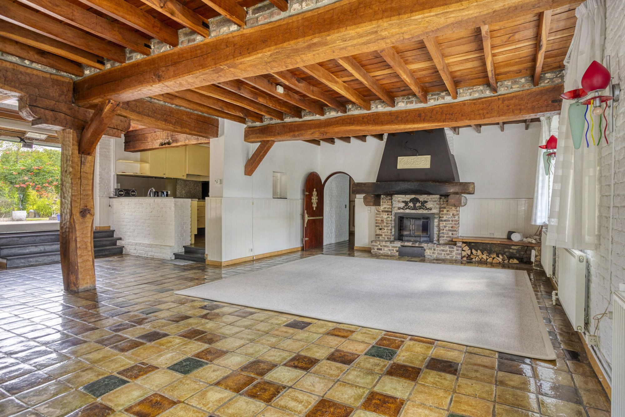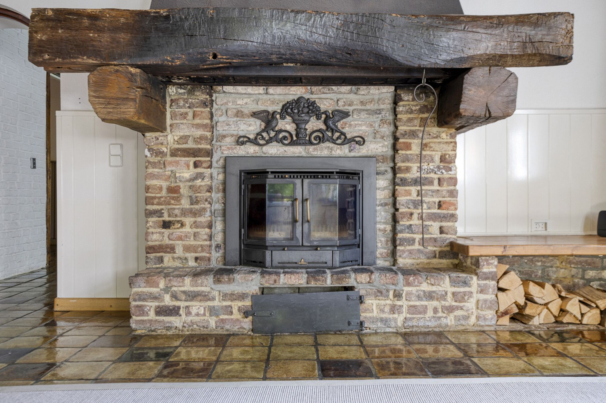 Zeer ruime eet-/woonkamer (circa 63m²) met robuuste klassieke open haard en schuifpui naar de achtertuin.