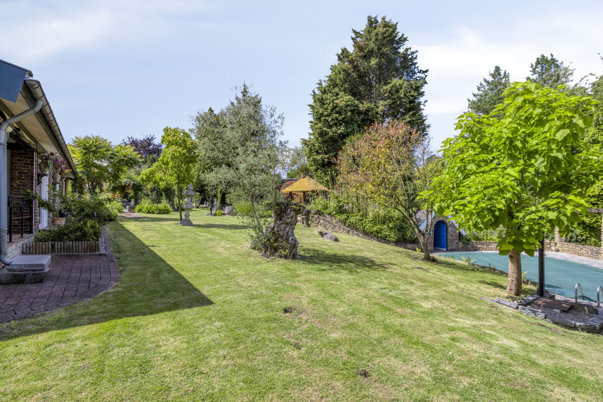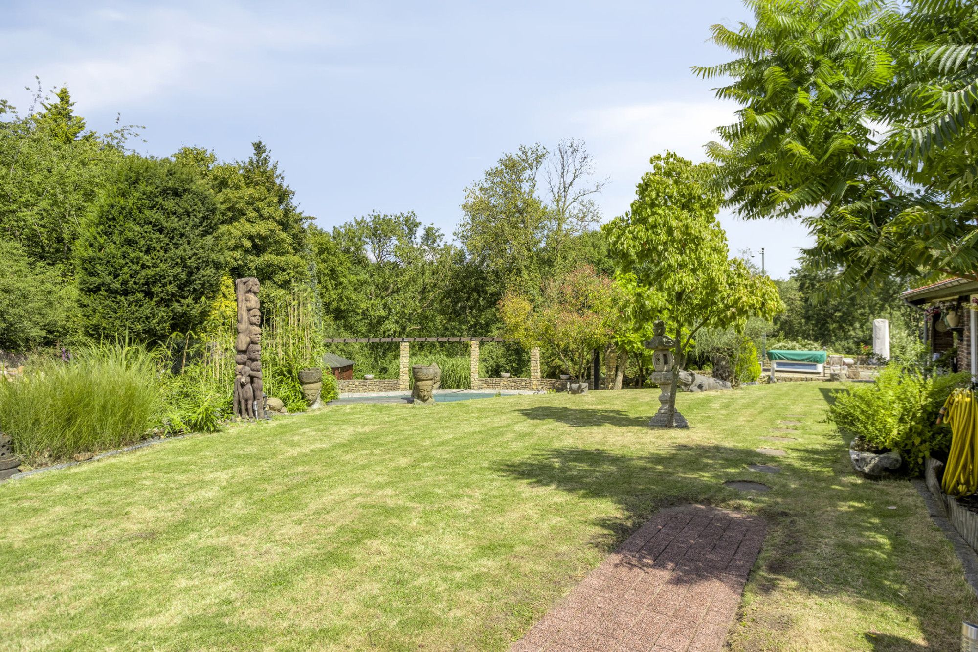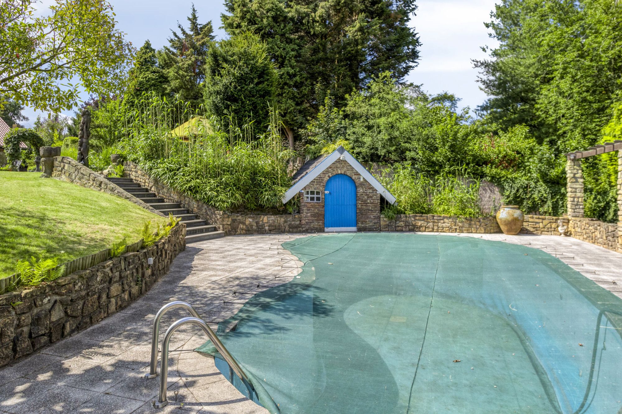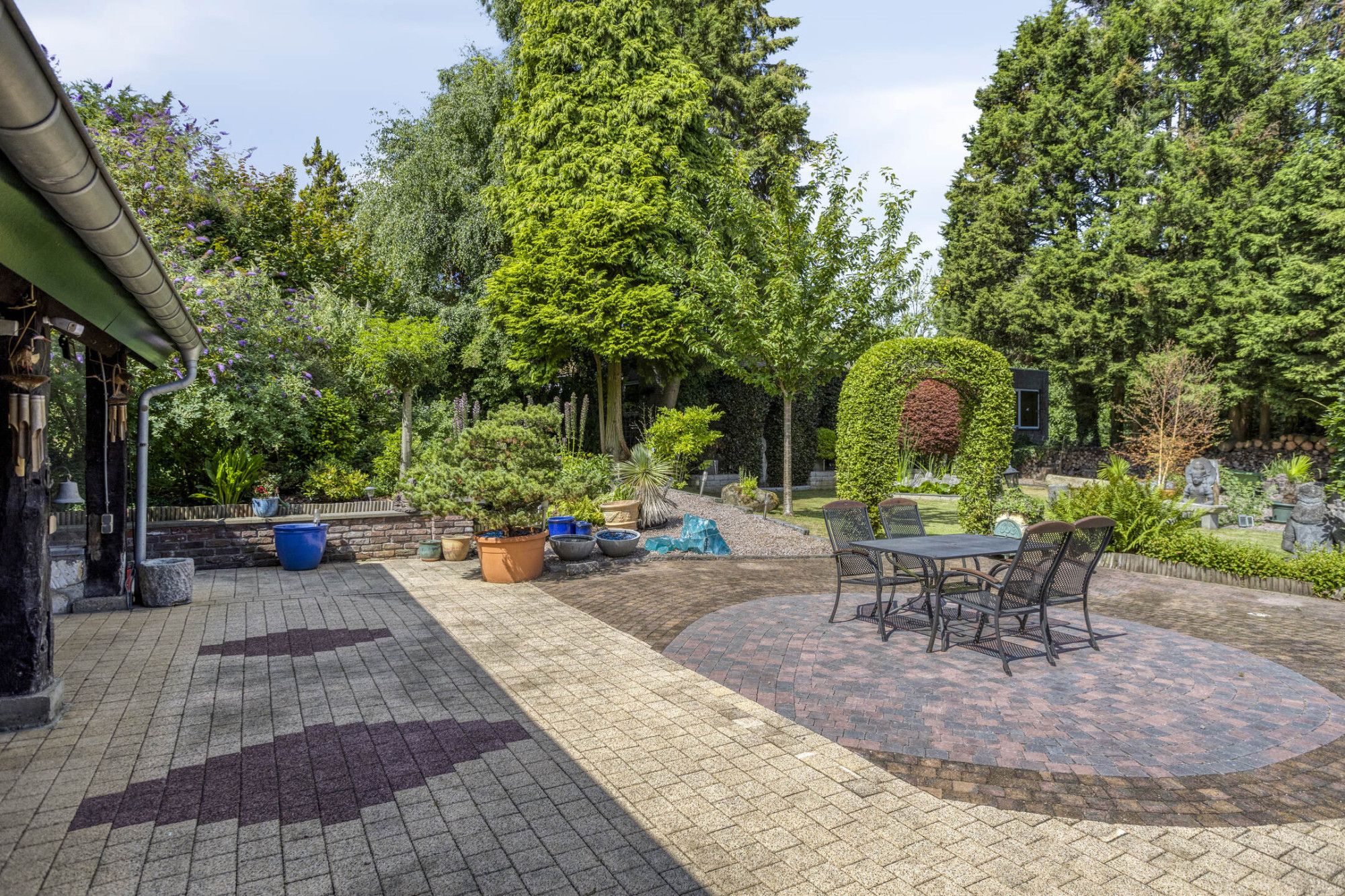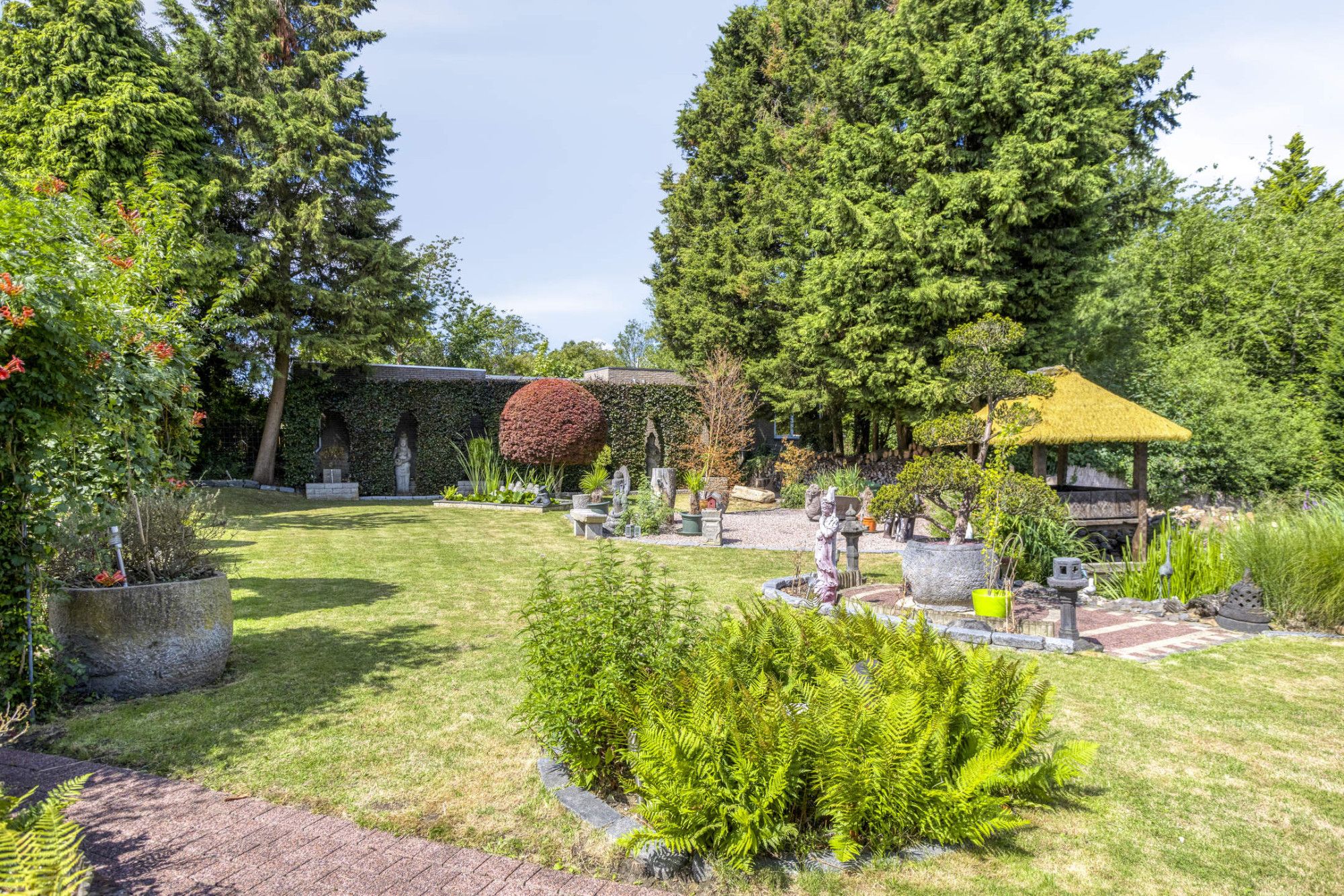 Achter deze woning gaat een zeer fraai in verschillende niveaus aangelegde tuin schuil, met riant tuinhuis (onder andere met sauna en meerpersoonsdouche), overdekt terras met buitenkeuken, zwembad en Koivijver. Het geheel is gelegen op een perceel van 2.680m².