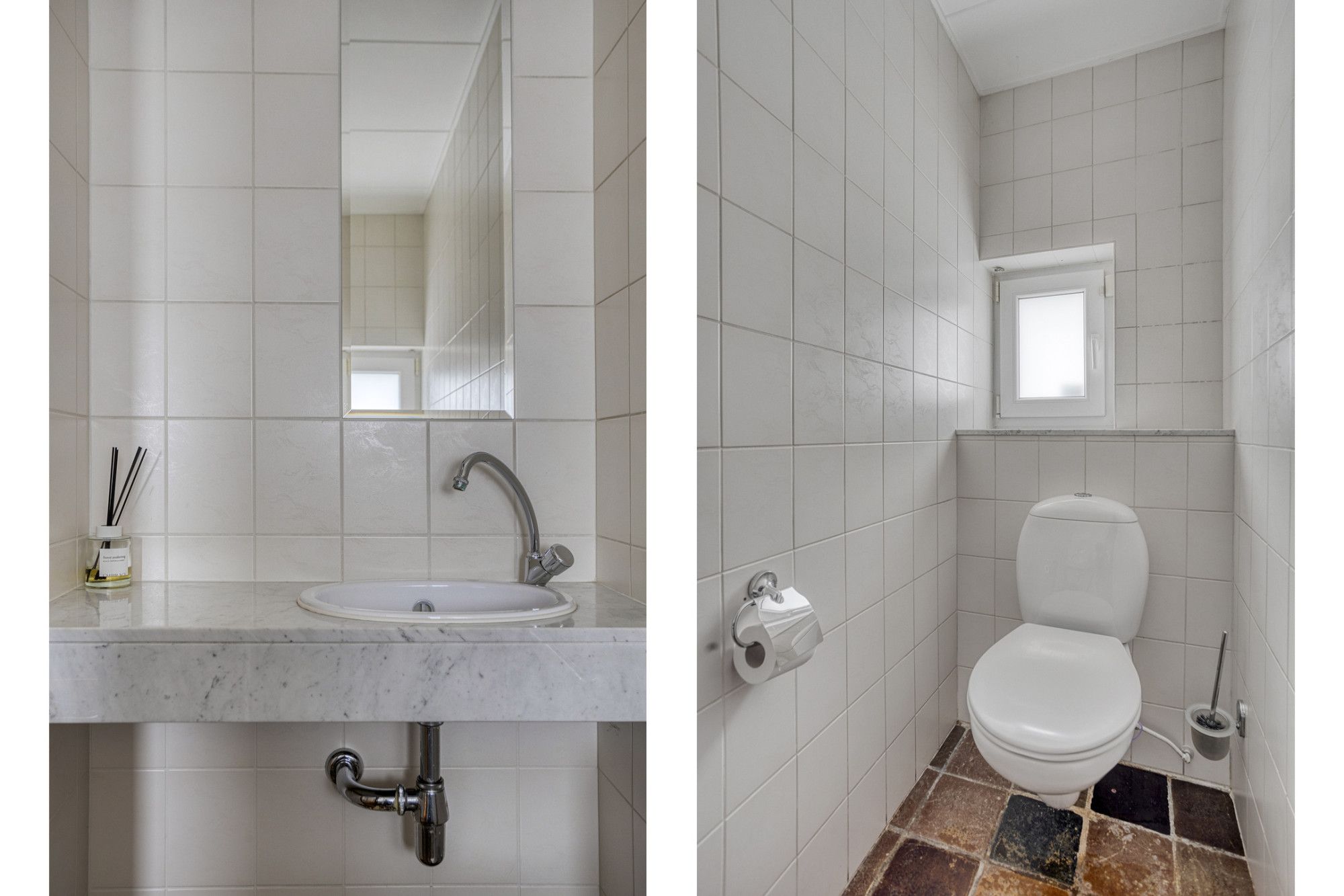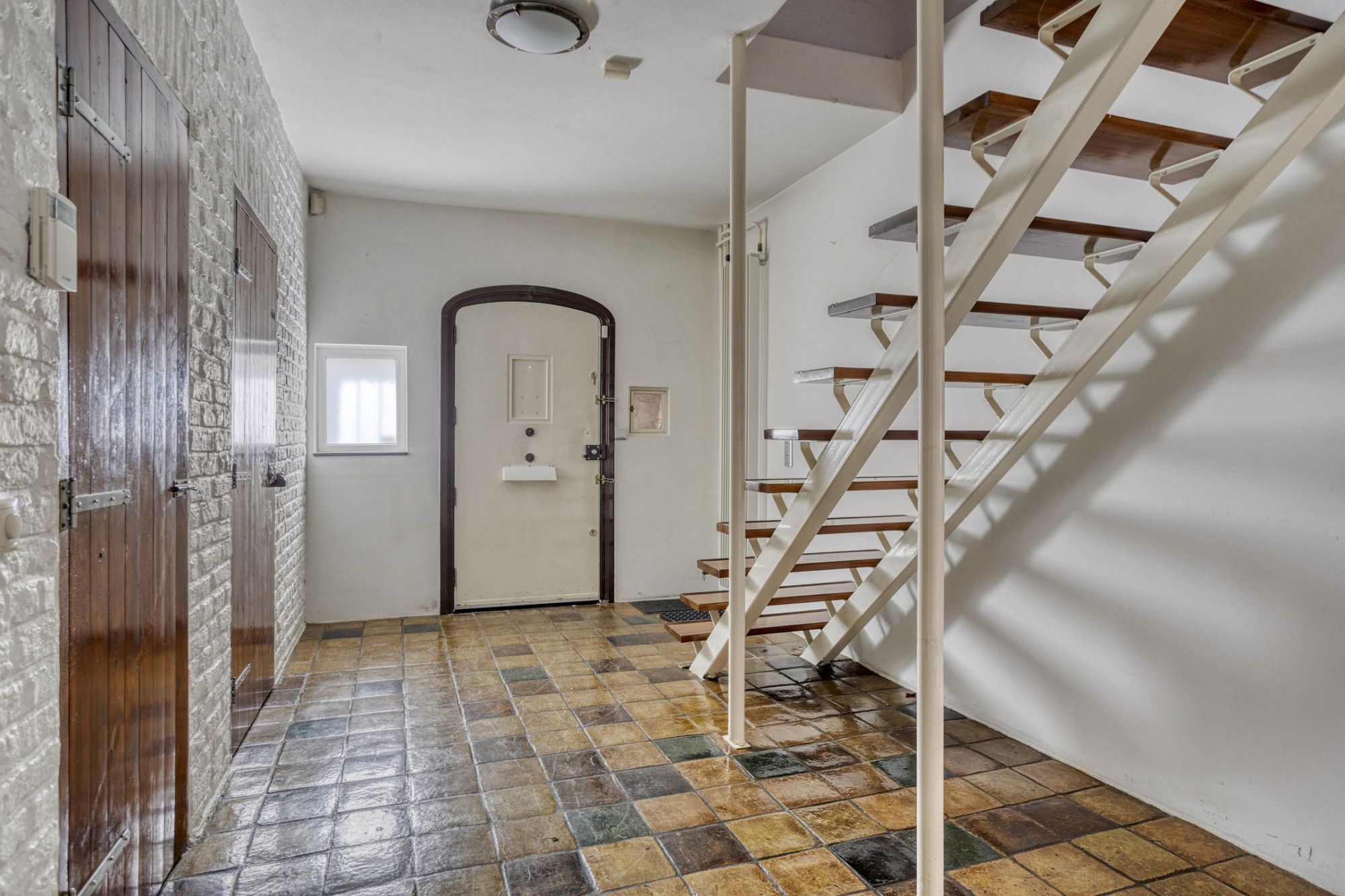 Royale entreehal met toiletruimte (wandcloset, wastafel), meterkast en trapopgang.