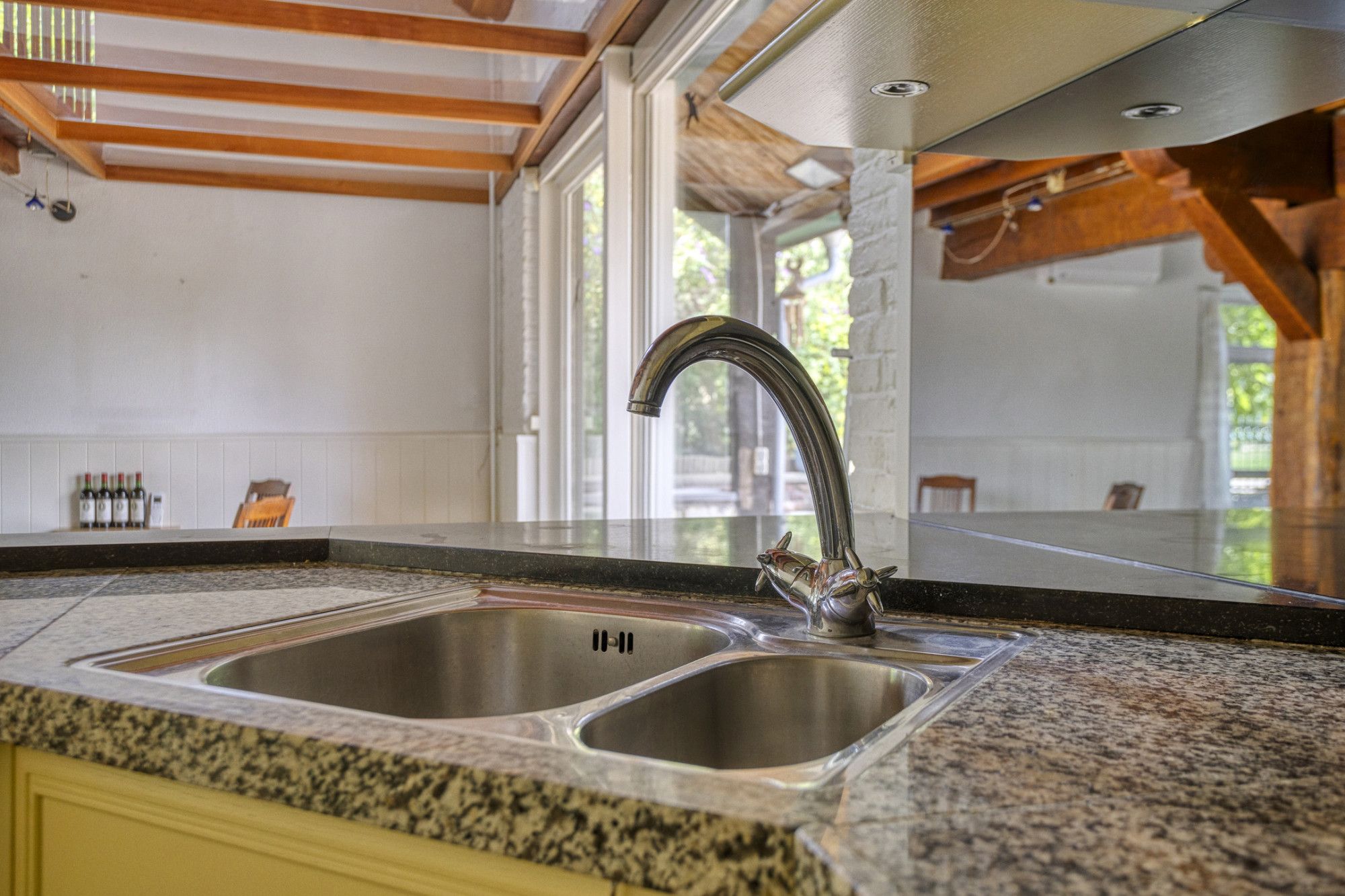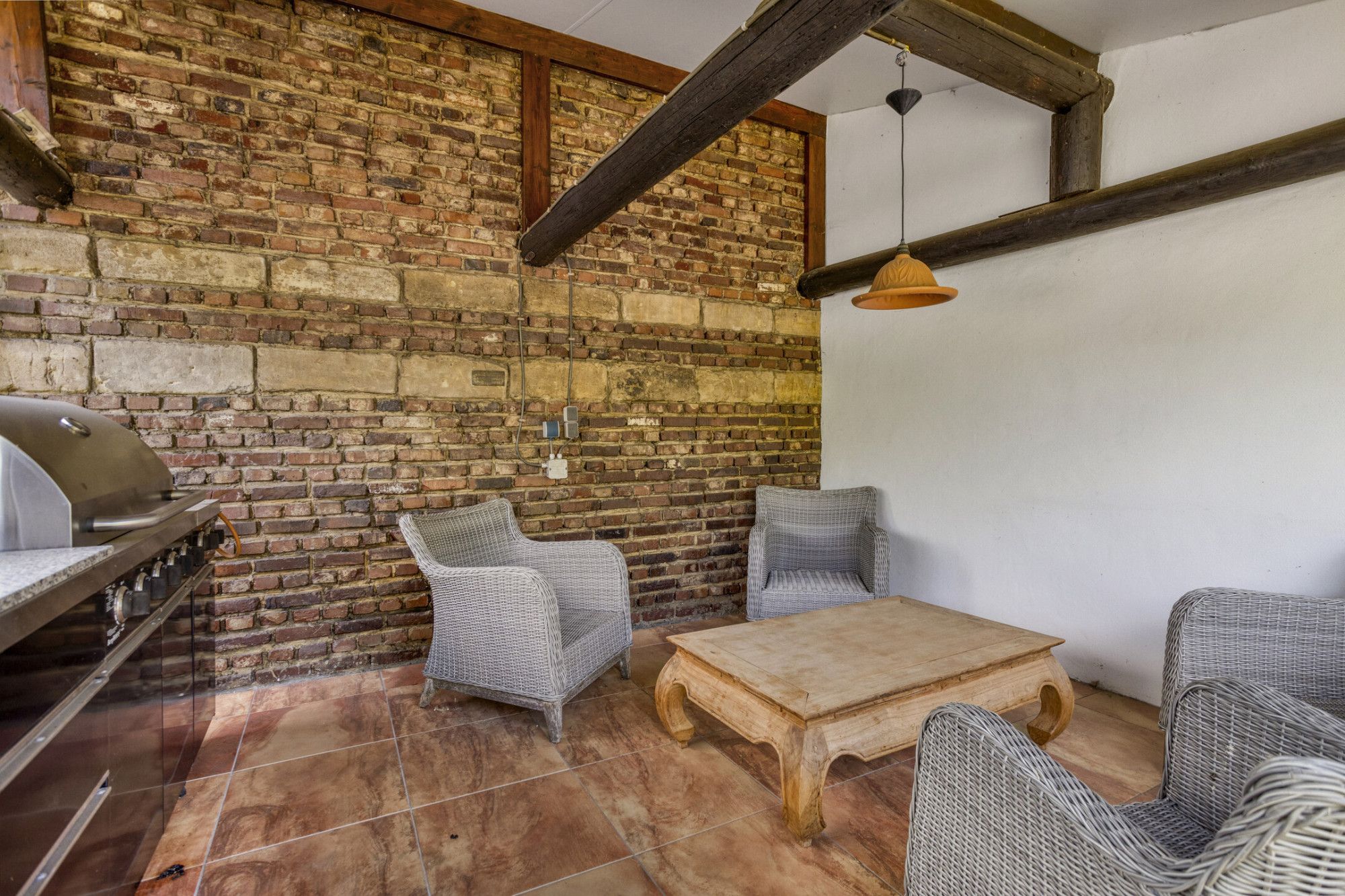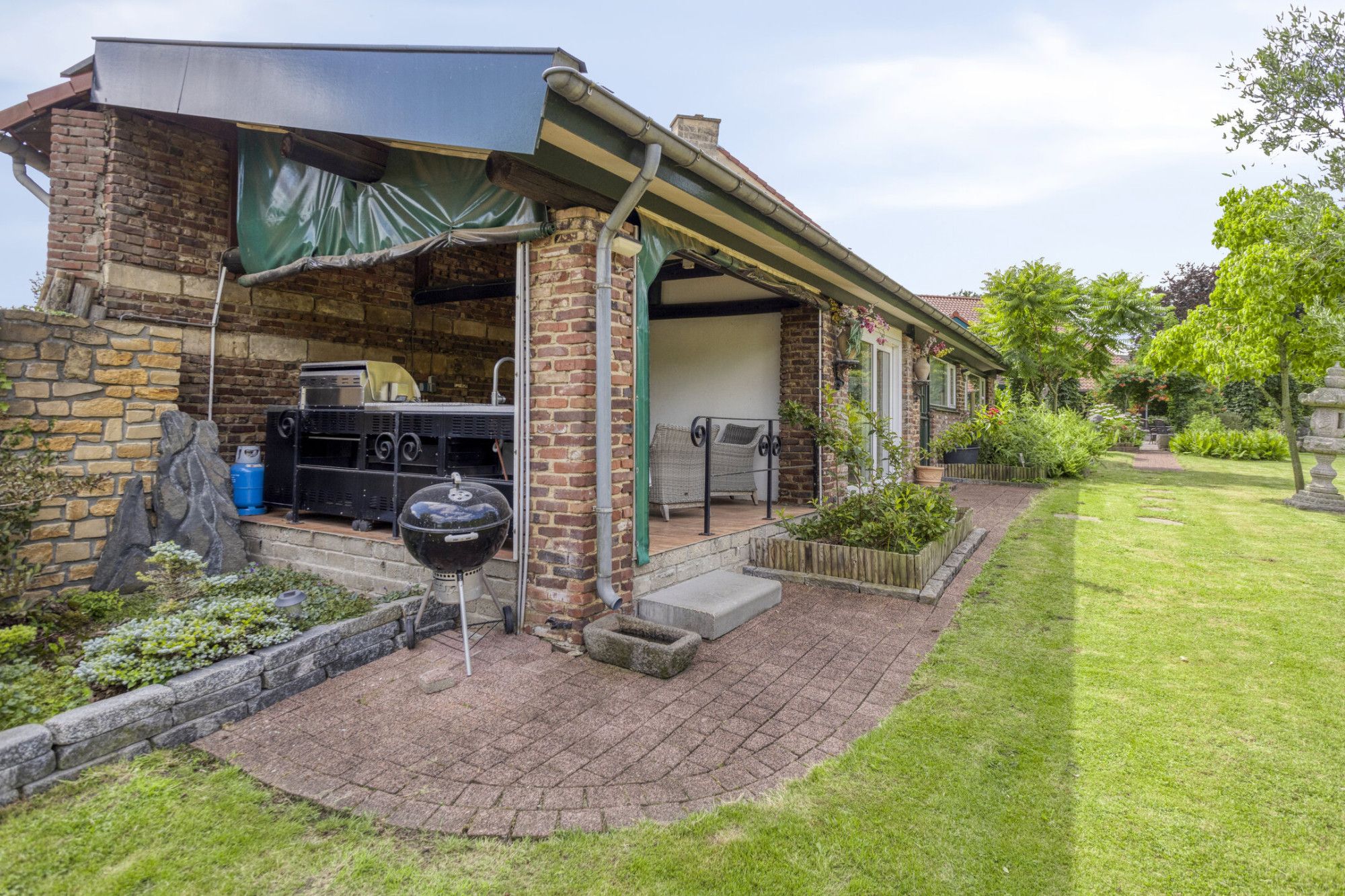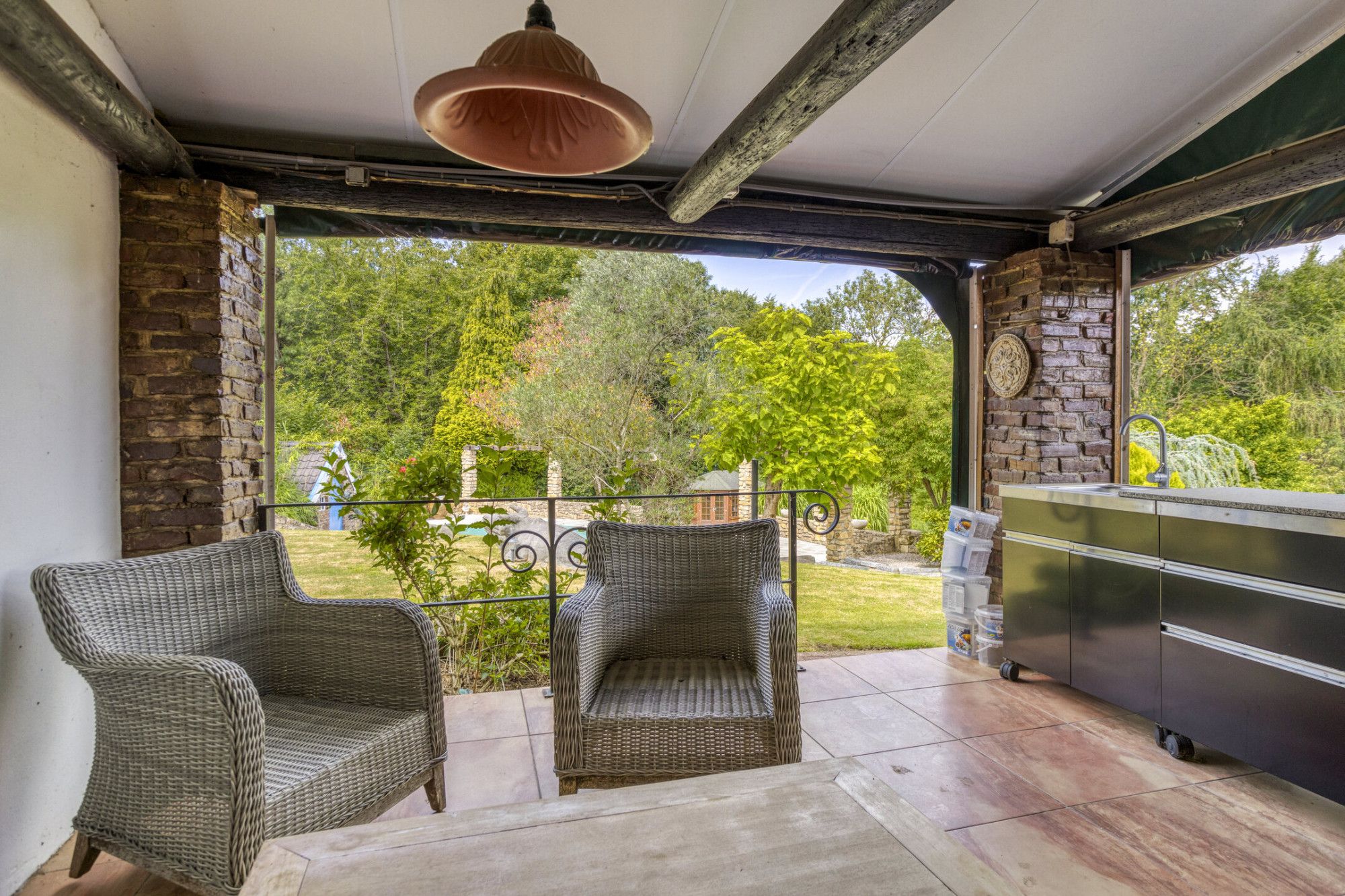 Aan de achterkant een royaal overdekt terras met nieuwe, complete luxe buitenkeuken.