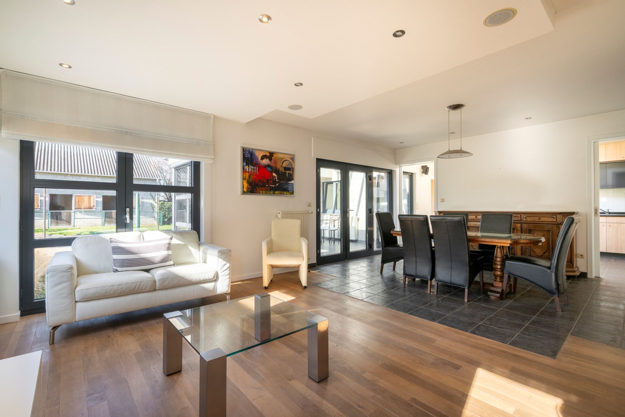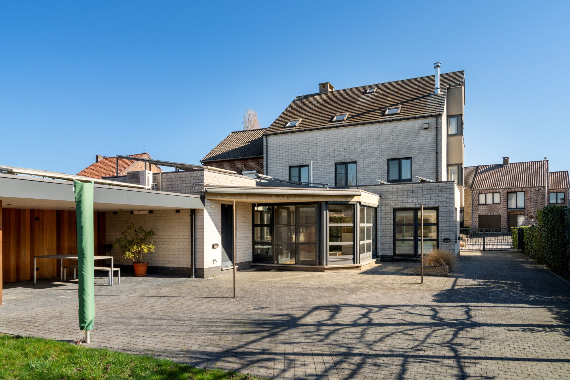 In the rural area of Hoelbeek, you will find this multifunctional property with an EPC rating of B, set on a plot of 3,721 m². It consists of a licensed two-family home with separate house numbers, individual entrances, and private garages. These units can also easily be combined into one spacious residence. The property offers a total living area of approximately 432 m² and includes a professionally equipped outbuilding, ideal for horse enthusiasts or versatile use. The location is ????? and residential, with easy access to Genk, Hasselt, Tongeren, and Maastricht.