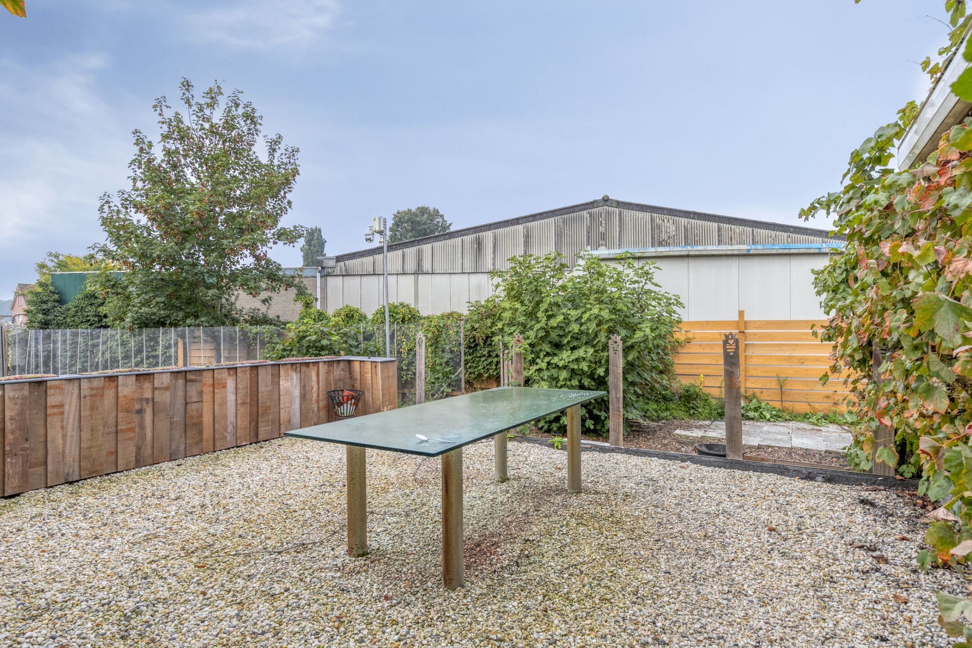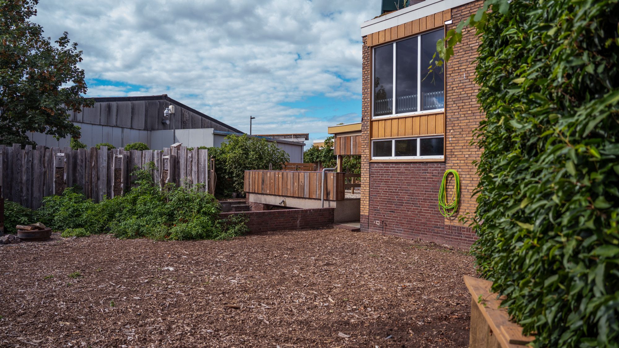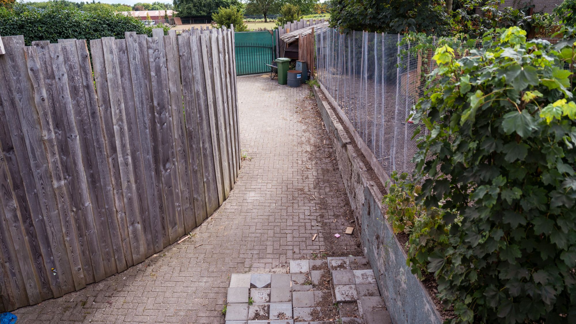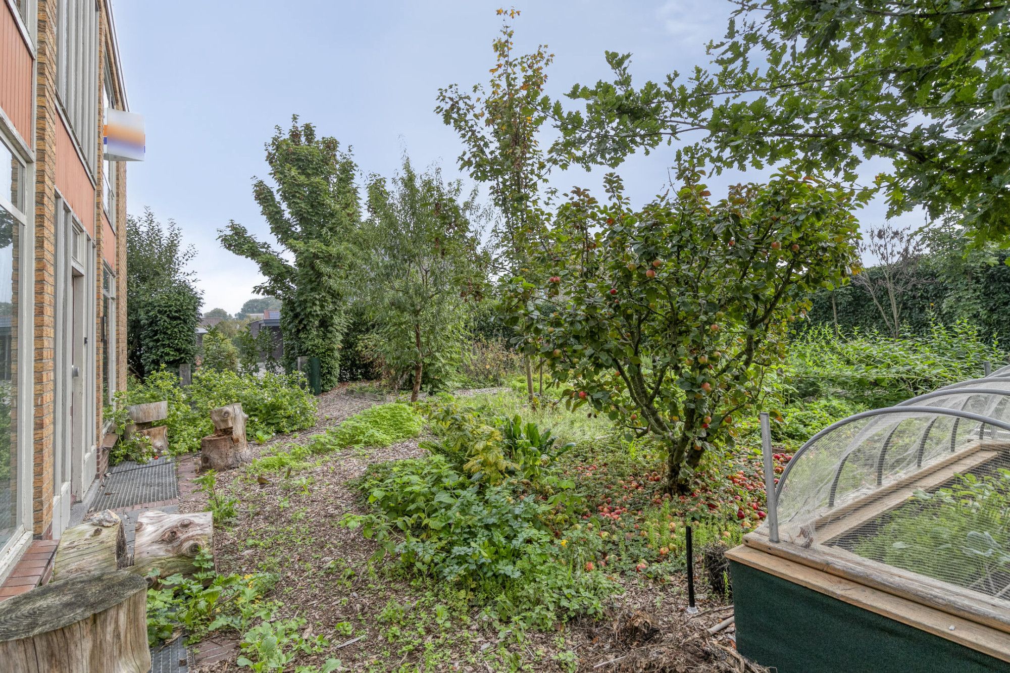 De tuin is ruim opgezet en biedt volop privacy. Er is veel groen aanwezig en diverse plekken om te zitten en te genieten van de buitenruimte. Aan de zuidzijde staat een houten schutting met insectenhotels en er is een kippenren, een buitendouche en een groot terras. Vanuit de achtertuin wandel je direct natuurgebied de Hooge Heide in, met ’t Sohr en de Maasduinen op korte afstand. Het naastgelegen garagebedrijf is verhuisd; de gebouwen worden verwijderd en de grond gesaneerd.