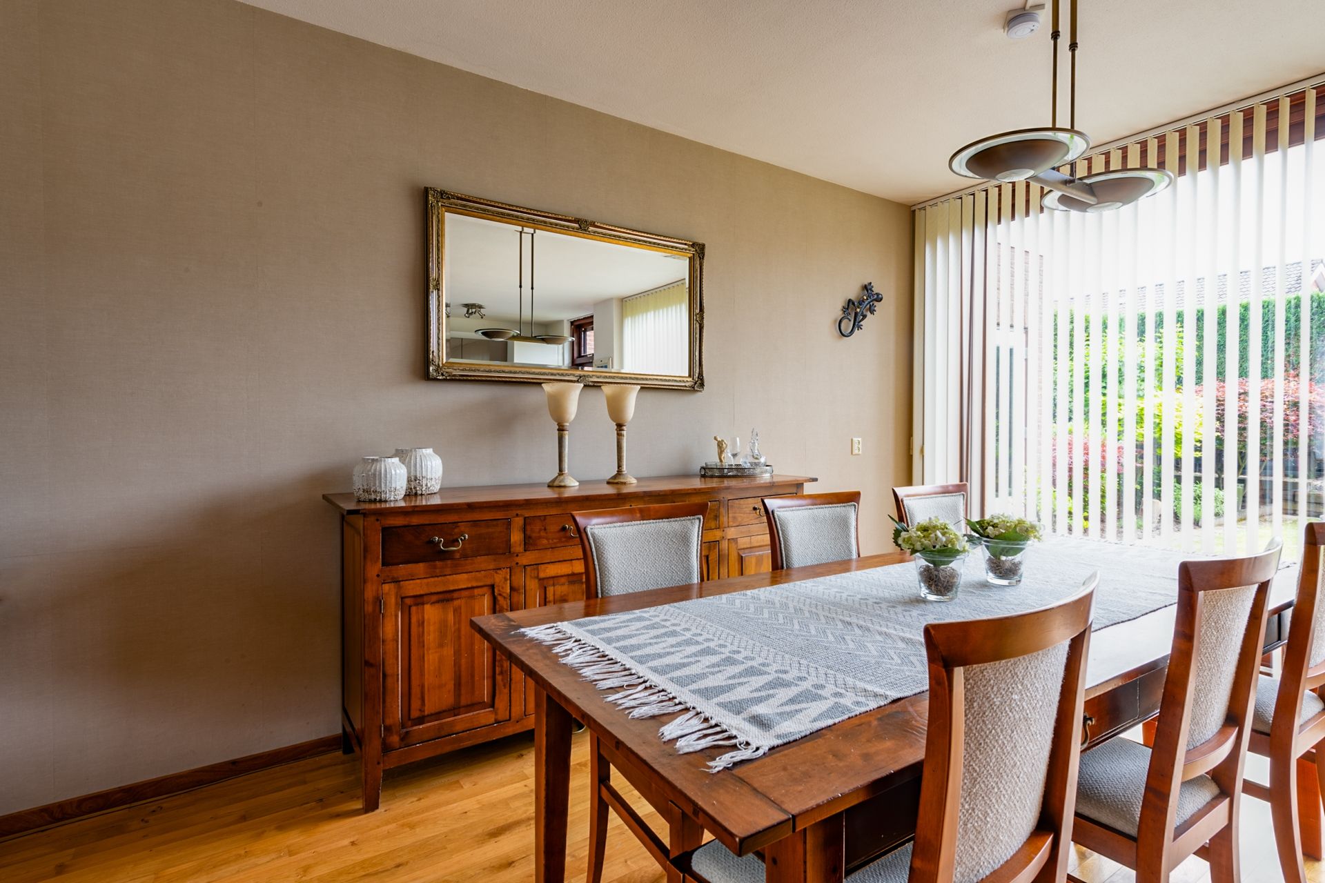Op het aangelegde terras is het in de zomermaanden heerlijk vertoeven. Een grote tafel en/of tuinbank vinden hier gemakkelijk een plaats. En met de zonwering houden we het wat langer uit in de schaduw. Via de loopdeur in de keuken, maar ook door de schuifpui in de woonkamer lopen we in en uit.
