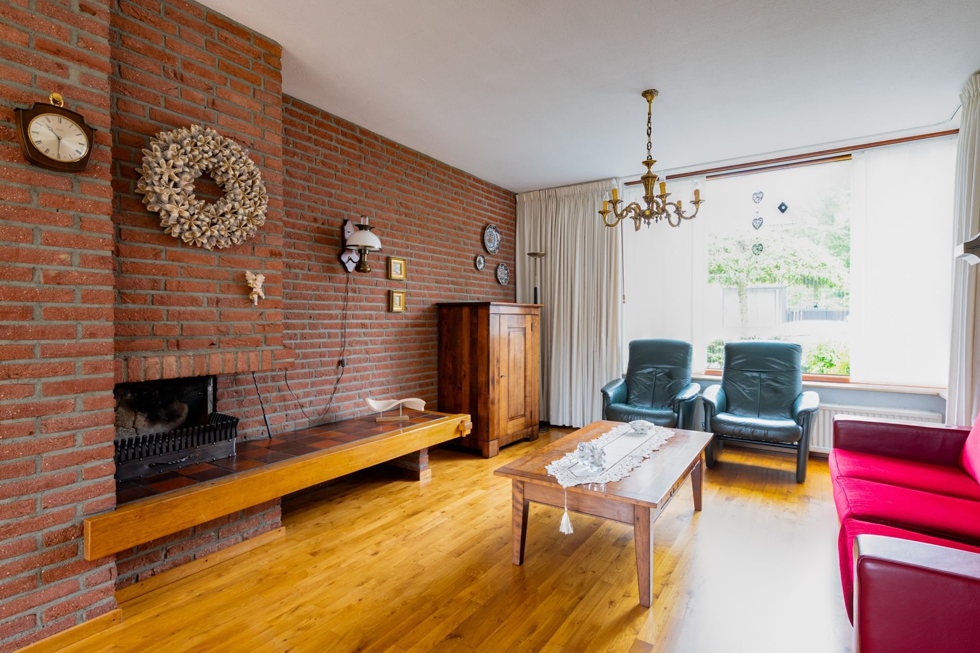De woning is voorzien van een ruime woonkamer voor zithoek met gezellige open haard en eetgelegenheid, een half open keuken, 3 slaapkamers, of 2 slaapkamers en 1 werkkamer, een nette badkamer met aparte douche en ligbad en een ruime zolder met grote zolderkamer en 2 bergruimtes.