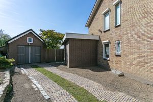Brede achtertuin voorzien van een beklinkerd terras met overkapping, gazon, borders met aanplanting en veel privacy. Een zeer ruime vrijstaande stenen garage met vliering en achtergelegen berging biedt veel opslagruimte. De oprit met zijingang naar de achtertuin, biedt parkeergelegenheid aan meerdere voertuigen op eigen terrein.