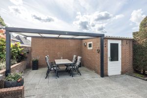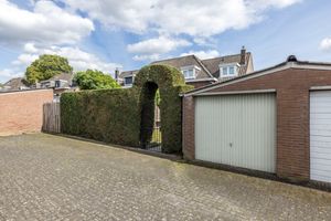 De fraai aangelegde voor-, zij- en achtertuin biedt veel privacy en is perfect voor zomerse barbecues of ontspanning onder het overdekte terras. De vrijstaande stenen berging met handmatig bedienbare kantelpoort en toegang via een achterpad maakt het geheel compleet.