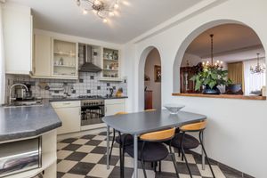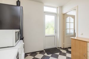 De halfopen keuken is voorzien van een eigentijdse inbouwkeuken met apparatuur. Daarnaast is er ruimte voor een extra eethoek, ideaal voor informele maaltijden of een snel ontbijt. Aansluitend vindt u de praktische bijkeuken met witgoedaansluitingen en extra opbergruimte. De bijkeuken biedt tevens toegang tot de keurig onderhouden achtertuin.