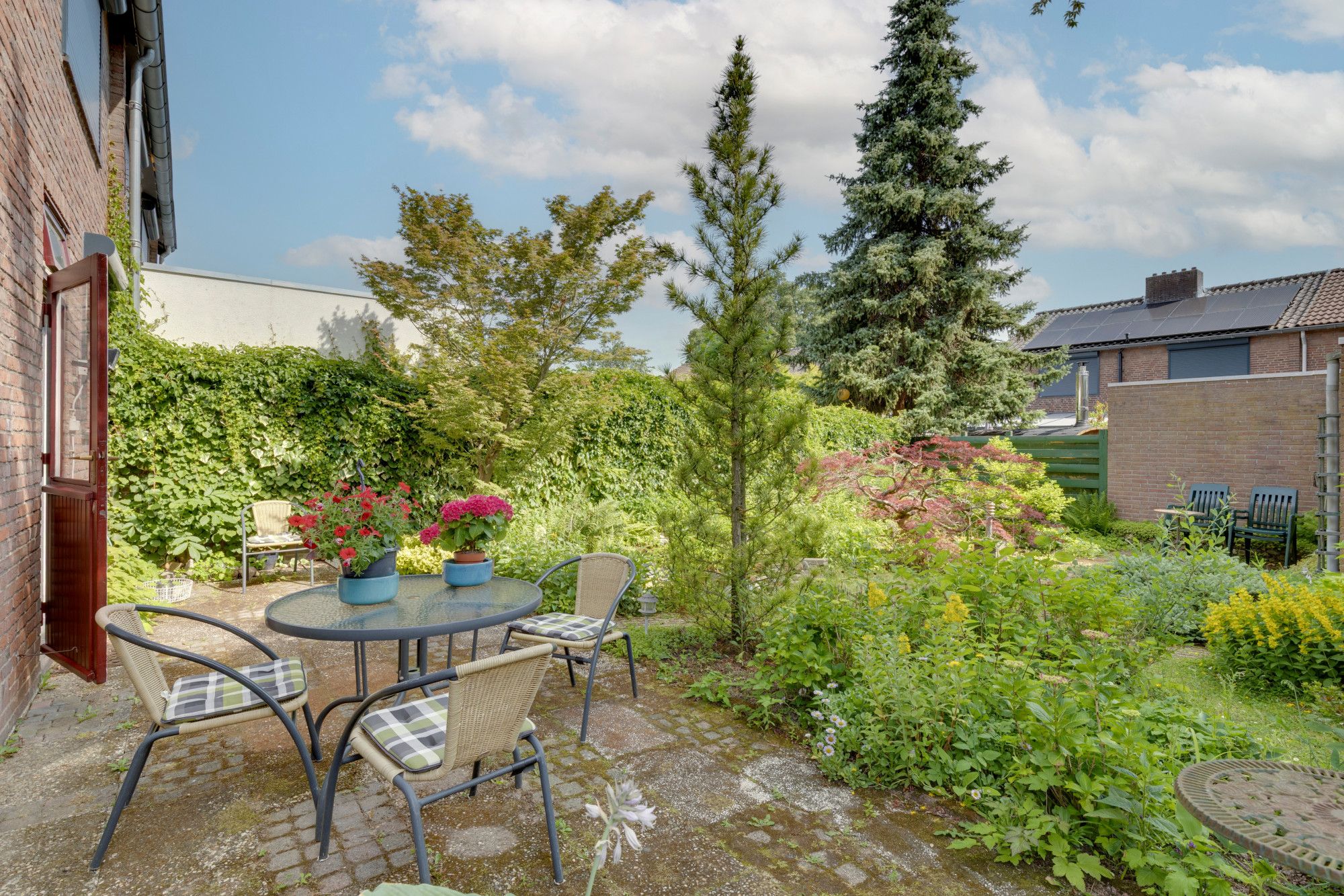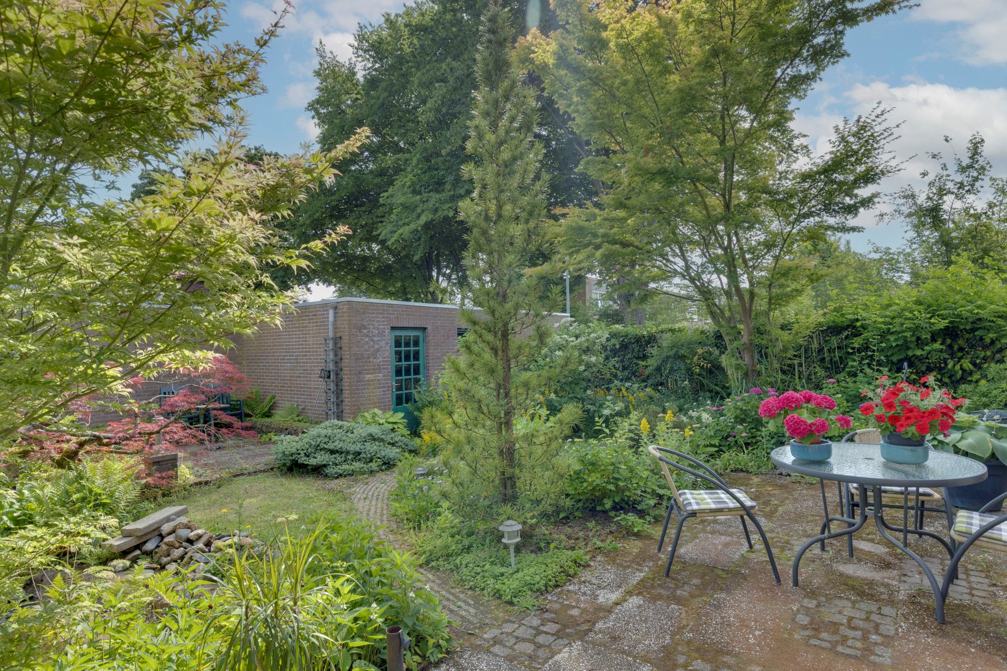 Royaal terras aan de achterzijde en kleiner terras aan de zijkant van het perceel. Flinke tuin en achtergelegen royale vrijstaand stenen garage met stalen kantelpoort en elektra. (De dakbedekking van de garage is recent vernieuwd)