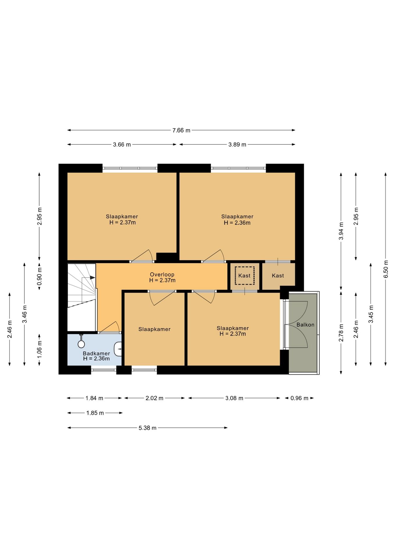 De zolderverdieping is thans uitsluitend te bereiken middels een losse trap.