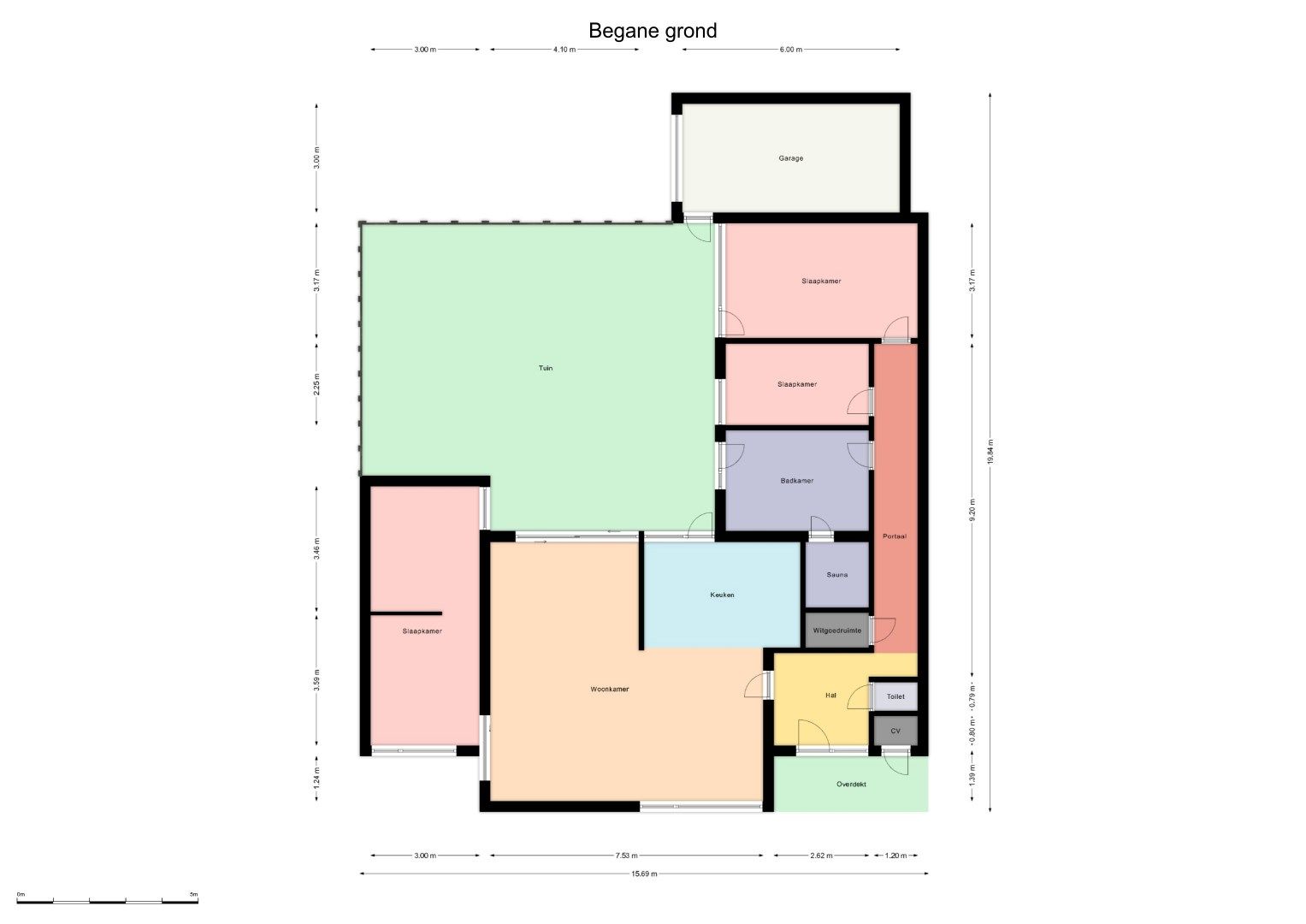 De woning beschikt over een extern te bereiken achtergelegen garage. Deze garage (6.00m x 3.03m) is voorzien van een tegelvloer, heeft een tuindeur en beschikt over een rolpoort.