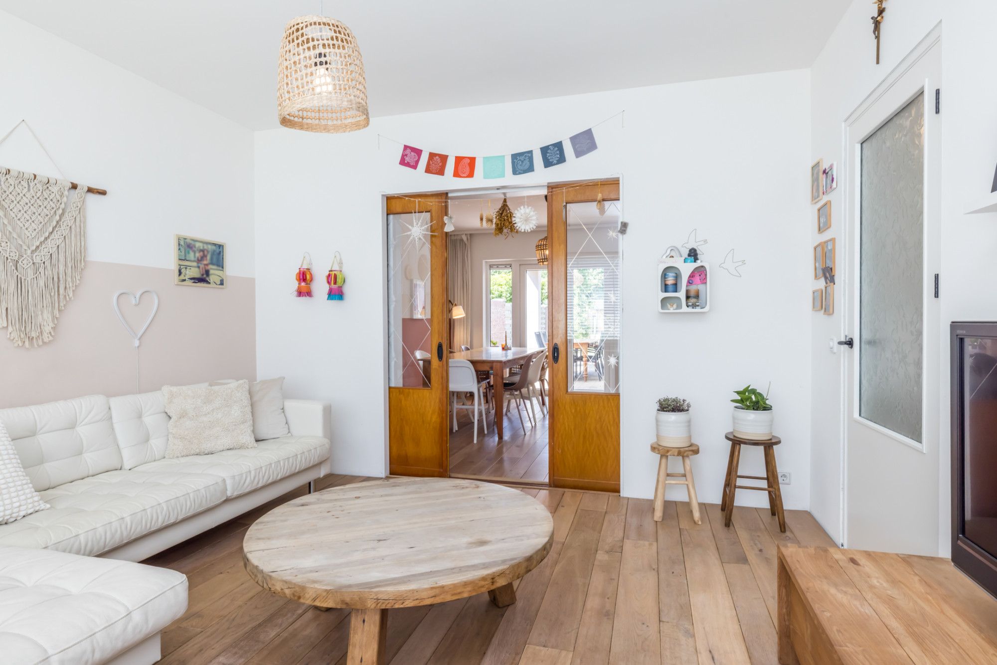 Bij binnenkomst valt direct de karakteristieke sfeer op, dankzij de originele elementen zoals de en-suite schuifdeuren, hoge plafonds en de warme eikenhouten planken vloer op de begane grond.