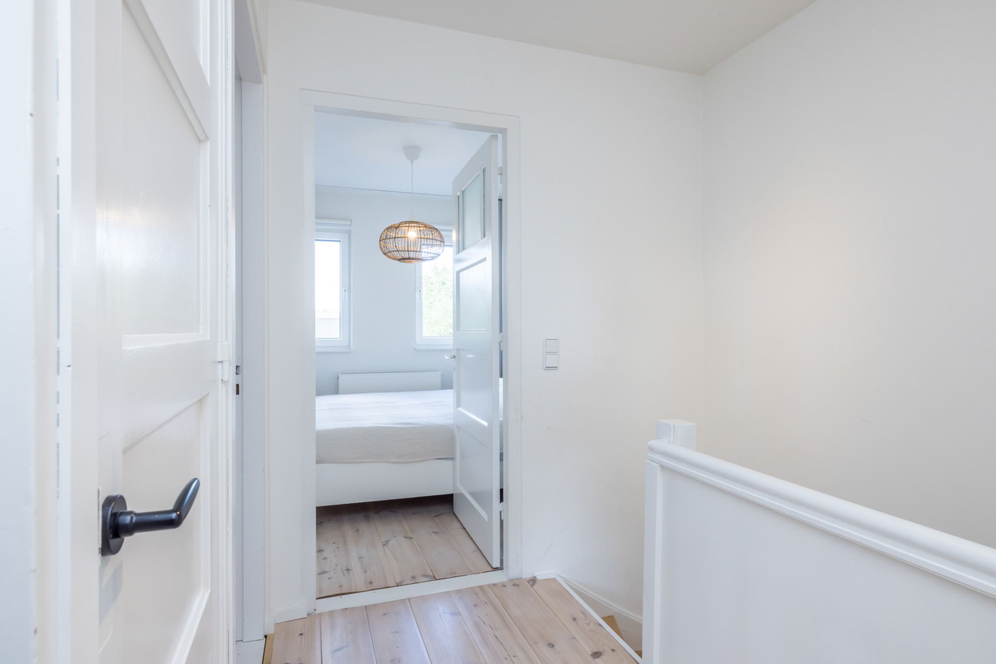Trappenhuis, overloop met toegang tot de slaapkamers en badkamer.