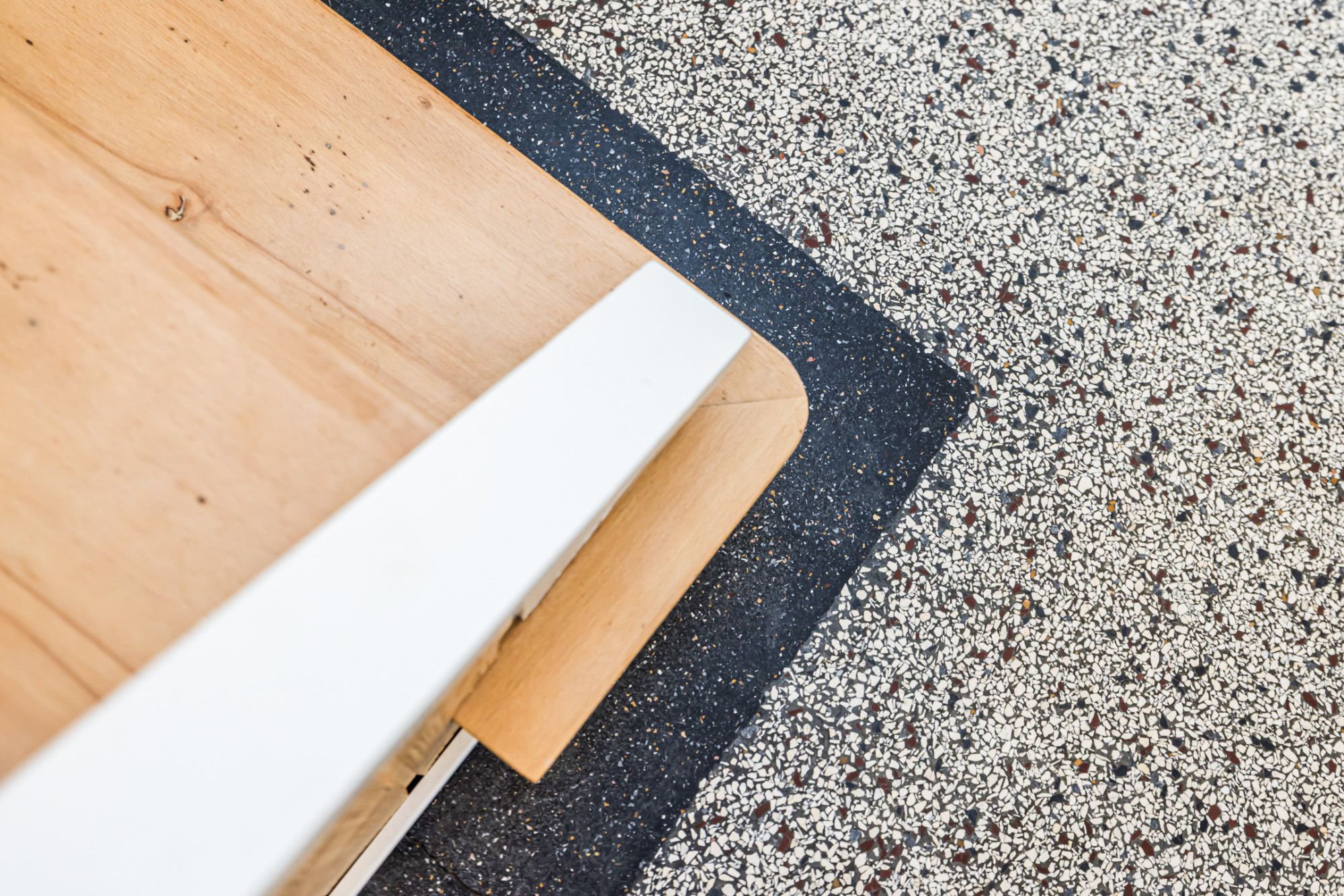 Begane grondvloer is afgewerkt met een houten planken vloer.