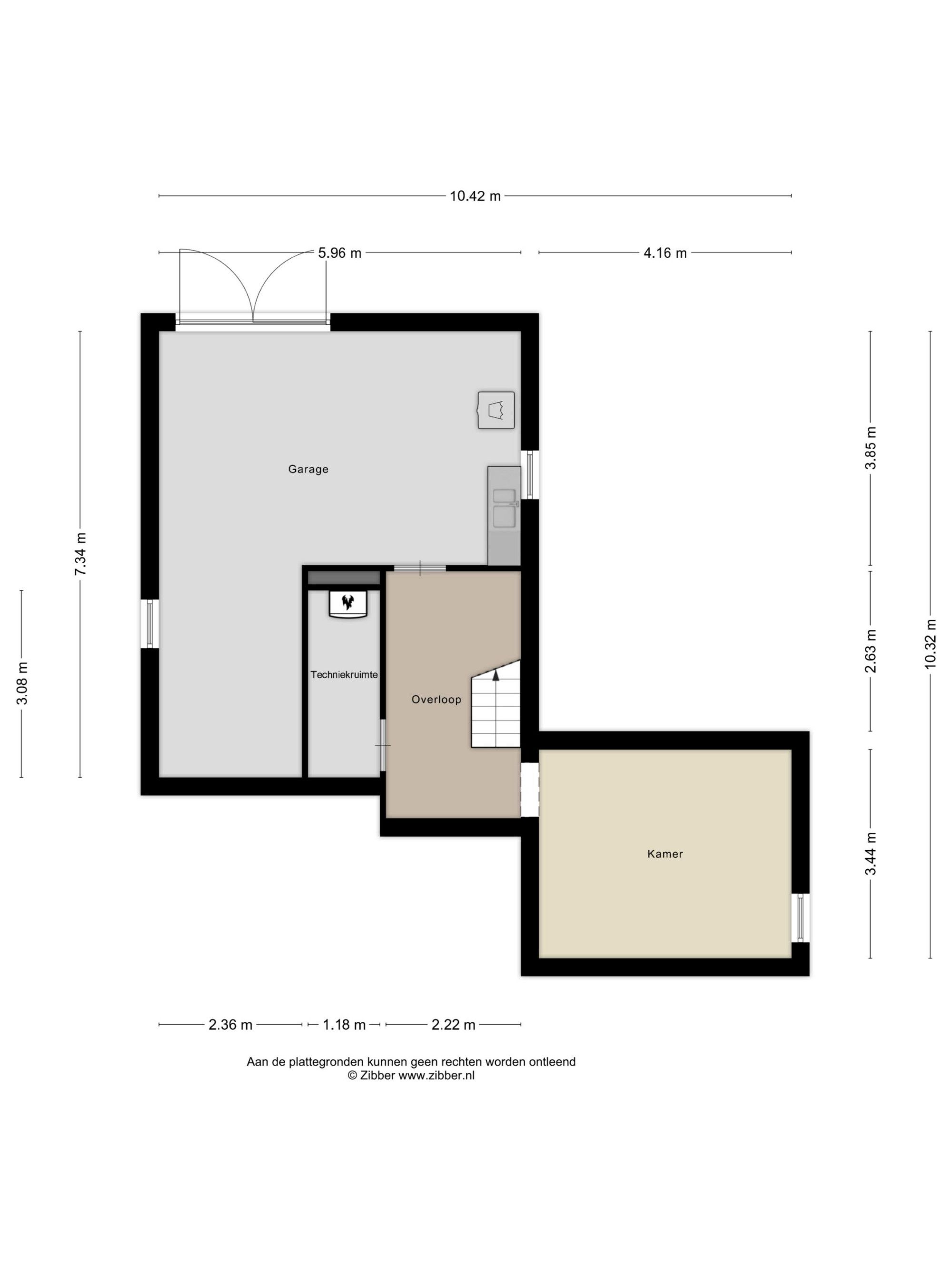 Ruime inpandige garage (7.34 x 5.96/2.36 m) met oud keuken blok en witgoed aansluiting
