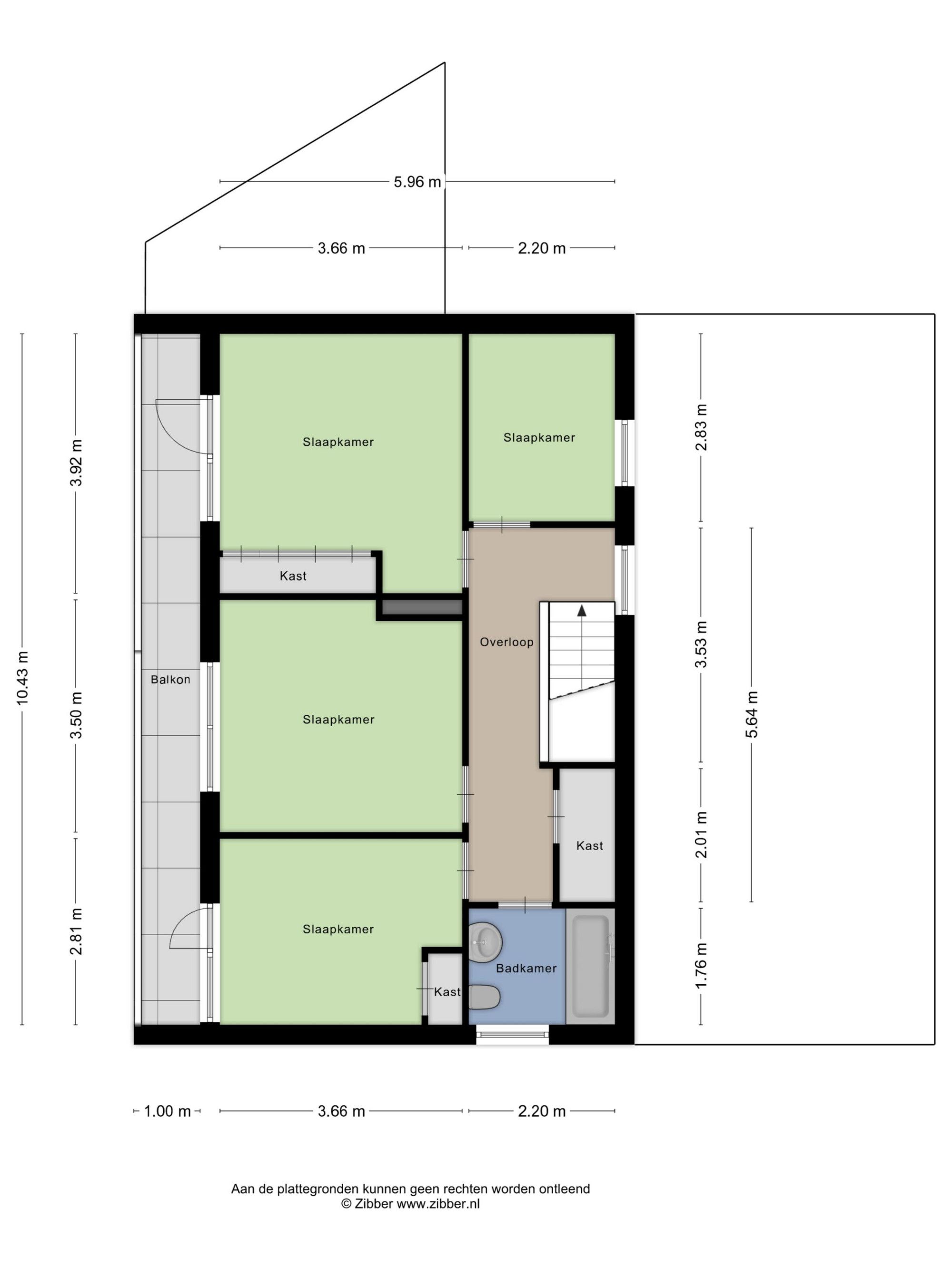 Slaapkamer 3 ( 3.66 x 2.81 m) met toegang tot het balkon (10.43 x 1.00 m).